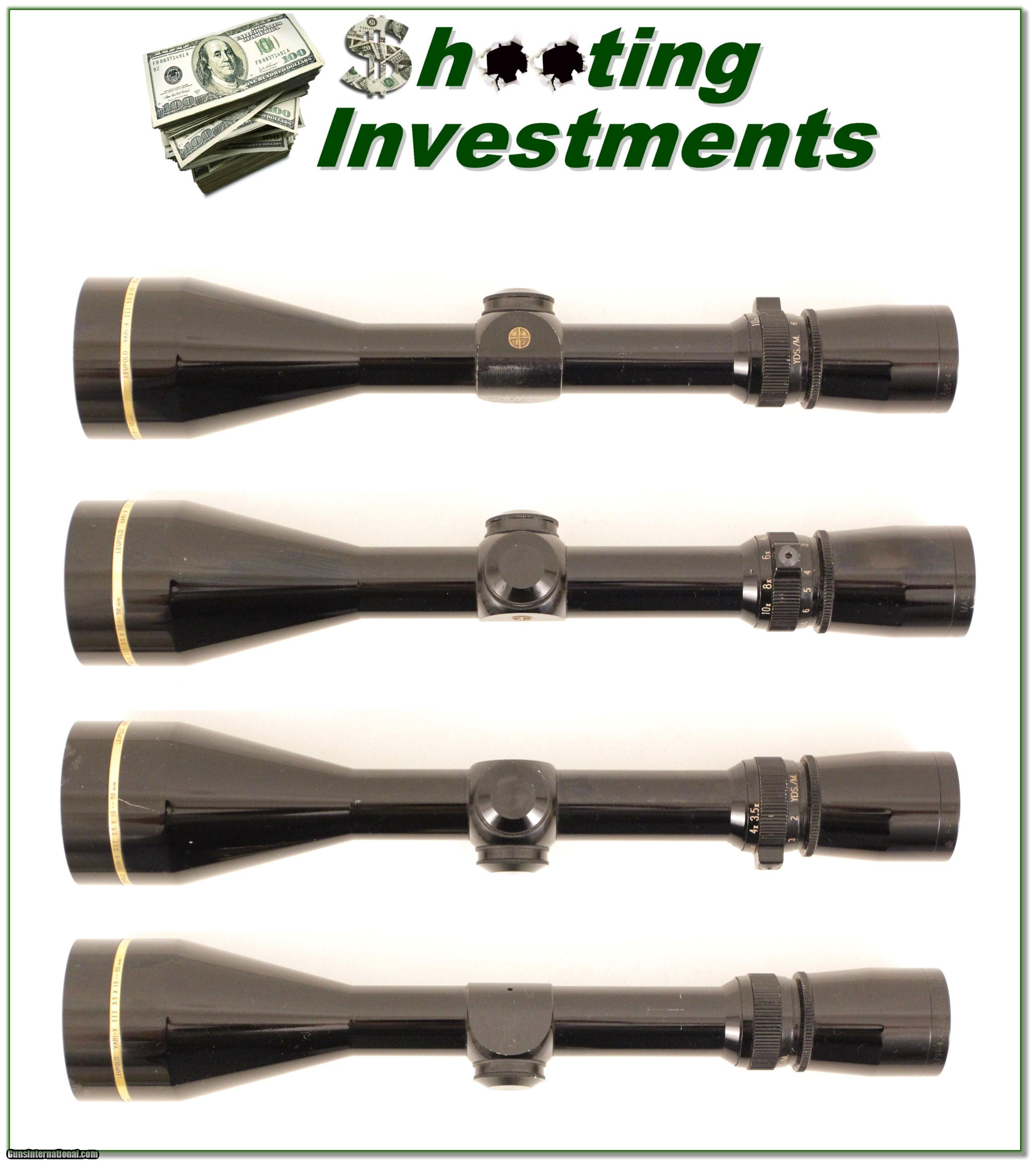 Description: This is a high-end Vari-X III 3.5-10X in the very hard to find GLOSS finish. The optics are crystal clear with duplex crosshairs. This is the larger 50mm scope and is perfect for early morning or later after noon low-light hunting. There are some minor ring marks that should be covered when mounted and a small touched up mark lower right side that I don’t think will be seen when mounted. Shipping $9.95 and please email me with any questions or larger pictures. (I now consign quality firearms only 10%! Let me know if you have any you would like to sell!) [16-1090s] Payment: Payment is by Money Order, Cashiers Check or Personal Check. I can now also accept MasterCard and Visa with a 3% convenience fee. PayPal can be used for some items but never firearms. Please let us know if you would like to pay via PayPal. Shipping: The shipping charge will be listed in each description. It is $35 for most guns. Some heavy guns or those insured for over $2000 will be higher. Shipments to Alaska and Hawaii are higher because air shipment is required. Most firearms are shipped within 5 days of receipt of payment. We prefer shipping at the beginning of the week to avoid firearms in transit over weekends. We package all shipments carefully and insure them for the full purchase price, rounded up to the next $100. In the unlikely event that damage occurs, it is important that you save all packaging material for the claims process. Optics are shipped Priority Mail and most other non-firearm shipments are shipped First Class. Returns: Our return policy is simple. If for any reason you are not pleased with your purchase, you may return your item for a refund. The only exception is ammunition, it cannot be returned. It is important to us that you are happy. Guns cannot be fired or dissembled before returning them and must be returned in the same condition as received. Notification of a return must occur with-in 3 days of receipt at your dealer. Shipping, convenience and dealer fees are not refundable and are the responsibility of the buyer. Lay-a-way: If needed, we offer a 60 day lay-a-way option on most firearms. It is 1/3 now, 1/3 in 30 days and 1/3 in 60 days. Lay-a-way firearm sales are final. Consigning your firearms with Shooting Investments: We will help you get top dollar for your firearms. While most local guns shops charge 20% or more, our fee is only 10% with a minimum of $50. At your local gun shop it might take months to sell. Selling on-line provides instant access to thousands of interested buyers. You won’t find any other on-line dealer willing to sell your firearms for only 10% or listing every gun on 4 separate s. Selling through an House typically costs the seller 15% and the buyer an addition 15% (so 30%) and you have to wait several months to sell and longer to receive funds. If properly priced, we will sell your firearms in a week or two. Send us an email or give us a call and we’ll explain how easy it is for you to get top dollar. Trading: We collect guns and usually just trade for guns we want to add to our collections. We often sell guns for others wanting to purchase one of ours. We find this the most fair to both of us. Our Commission is only 10% and we hold the gun you want until yours sells. Please contact us if you want to sell one of yours to buy one of ours. Help for California Buyers: We are happy to ship to California. It is the buyer’s responsibility to make sure any item you buy is legal in your state. We are also happy to help with your purchase of a firearm from someone other than us. If you see a gun you would like to buy but the seller can’t or won’t ship to California we can help. You buy the gun and have it shipped to us. We’ll then ship it to your California dealer. The cost for this service is only $30 + shipping. Let me know if we can help! SOLD |