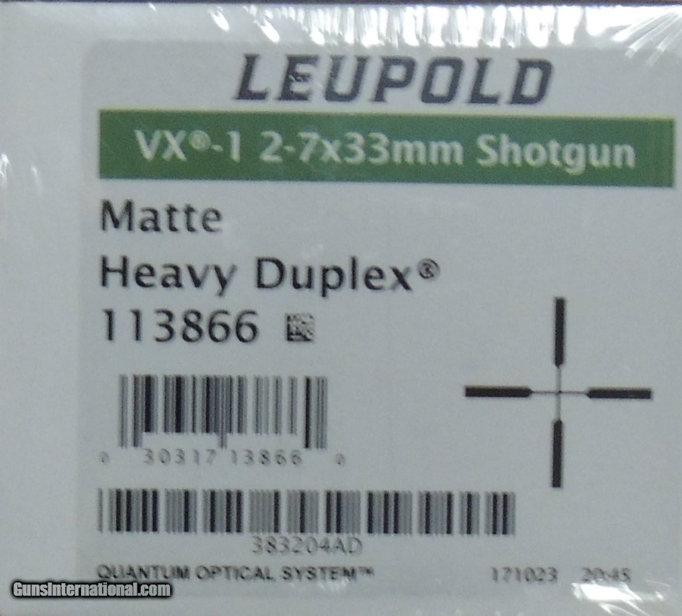 Leupold VX-1 Shotgun/Muzzleloader 2-7x33mm Heavy Duplex Reticle Scope NIB #113866