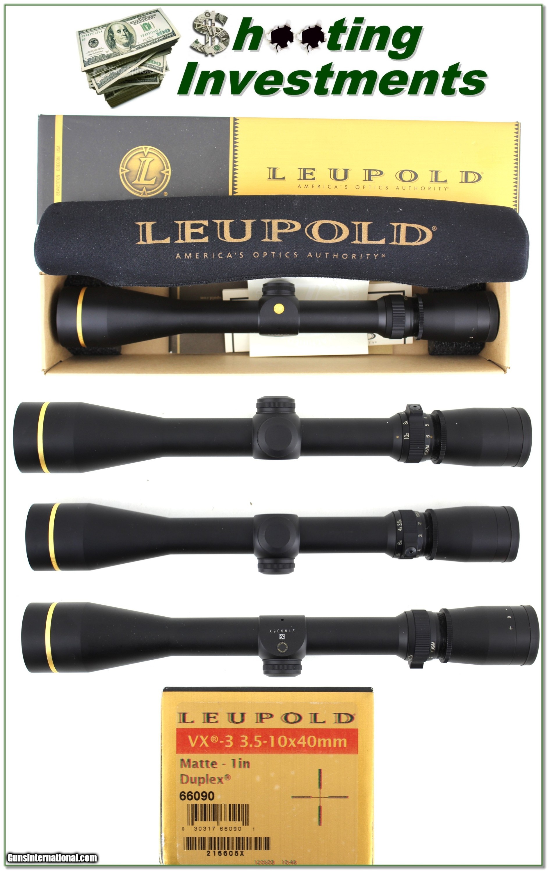 Description: This is a new condition Leupold VX-3 3.5-10 power Matt rifle scope. It comes as seen in box with all papers. There are no marks or signs of use. These sold for $499 and have the famous Leupold Lifetime warrantee! No need to spend $100 more! Shipping is $14.95 and please email me with any questions or larger pictures. (Consign your quality firearms with Shooting Investments for only 12%! Let me know if you have any you would like to sell!) 19-s015 Payment: Payment is by Money Order, Cashiers Check or Personal Check. I can now also accept Credit Cards (MasterCard, Visa, Discover & American Express) with a 3% convenience fee. PayPal can be used for some items but never for firearms. Shipping: The shipping charge will be listed in each description. It is $39 for most firearms. Some heavy guns or those insured for over $2000 will be higher. Shipments to Alaska and Hawaii are higher because air shipment is required. Most firearms are shipped on Tuesday and Thursday and usually in 5 days of receipt of payment. We package all shipments carefully and insure them. Optics are shipped Priority Mail and most other non-firearm shipments are shipped First Class. Returns: Our return policy is simple. If for any reason you are not pleased with your purchase, you may return your item for a full refund of purchase price. Ammunition cannot be returned. It is important to us that you are happy. Guns cannot be fired or dissembled before returning them and they must be returned in the same condition as received. Notification of a return must occur with-in 3 days of receipt at your dealer. Shipping, convenience and dealer fees are not refundable and are the responsibility of the buyer. Lay-a-way: If needed, we offer a 60 day lay-a-way option on most firearms. It is 1/3 now, 1/3 in 30 days and 1/3 in 60 days. Lay-a-way firearm sales are final and if not completed the first payment cannot be returned. Consigning your firearms with Shooting Investments: We will help you get top dollar for your firearms. While most local guns shops charge 20% or more, our fee is only 12% with a minimum of $75. At your local gun shop it might take months to sell. Selling on-line provides instant access to thousands of interested buyers. You won’t find any other on-line dealer willing to sell your firearms for only 12% or listing every gun on 3 separate s. Selling through an House typically costs the seller 15% and the buyer an addition 15% (so 30%) and you have to wait several months to sell and longer to receive funds. If properly priced, we will sell your firearms in a few weeks. Send us an email or give us a call and we’ll explain how easy it is for you to get top dollar. Trading: Trading for use is really just buying your gun to re-sell. If you have a gun you want to trade, please email a picture and we will let you know what we can give or it. You will always get more if we sell it for you on consignment. Help for California Buyers: We are happy to ship to California. It is the buyer’s responsibility to make sure any item you buy is legal in your state. We are also happy to help with your purchase of a firearm from someone other than us. If you see a gun you would like to buy but the seller can’t or won’t ship to California they can ship to use and we’ll then ship it to your California dealer. The cost for this service is only $30 + shipping. Let us know if we can help! SOLD |