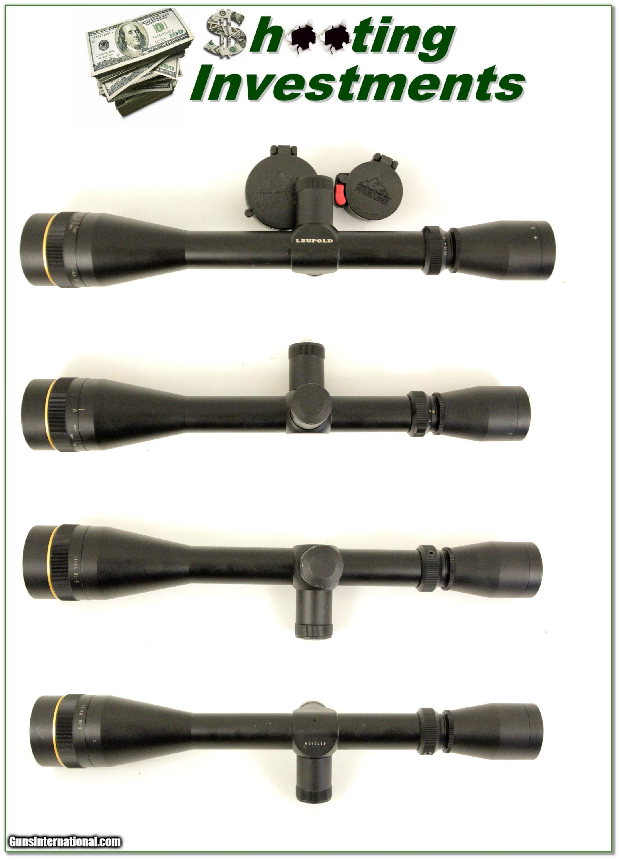 Description: This Leupold VX-II scope is in excellent as new condition. It’s the harder to find 6-18 power with Adjustable Objective and Matt finish. The optics are crystal clear with duplex crosshair and it comes with covers as seen. I see no marks. Shipping is $19.95 and please email me with any questions or larger pictures. (Consign your quality firearms with Shooting Investments for only 12%! Let me know if you have any you would like to sell!) 18-0157s Payment: Payment is by Money Order, Cashiers Check or Personal Check. I can now also accept MasterCard and Visa with a 3% convenience fee. PayPal can be used for some items but never firearms. Please let us know if you would like to pay via PayPal. Shipping: The shipping charge will be listed in each description. It is $39 for most long guns and $29 for most handguns. Some heavy guns or those insured for over $2000 will be higher. Shipments to Alaska and Hawaii are higher because air shipment is required. Most firearms are shipped on Tuesday and Thursday and usually in 5 days of receipt of payment. We package all shipments carefully and insure them. For long guns you can purchase a new Plano case for $19. They now cost us $22 when buying 100 at a time. Optics are shipped Priority Mail and most other non-firearm shipments are shipped First Class. Returns: Our return policy is simple. If for any reason you are not pleased with your purchase, you may return your item for a full refund of purchase price. Ammunition cannot be returned. It is important to us that you are happy. Guns cannot be fired or dissembled before returning them and they must be returned in the same condition as received. Notification of a return must occur with-in 3 days of receipt at your dealer. Shipping, convenience and dealer fees are not refundable and are the responsibility of the buyer. Lay-a-way: If needed, we offer a 60 day lay-a-way option on most firearms. It is 1/3 now, 1/3 in 30 days and 1/3 in 60 days. Lay-a-way firearm sales are final and if not completed the first payment cannot be returned. Consigning your firearms with Shooting Investments: We will help you get top dollar for your firearms. While most local guns shops charge 20% or more, our fee is only 12% with a minimum of $75. At your local gun shop it might take months to sell. Selling on-line provides instant access to thousands of interested buyers. You won’t find any other on-line dealer willing to sell your firearms for only 12% or listing every gun on 3 separate s. Selling through an House typically costs the seller 15% and the buyer an addition 15% (so 30%) and you have to wait several months to sell and longer to receive funds. If properly priced, we will sell your firearms in a few weeks. Send us an email or give us a call and we’ll explain how easy it is for you to get top dollar. Trading: Trading for use is really just buying your gun to re-sell. If you have a gun you want to trade, please email a picture and we will let you know what we can give or it. You will always get more if we sell it for you on consignment. Help for California Buyers: We are happy to ship to California. It is the buyer’s responsibility to make sure any item you buy is legal in your state. We are also happy to help with your purchase of a firearm from someone other than us. If you see a gun you would like to buy but the seller can’t or won’t ship to California they can ship to use and we’ll then ship it to your California dealer. The cost for this service is only $30 + shipping. Let us know if we can help! SOLD |