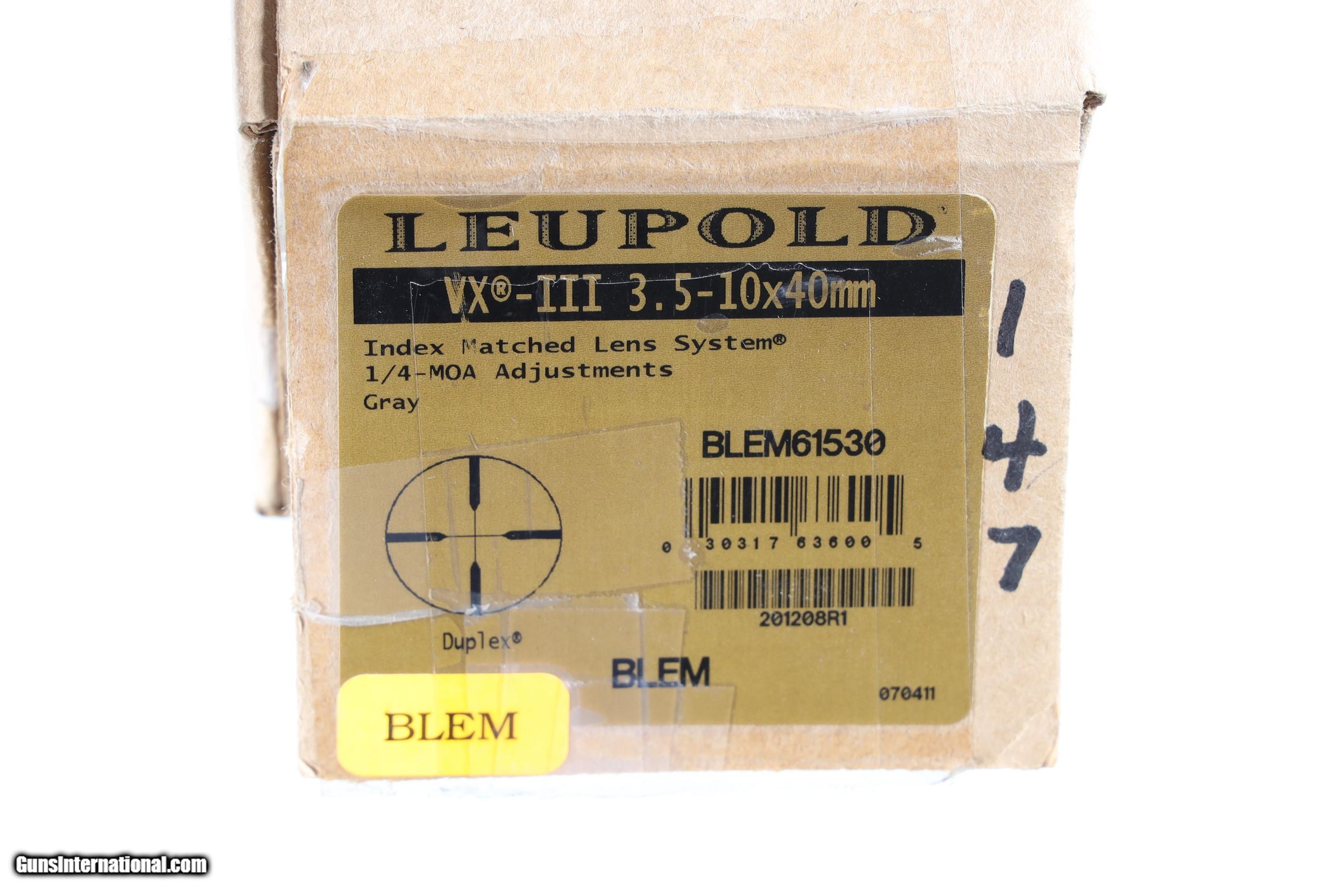 Description: Leupold VX-III 3.5-10x40 scope, duplex reticle with clear optics, with factory box. • Free Shipping, No Credit Card Fees. • Lay-a-way available for this accessory. • 1/3 Down, a 1/3 in 30 Days, 1/3 in 60 Days. SOLD |