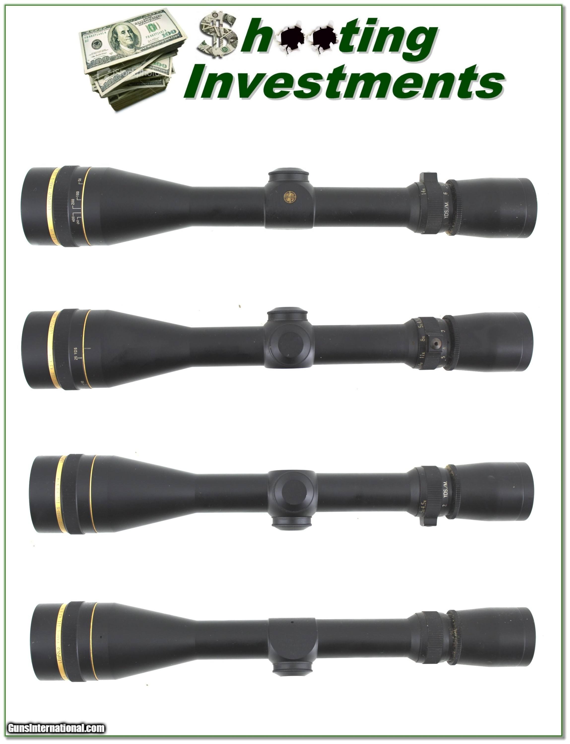 Description: This is a top of the line VX III Leupold in 4.5-14 X 40mm with AO rifle scope. It looks as good as new with crystal clear optics and duplex crosshairs. No need to buy a new one as this is just as nice. Shipping is $14.95 and please email me with any questions or larger pictures. (Consign your quality firearms with Shooting Investments for only 12%! Let me know if you have any you would like to sell!) 21-1216s Payment: Payment is by Money Order, Cashier’s Check or Personal Check. I can now also accept Credit Cards (MasterCard, Visa, Discover & American Express) with a 3% convenience fee. Shipping: The shipping charge will be listed in each description. It is $39 for most firearms. Some heavy guns or those insured for over $2000 will be higher. Shipments to Alaska and Hawaii are higher because air shipment is required. Most firearms are shipped on Tuesday and Thursday and usually in 5 days of receipt of payment. We package all shipments carefully and insure them. Optics are shipped Priority Mail and most other non-firearm shipments are shipped First Class. Returns: Our return policy is simple. If for any reason you are not pleased with your purchase, you may return your item for a full refund of purchase price. Ammunition cannot be returned. It is important to us that you are happy. Guns cannot be fired or dissembled before returning them and they must be returned in the same condition as received. Notification of a return must occur within 3 days of receipt at your dealer. Shipping, convenience and dealer fees are not refundable and are the responsibility of the buyer. Lay-a-way: If needed, we offer a 60 day lay-a-way option on most firearms. It is 1/3 now, 1/3 in 30 days and 1/3 in 60 days. Lay-a-way firearm sales are final and cannot be returned. If a lay-a-way is not completed the first payment cannot be refunded. Consigning your firearms with Shooting Investments: We will help you get top dollar for your firearms. While most local guns shops charge 20% or more, our fee is only 12% with a minimum of $75. At your local gun shop it might take months to sell. Selling on-line provides instant access to thousands of interested buyers. You won’t find any other on-line dealer willing to sell your firearms for only 12% or listing every gun on 3 separate s. Selling through an House typically costs the seller 15% and the buyer an addition 15% (so 30%) and you have to wait several months to sell and longer to receive funds. If properly priced, we will sell your firearms within a few weeks. Send us an email or give us a call and we’ll explain how easy it is for you to get top dollar. Trading: Trading for us is really just buying your gun to re-sell. If you have a gun you want to trade, please email a picture and we will let you know what we can give for it. You will always get more if we sell it for you on consignment. Help for California Buyers: We are happy to ship to California. It is the buyer’s responsibility to make sure any item you buy is legal in your state. We are also happy to help with your purchase of a firearm from someone other than us. If you see a gun you would like to buy but the seller can’t or won’t ship to California they can ship to use and we’ll then ship it to your California dealer. The cost for this service is only $30 + shipping. Let us know if we can help! SOLD |