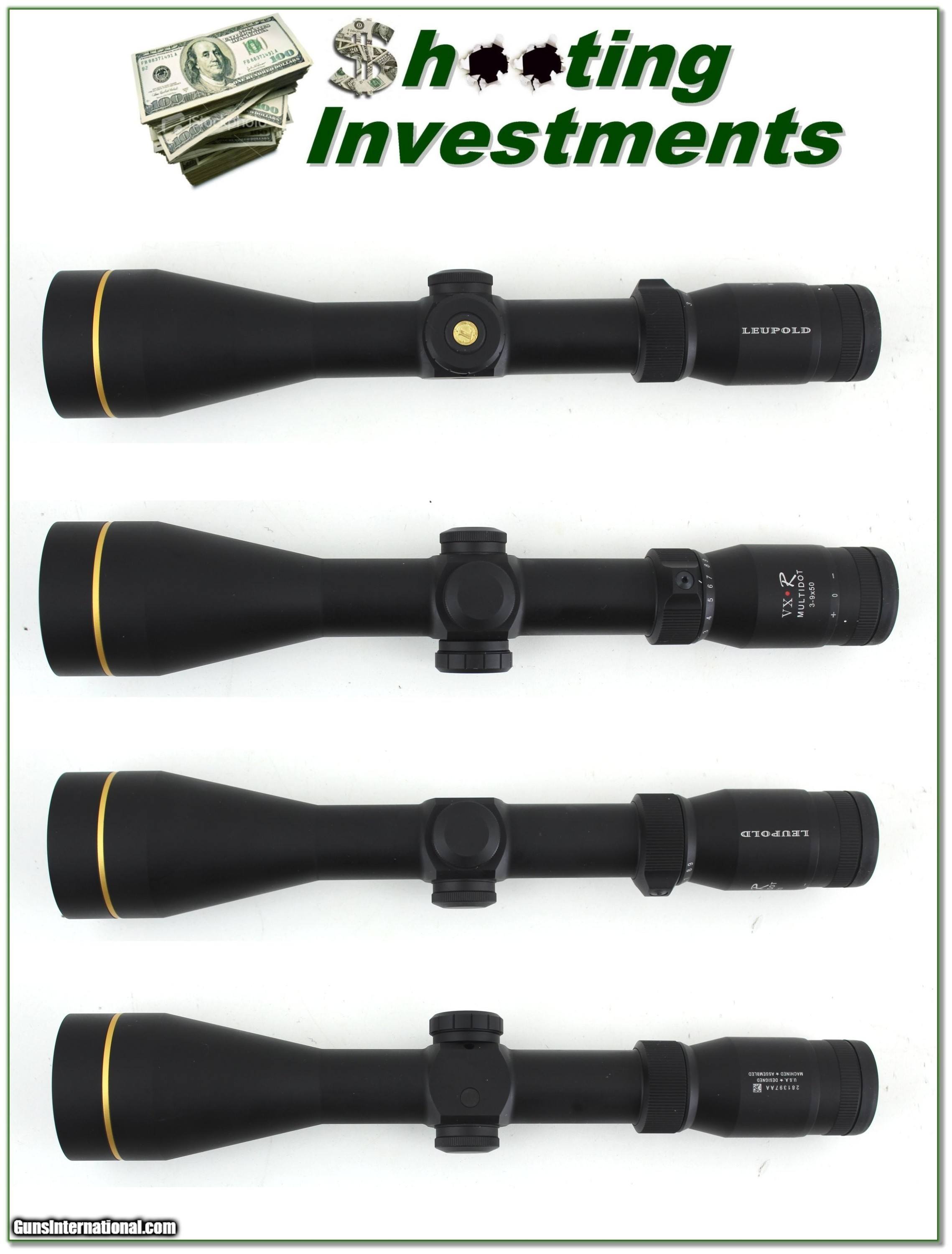 Description: This is a like new Leupold VX-R 3-9 x 50mm with 30mm tube. It has an illuminated ballistic firedot crosshair. The list price on this scope was $850! It will make a high-end scope for any tactical or hunting gun. Shipping is $14.95. Please email me with any questions or larger pictures. (Consign your quality firearms with Shooting Investments for only 12%! Let me know if you have any you would like to sell!) 21-1268s Payment: Payment is by Money Order, Cashier’s Check or Personal Check. I can now also accept Credit Cards (MasterCard, Visa, Discover & American Express) with a 3% convenience fee. Shipping: The shipping charge will be listed in each description. It is $39 for most firearms. Some heavy guns or those insured for over $2000 will be higher. Shipments to Alaska and Hawaii are higher because air shipment is required. Most firearms are shipped on Tuesday and Thursday and usually in 5 days of receipt of payment. We package all shipments carefully and insure them. Optics are shipped Priority Mail and most other non-firearm shipments are shipped First Class. Returns: Our return policy is simple. If for any reason you are not pleased with your purchase, you may return your item for a full refund of purchase price. Ammunition cannot be returned. It is important to us that you are happy. Guns cannot be fired or dissembled before returning them and they must be returned in the same condition as received. Notification of a return must occur within 3 days of receipt at your dealer. Shipping, convenience and dealer fees are not refundable and are the responsibility of the buyer. Lay-a-way: If needed, we offer a 60 day lay-a-way option on most firearms. It is 1/3 now, 1/3 in 30 days and 1/3 in 60 days. Lay-a-way firearm sales are final and cannot be returned. If a lay-a-way is not completed the first payment cannot be refunded. Consigning your firearms with Shooting Investments: We will help you get top dollar for your firearms. While most local guns shops charge 20% or more, our fee is only 12% with a minimum of $75. At your local gun shop it might take months to sell. Selling on-line provides instant access to thousands of interested buyers. You won’t find any other on-line dealer willing to sell your firearms for only 12% or listing every gun on 3 separate s. Selling through an House typically costs the seller 15% and the buyer an addition 15% (so 30%) and you have to wait several months to sell and longer to receive funds. If properly priced, we will sell your firearms within a few weeks. Send us an email or give us a call and we’ll explain how easy it is for you to get top dollar. Trading: Trading for us is really just buying your gun to re-sell. If you have a gun you want to trade, please email a picture and we will let you know what we can give for it. You will always get more if we sell it for you on consignment. Help for California Buyers: We are happy to ship to California. It is the buyer’s responsibility to make sure any item you buy is legal in your state. We are also happy to help with your purchase of a firearm from someone other than us. If you see a gun you would like to buy but the seller can’t or won’t ship to California they can ship to use and we’ll then ship it to your California dealer. The cost for this service is only $30 + shipping. Let us know if we can help! SOLD |