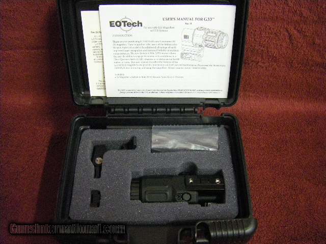 Description: New EO-Tech G33 Magnifier Black. Works with all EO-Tech Sights. Check your State’s Gun Laws Before Buying. We will send out an Emailed invoice to your Email address on file with Guns International at the end of all sales. Buyer must pay $25.00 shipping to the lower 48 states. Alaska and Hawaii must pay $35.00. Payment must be made with cashier’s check or money order. Personal checks will be held till funds clear. Payment must be received within 7 days. SOLD |
