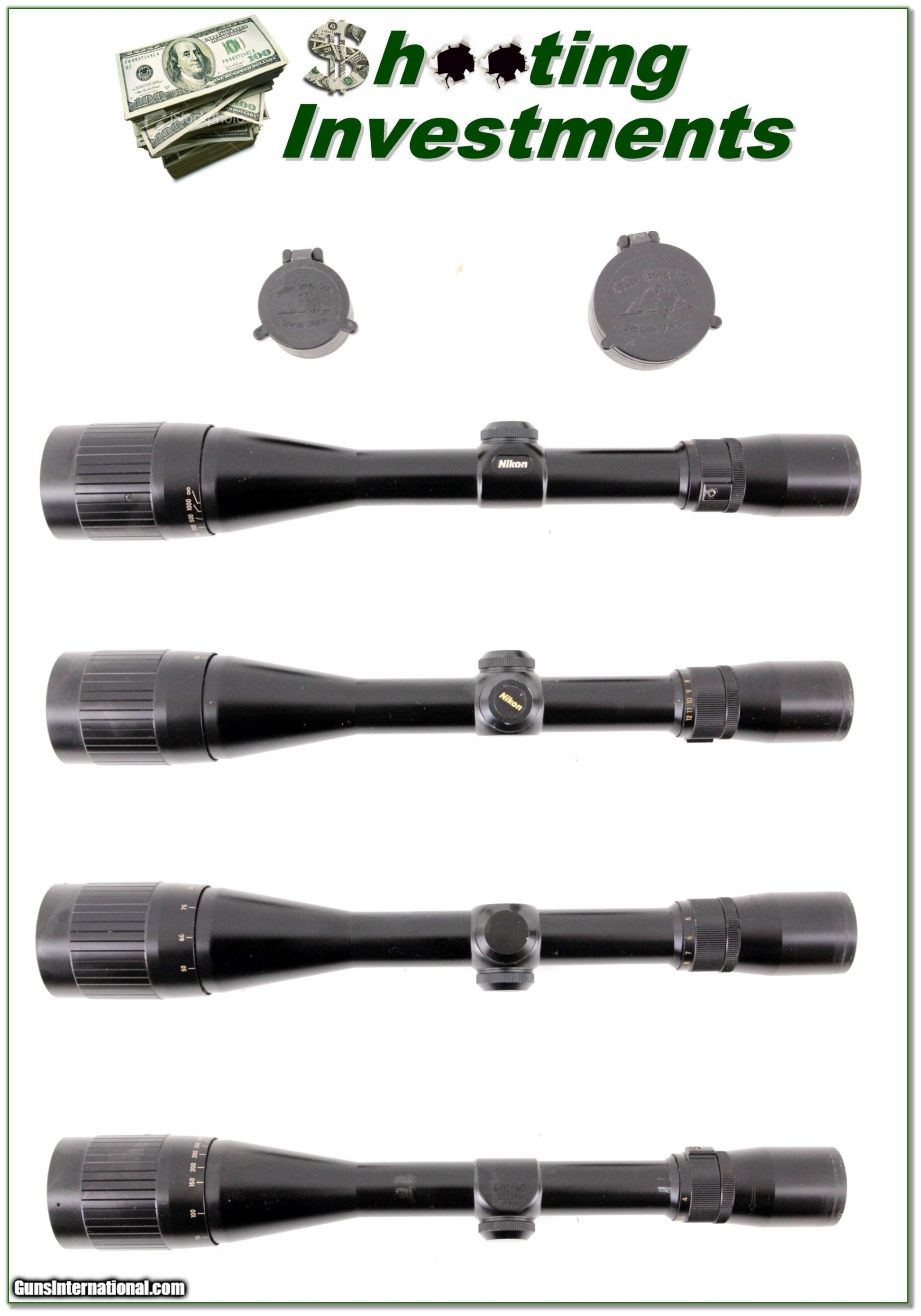 Description: This is an excellent condition Nikon scope in 4-12 Power with AO. It is matt and comes with covers as seen. This is a top-quality Japan made Nikon. The optics are crystal clear with Duplex crosshairs. Shipping is $11.95. Please email me with any questions or larger pictures. (Consign your quality firearms with Shooting Investments for only 12%! Let me know if you have any you would like to sell!) 18-1186s Payment: Payment is by Money Order, Cashiers Check or Personal Check. I can now also accept Credit Cards (MasterCard, Visa, Discover & American Express) with a 3% convenience fee. PayPal can be used for some items but never for firearms. Shipping: The shipping charge will be listed in each description. It is $39 for most firearms. Some heavy guns or those insured for over $2000 will be higher. Shipments to Alaska and Hawaii are higher because air shipment is required. Most firearms are shipped on Tuesday and Thursday and usually in 5 days of receipt of payment. We package all shipments carefully and insure them. Optics are shipped Priority Mail and most other non-firearm shipments are shipped First Class. Returns: Our return policy is simple. If for any reason you are not pleased with your purchase, you may return your item for a full refund of purchase price. Ammunition cannot be returned. It is important to us that you are happy. Guns cannot be fired or dissembled before returning them and they must be returned in the same condition as received. Notification of a return must occur with-in 3 days of receipt at your dealer. Shipping, convenience and dealer fees are not refundable and are the responsibility of the buyer. Lay-a-way: If needed, we offer a 60 day lay-a-way option on most firearms. It is 1/3 now, 1/3 in 30 days and 1/3 in 60 days. Lay-a-way firearm sales are final and if not completed the first payment cannot be returned. Consigning your firearms with Shooting Investments: We will help you get top dollar for your firearms. While most local guns shops charge 20% or more, our fee is only 12% with a minimum of $75. At your local gun shop it might take months to sell. Selling on-line provides instant access to thousands of interested buyers. You won’t find any other on-line dealer willing to sell your firearms for only 12% or listing every gun on 3 separate s. Selling through an House typically costs the seller 15% and the buyer an addition 15% (so 30%) and you have to wait several months to sell and longer to receive funds. If properly priced, we will sell your firearms in a few weeks. Send us an email or give us a call and we’ll explain how easy it is for you to get top dollar. Trading: Trading for use is really just buying your gun to re-sell. If you have a gun you want to trade, please email a picture and we will let you know what we can give or it. You will always get more if we sell it for you on consignment. Help for California Buyers: We are happy to ship to California. It is the buyer’s responsibility to make sure any item you buy is legal in your state. We are also happy to help with your purchase of a firearm from someone other than us. If you see a gun you would like to buy but the seller can’t or won’t ship to California they can ship to use and we’ll then ship it to your California dealer. The cost for this service is only $30 + shipping. Let us know if we can help! SOLD |