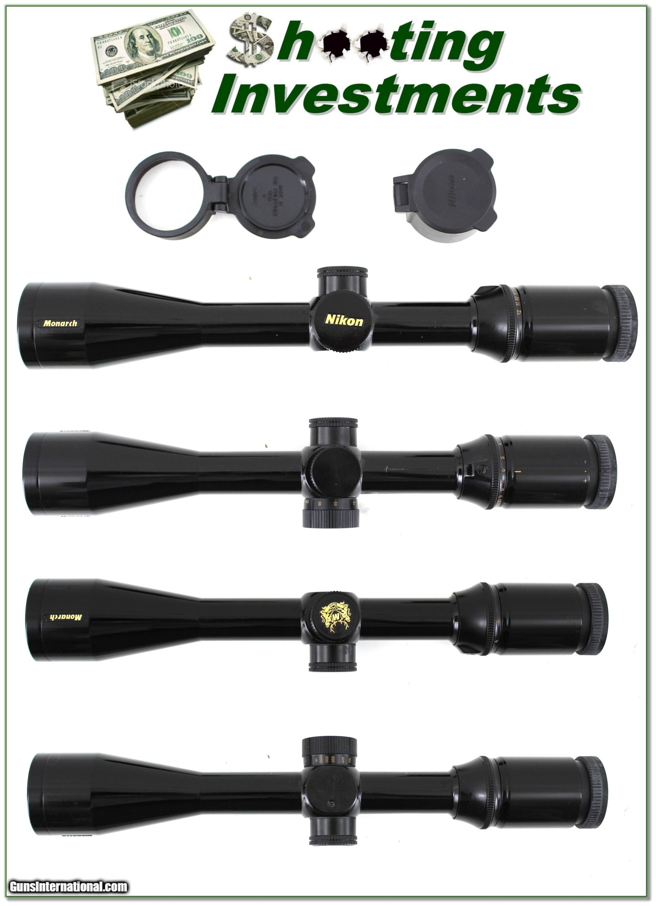 Description: This is a Nikon top of the line Monarch in 3-12 power with 42mm Objective and side AO. It is a VERY hard to find GLOSS model with target turrets and it looks new with factory covers. It has crystal clear glass with Duplex crosshairs. Shipping is $14.95 and please email me with any questions or larger pictures. (Consign your quality firearms with Shooting Investments for only 12%! Let me know if you have any you would like to sell!) 22-0843s Payment: Payment is by Money Order, Cashier’s Check or Personal Check. I can now also accept Credit Cards (MasterCard, Visa, Discover & American Express) with a 3% convenience fee. Shipping: The shipping charge will be listed in each description. It is $39 for most firearms. Some heavy guns or those insured for over $2000 will be higher. Shipments to Alaska and Hawaii are higher because air shipment is required. Most firearms are shipped on Tuesday and Thursday and usually in 5 days of receipt of payment. We package all shipments carefully and insure them. Optics are shipped Priority Mail and most other non-firearm shipments are shipped First Class. Returns: Our return policy is simple. If for any reason you are not pleased with your purchase, you may return your item for a full refund of purchase price. Ammunition cannot be returned. It is important to us that you are happy. Guns cannot be fired or dissembled before returning them and they must be returned in the same condition as received. Notification of a return must occur within 3 days of receipt at your dealer. Shipping, convenience and dealer fees are not refundable and are the responsibility of the buyer. Lay-a-way: If needed, we offer a 60 day lay-a-way option on most firearms. It is 1/3 now, 1/3 in 30 days and 1/3 in 60 days. Lay-a-way firearm sales are final and cannot be returned. If a lay-a-way is not completed the first payment cannot be refunded. Consigning your firearms with Shooting Investments: We will help you get top dollar for your firearms. While most local guns shops charge 20% or more, our fee is only 12% with a minimum of $75. At your local gun shop it might take months to sell. Selling on-line provides instant access to thousands of interested buyers. You won’t find any other on-line dealer willing to sell your firearms for only 12% or listing every gun on 3 separate s. Selling through an House typically costs the seller 15% and the buyer an addition 15% (so 30%) and you have to wait several months to sell and longer to receive funds. If properly priced, we will sell your firearms within a few weeks. Send us an email or give us a call and we’ll explain how easy it is for you to get top dollar. Trading: Trading for us is really just buying your gun to re-sell. If you have a gun you want to trade, please email a picture and we will let you know what we can give for it. You will always get more if we sell it for you on consignment. Help for California Buyers: We are happy to ship to California. It is the buyer’s responsibility to make sure any item you buy is legal in your state. We are also happy to help with your purchase of a firearm from someone other than us. If you see a gun you would like to buy but the seller can’t or won’t ship to California they can ship to use and we’ll then ship it to your California dealer. The cost for this service is only $30 + shipping. Let us know if we can help! SOLD |