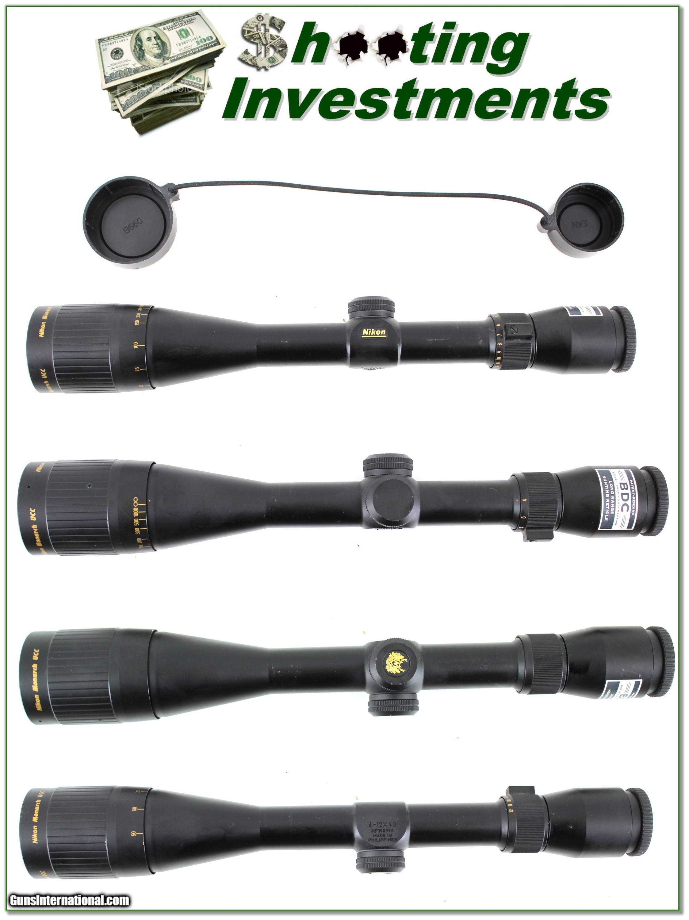 Description: This is Nikon’s top of the line Monarch in 4-12 power with 40mm Objective and AO. It looks new. It has crystal clear glass with Long Range Hunting BDC crosshairs. Shipping is $14.95 and please email me with any questions or larger pictures. (Consign your quality firearms with Shooting Investments for only 12%! Let me know if you have any you would like to sell!) 20-0623s Payment: Payment is by Money Order, Cashiers Check or Personal Check. I can now also accept Credit Cards (MasterCard, Visa, Discover & American Express) with a 3% convenience fee. Shipping: The shipping charge will be listed in each description. It is $39 for most firearms. Some heavy guns or those insured for over $2000 will be higher. Shipments to Alaska and Hawaii are higher because air shipment is required. Most firearms are shipped on Tuesday and Thursday and usually in 5 days of receipt of payment. We package all shipments carefully and insure them. Optics are shipped Priority Mail and most other non-firearm shipments are shipped First Class. Returns: Our return policy is simple. If for any reason you are not pleased with your purchase, you may return your item for a full refund of purchase price. Ammunition cannot be returned. It is important to us that you are happy. Guns cannot be fired or dissembled before returning them and they must be returned in the same condition as received. Notification of a return must occur with-in 3 days of receipt at your dealer. Shipping, convenience and dealer fees are not refundable and are the responsibility of the buyer. Lay-a-way: If needed, we offer a 60 day lay-a-way option on most firearms. It is 1/3 now, 1/3 in 30 days and 1/3 in 60 days. Lay-a-way firearm sales are final and if not completed the first payment cannot be returned. Consigning your firearms with Shooting Investments: We will help you get top dollar for your firearms. While most local guns shops charge 20% or more, our fee is only 12% with a minimum of $75. At your local gun shop it might take months to sell. Selling on-line provides instant access to thousands of interested buyers. You won’t find any other on-line dealer willing to sell your firearms for only 12% or listing every gun on 3 separate s. Selling through an House typically costs the seller 15% and the buyer an addition 15% (so 30%) and you have to wait several months to sell and longer to receive funds. If properly priced, we will sell your firearms in a few weeks. Send us an email or give us a call and we’ll explain how easy it is for you to get top dollar. Trading: Trading for use is really just buying your gun to re-sell. If you have a gun you want to trade, please email a picture and we will let you know what we can give or it. You will always get more if we sell it for you on consignment. Help for California Buyers: We are happy to ship to California. It is the buyer’s responsibility to make sure any item you buy is legal in your state. We are also happy to help with your purchase of a firearm from someone other than us. If you see a gun you would like to buy but the seller can’t or won’t ship to California they can ship to use and we’ll then ship it to your California dealer. The cost for this service is only $30 + shipping. Let us know if we can help! SOLD |