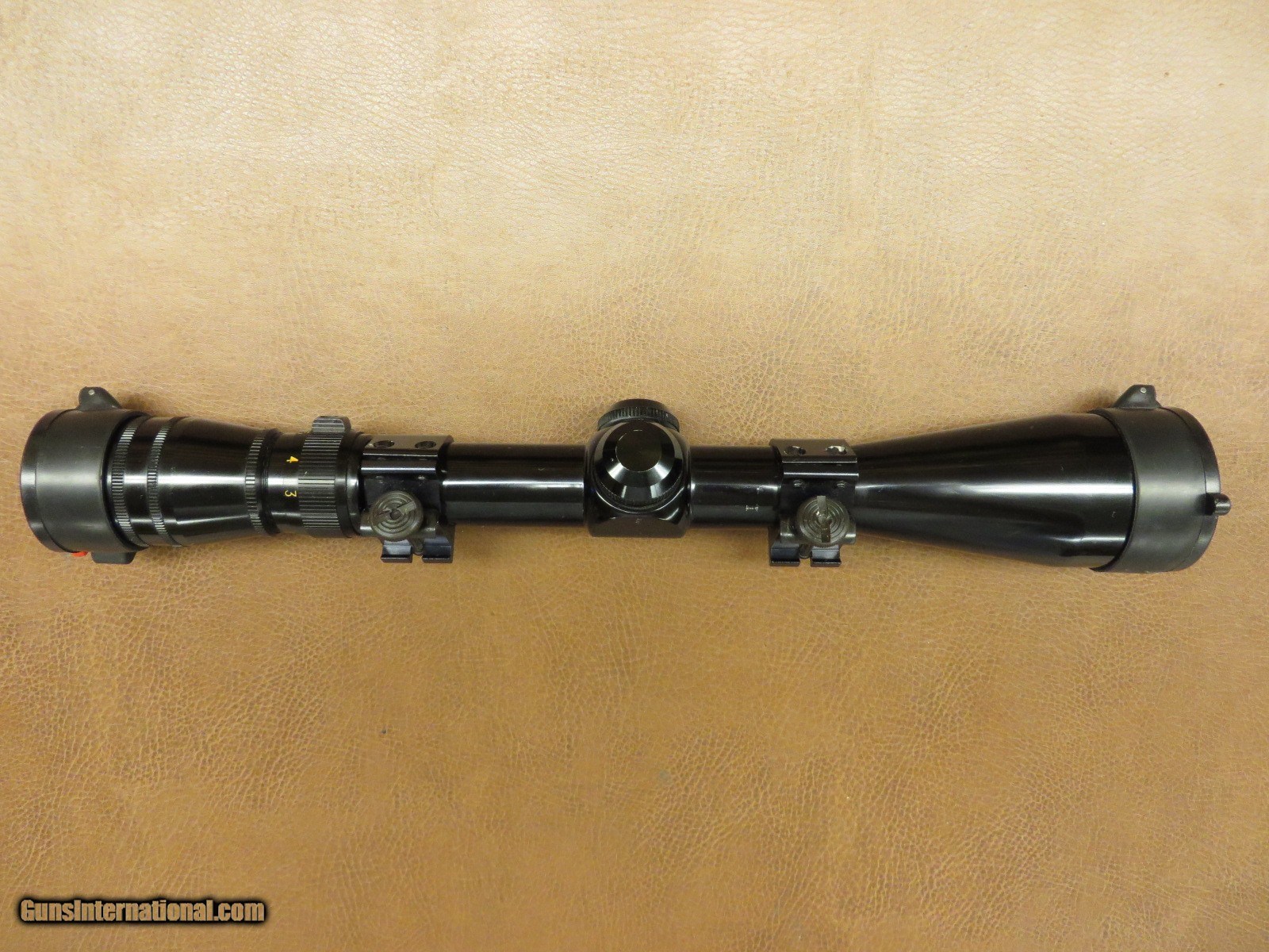 Description: 3 to 9 power gloss finish with duplex type reticle. All in 95%+ condition with Weaver type mounting rings and original flip up lens covers. SOLD |