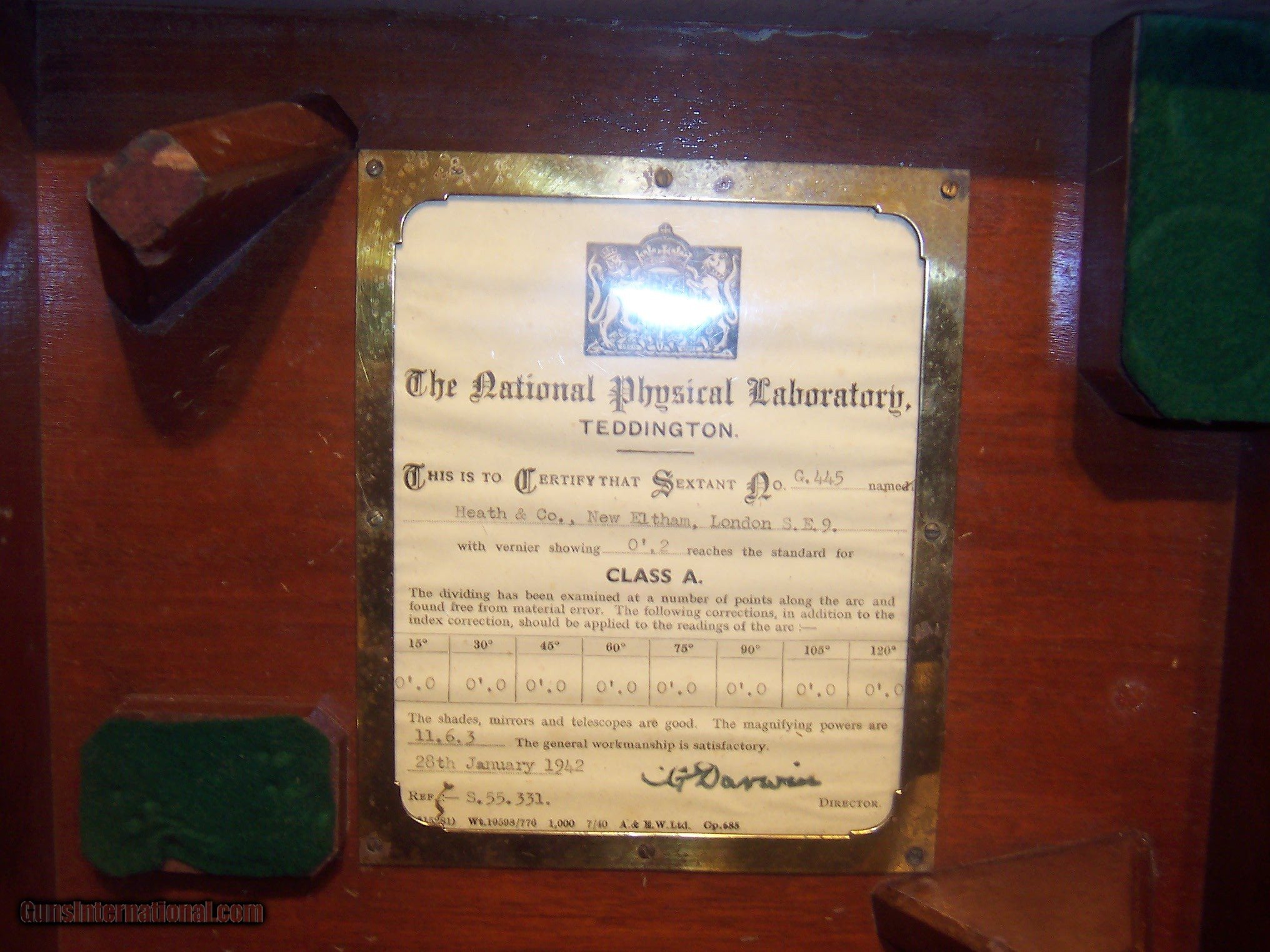 Description: heath &co london// made early 20th century // last inspected 1942 // probably for english war ship use solid case very complete sextant in vg condition $37 sh SOLD |