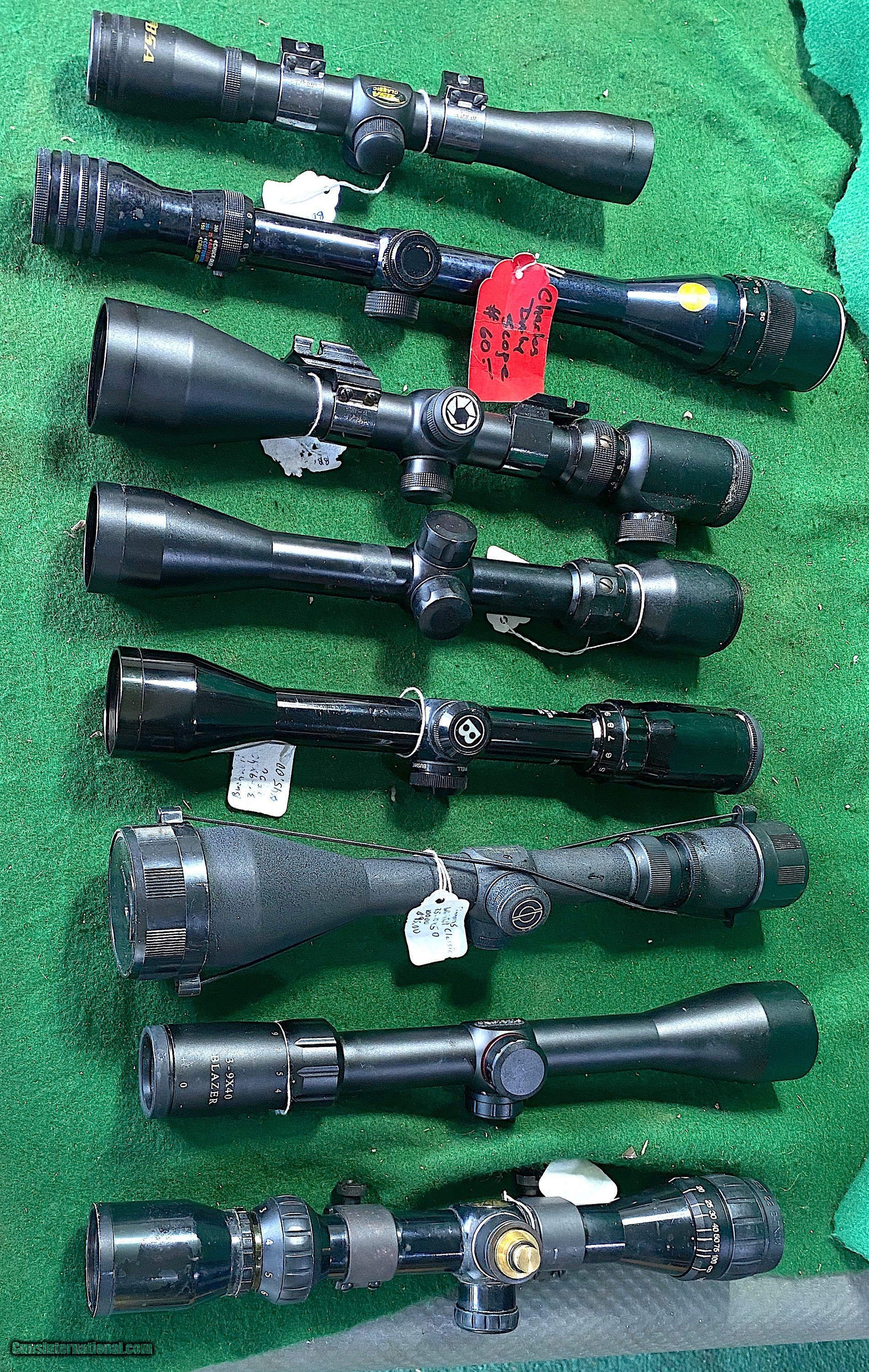 Description: Group of 8 Rifle Telescopes = Various Makers , and sizes == I know nothing of scopes so there is no set price, What ever you feel like paying contact me == I am easy == and , Motivated to sell == ALL OFFERS CONSIDERED == ZELLE accepted == SOLD |