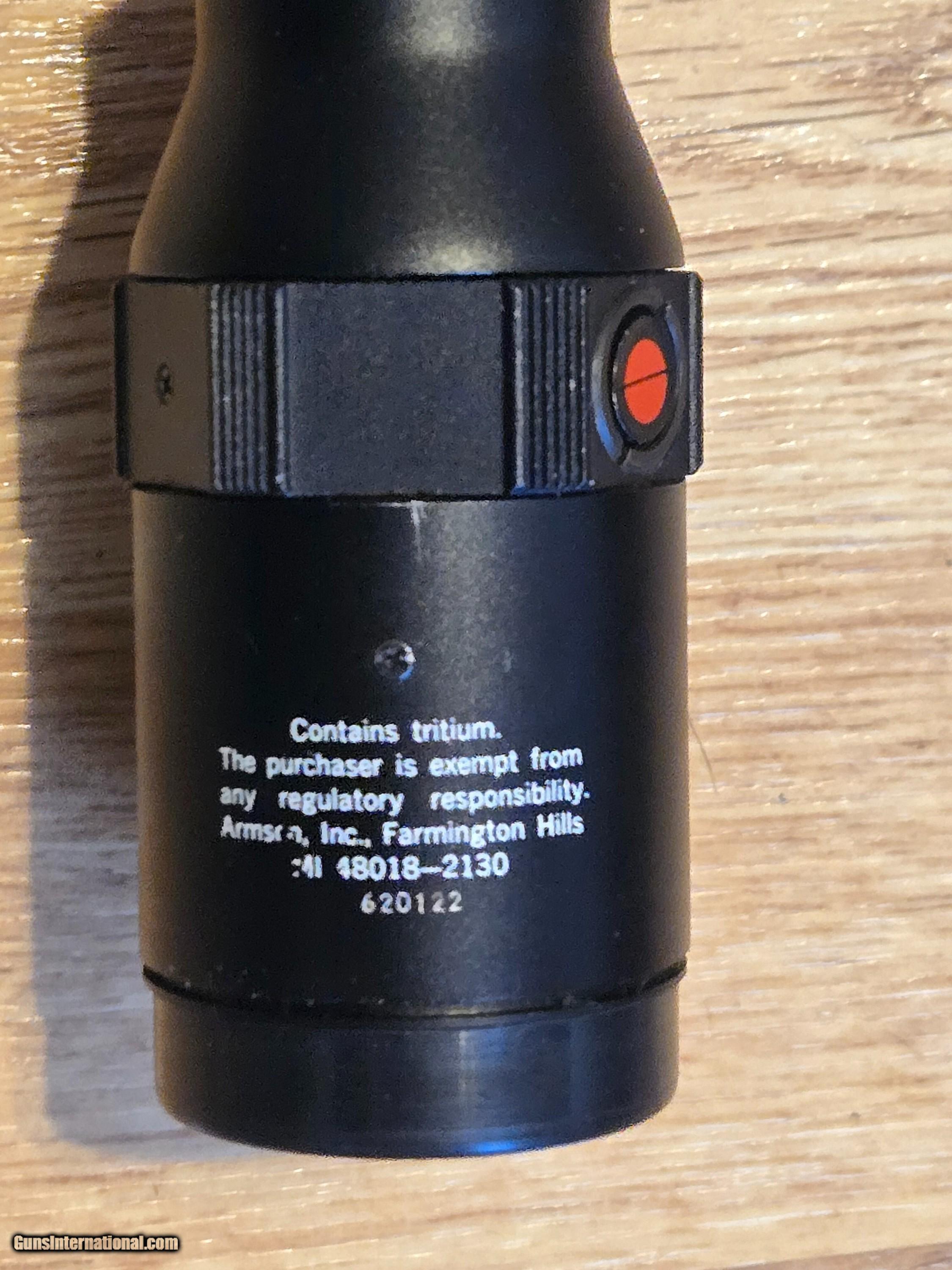 Description: Trijcon Wide Spectrum 6 x 56mm rifle scope. This was the first scope in the world to use Tritium. It was made from 1985-87. It's in excellent condition with extremely clear glass. There are three different colors for the reticle, red, green and yellow however only the red is still visible. The reticle which is a dot with two lines on each side is still fully visible. This scope is built extremely well. Please look at the pictures and email any questions. I accept USPS money orders. Price: $700.00 Shipping: $25.00 Contact Seller |