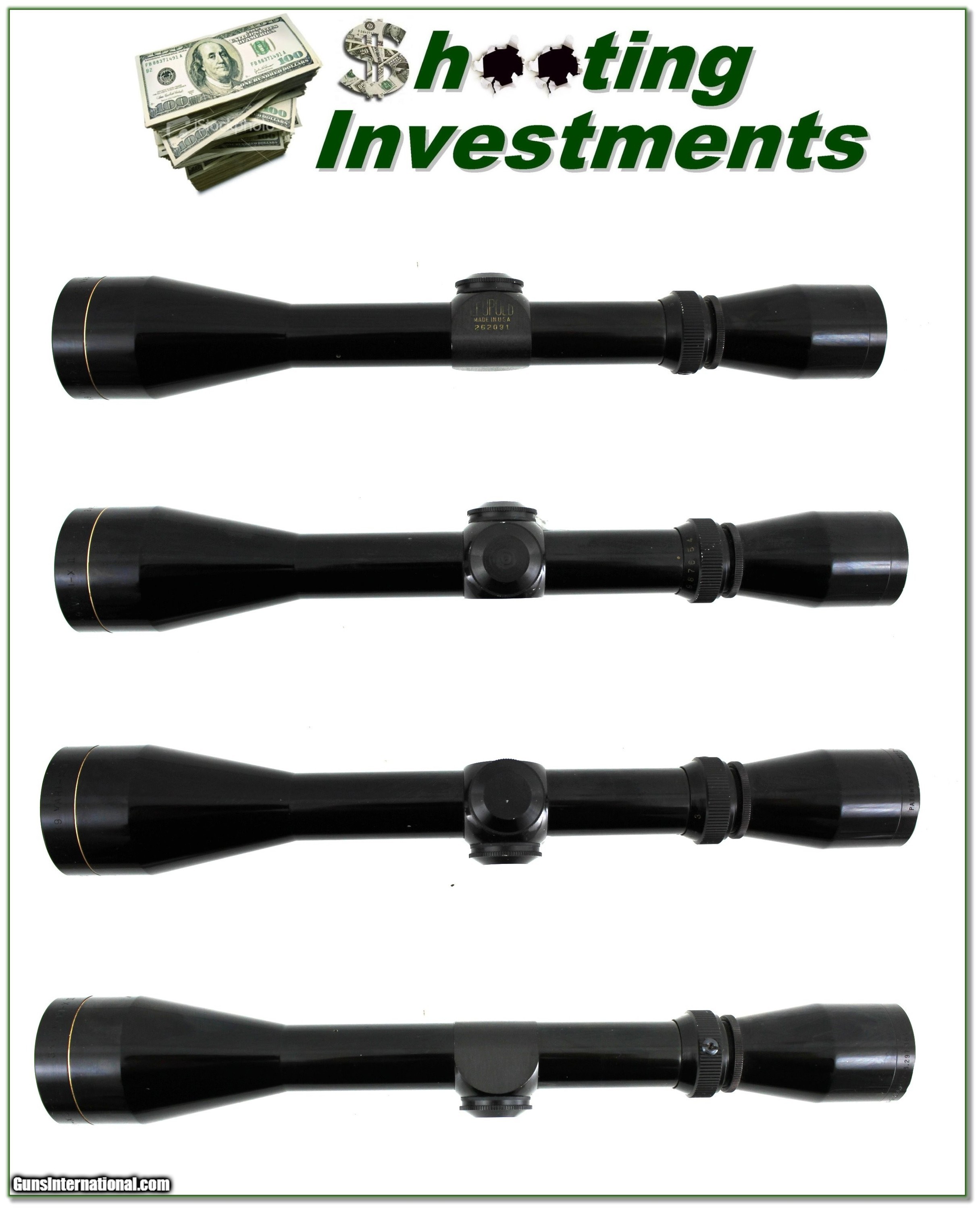 Description: This is a vintage GLOSS Leupold in 3-9 power. It has crystal clear optics with Duplex crosshairs. It is in excellent condition with no marks of note. This will make a very nice light weight scope for your vintage or hunting rifle. And remember Leupold is warranted forever! Shipping is $14.95. Please email me with any questions or larger pictures. (Consign your quality firearms with Shooting Investments for only 12%! Let me know if you have any you would like to sell!) 24-0836s Payment: Payment is by Money Order, Cashier’s Check or Personal Check. I can now also accept Credit Cards (MasterCard, Visa, Discover & American Express) with a 3% convenience fee. Shipping: The shipping charge will be listed in each description. It is $49 for most firearms. Some heavy guns or those insured for over $2000 will be higher. Shipments to Alaska and Hawaii are higher because air shipment is required. Most firearms are shipped on Tuesday and Thursday and usually in 5 days of receipt of payment. We package all shipments carefully and insure them. Optics are shipped Priority Mail and most other non-firearm shipments are shipped First Class. Returns: Our return policy is simple. If for any reason you are not pleased with your purchase, you may return your item for a full refund of purchase price. Ammunition cannot be returned. It is important to us that you are happy. Guns cannot be fired or dissembled before returning them and they must be returned in the same condition as received. Notification of a return must occur within 3 days of receipt at your dealer. Shipping, convenience and dealer fees are not refundable and are the responsibility of the buyer. Lay-a-way: If needed, we offer a 60 day lay-a-way option on most firearms. It is 1/3 now, 1/3 in 30 days and 1/3 in 60 days. Lay-a-way firearm sales are final and cannot be returned. If a lay-a-way is not completed the first payment cannot be refunded. Consigning your firearms with Shooting Investments: We will help you get top dollar for your firearms. While most local guns shops charge 20% or more, our fee is only 12% with a minimum of $75. At your local gun shop it might take months to sell. Selling on-line provides instant access to thousands of interested buyers. You won’t find any other on-line dealer willing to sell your firearms for only 12% or listing every gun on 3 separate s. Selling through an House typically costs the seller 15% and the buyer an addition 15% (so 30%) and you have to wait several months to sell and longer to receive funds. If properly priced, we will sell your firearms within a few weeks. Send us an email or give us a call and we’ll explain how easy it is for you to get top dollar. Trading: Trading for us is really just buying your gun to re-sell. If you have a gun you want to trade, please email a picture and we will let you know what we can give for it. You will always get more if we sell it for you on consignment. SOLD |