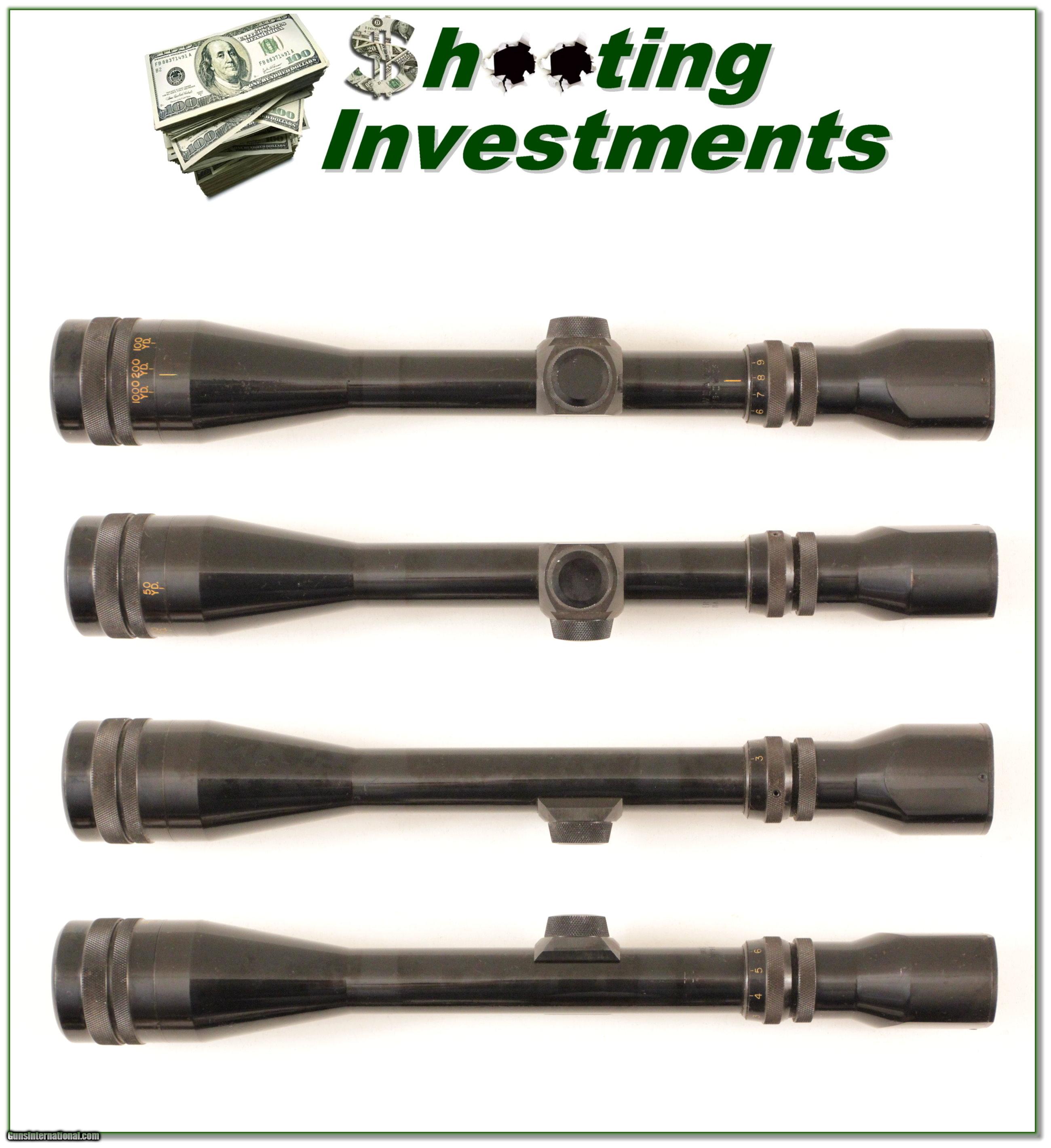 Description: This is a vintage Weaver 3-9 rifle scope with adjustable objective widefield view. It is the older steel model and is in excellent condition. The optics are crystal clear with standard crosshairs. This will make a very nice scope for any vintage rifle. Please email me with any questions or for larger photos. Shipping is $9.95 and please email me with any questions or larger pictures. (I now consign quality firearms only 10%! Let me know if you have any you would like to sell!) [16-0369s] Payment: Payment is by Money Order, Cashiers Check or Personal Check. I can now also accept MasterCard and Visa with a 3% convenience fee. PayPal can be used for some items but never firearms. Please let us know if you would like to pay via PayPal. Shipping: The shipping charge will be listed in each description. It is $35 for most guns. Some heavy guns or those insured for over $2000 will be higher. Shipments to Alaska and Hawaii are higher because air shipment is required. Most firearms are shipped within 5 days of receipt of payment. We prefer shipping at the beginning of the week to avoid firearms in transit over weekends. We package all shipments carefully and insure them for the full purchase price, rounded up to the next $100. In the unlikely event that damage occurs, it is important that you save all packaging material for the claims process. Optics are shipped Priority Mail and most other non-firearm shipments are shipped First Class. Returns: Our return policy is simple. If for any reason you are not pleased with your purchase, you may return your item for a refund. The only exception is ammunition, it cannot be returned. It is important to us that you are happy. Guns cannot be fired or dissembled before returning them and must be returned in the same condition as received. Notification of a return must occur with-in 3 days of receipt at your dealer. Shipping, convenience and dealer fees are not refundable and are the responsibility of the buyer. Lay-a-way: If needed, we offer a 60 day lay-a-way option on most firearms. It is 1/3 now, 1/3 in 30 days and 1/3 in 60 days. Lay-a-way firearm sales are final. Consigning your firearms with Shooting Investments: We will help you get top dollar for your firearms. While most local guns shops charge 20% or more, our fee is only 10% with a minimum of $50. At your local gun shop it might take months to sell. Selling on-line provides instant access to thousands of interested buyers. You won’t find any other on-line dealer willing to sell your firearms for only 10% or listing every gun on 4 separate s. Selling through an House typically costs the seller 15% and the buyer an addition 15% (so 30%) and you have to wait several months to sell and longer to receive funds. If properly priced, we will sell your firearms in a week or two. Send us an email or give us a call and we’ll explain how easy it is for you to get top dollar. Trading: We collect guns and usually just trade for guns we want to add to our collections. We often sell guns for others wanting to purchase one of ours. We find this the most fair to both of us. Our Commission is only 10% and we hold the gun you want until yours sells. Please contact us if you want to sell one of yours to buy one of ours. Help for California Buyers: We are happy to ship to California. It is the buyer’s responsibility to make sure any item you buy is legal in your state. We are also happy to help with your purchase of a firearm from someone other than us. If you see a gun you would like to buy but the seller can’t or won’t ship to California we can help. You buy the gun and have it shipped to us. We’ll then ship it to your California dealer. The cost for this service is only $30 + shipping. Let me know if we can help! SOLD |