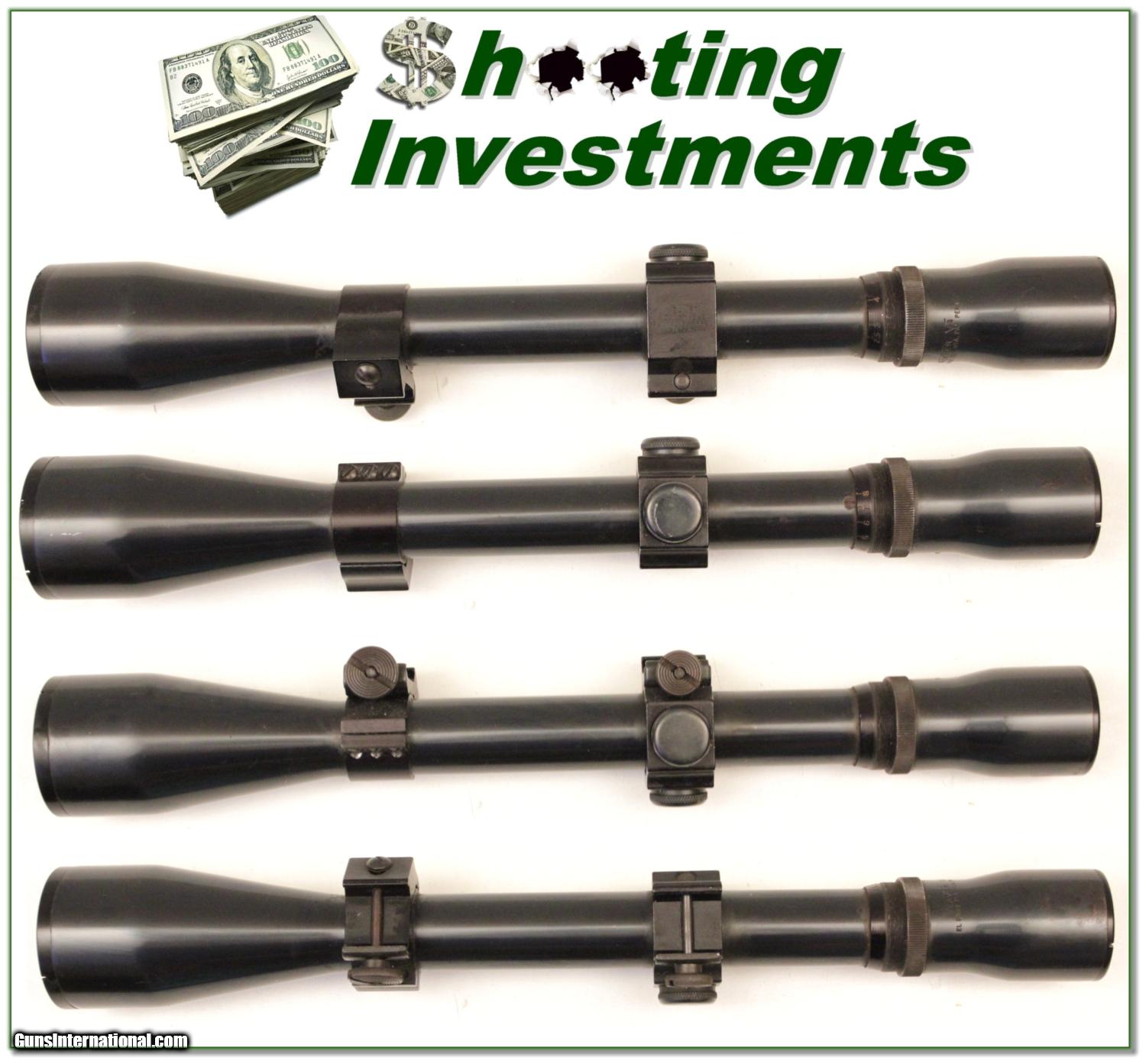 Description: Collectors, this is a 50’s made Weaver scope. It is an El Paso Texas V8 in 2.5 to 8 Power. These are tubes with standard crosshairs. Windage and elevation adjustments are made using the rings, which are included. These rings fit any standard Weaver bases. This collector scope is in excellent condition with only light use. Shipping and insurance is $9.95 and please email me with any questions or larger pictures. (I now consign quality firearms only 10%! Let me know if you have any you would like to sell!) [15-1414s] Payment: Payment is by Money Order, Cashiers Check or Personal Check. I can now also accept MasterCard and Visa with a 3% convenience fee. PayPal can be used for some items but never firearms. Please let us know if you would like to pay via PayPal. Shipping: The shipping charge will be listed in each description. It is $30 for most guns. Some heavy guns or those insured for over $2000 may be higher. Shipments to Alaska and Hawaii are higher because air shipment is required. Most firearms are shipped within 5 days of receipt of payment. We prefer shipping at the beginning of the week to avoid firearms in transit over weekends. We package all shipments carefully and insure them for the full purchase price, rounded up to the next $100. In the unlikely event that damage occurs, it is important that you save all packaging material for the claims process. Optics are shipped Priority Mail and most other non-firearm shipments are shipped First Class. Returns: Our return policy is simple. If for any reason you are not pleased with your purchase, you may return your item for a refund. The only exception is ammunition, it cannot be returned. It is important to us that you are happy. Guns cannot be fired or dissembled before returning them and must be returned in the same condition as received. Notification of a return must occur with-in 3 days of receipt at your dealer. Shipping, convenience and dealer fees are not refundable and are the responsibility of the buyer. Lay-a-way: If needed, we offer a 60 day lay-a-way option on most firearms. It is 1/3 now, 1/3 in 30 days and 1/3 in 60 days. Lay-a-way firearm sales are final. Consigning your firearms with Shooting Investments: We will help you get top dollar for your firearms. While most local guns shops charge 20% or more, our fee is only 10% with a minimum of $50. At your local gun shop it might take months to sell. Selling on-line provides instant access to thousands of interested buyers. You won’t find any other on-line dealer willing to sell your firearms for only 10% or listing every gun on 4 separate s. Selling through an House typically costs the seller 15% and the buyer an addition 15% (so 30%) and you have to wait several months to sell and longer to receive funds. If properly priced, we will sell your firearms in a week or two. Send us an email or give us a call and we’ll explain how easy it is for you to get top dollar. Trading: We collect guns and usually just trade for guns we want to add to our collections. We often sell guns for others wanting to purchase one of ours. We find this the most fair to both of us. Our Commission is only 10% and we hold the gun you want until yours sells. Please contact us if you want to sell one of yours to buy one of ours. Help for California Buyers: We are happy to ship to California. It is the buyer’s responsibility to make sure any item you buy is legal in your state. We are also happy to help with your purchase of a firearm from someone other than us. If you see a gun you would like to buy but the seller can’t or won’t ship to California we can help. You buy the gun and have it shipped to us. We’ll then ship it to your California dealer. The cost for this service is only $30 + shipping. Let me know if we can help! SOLD |