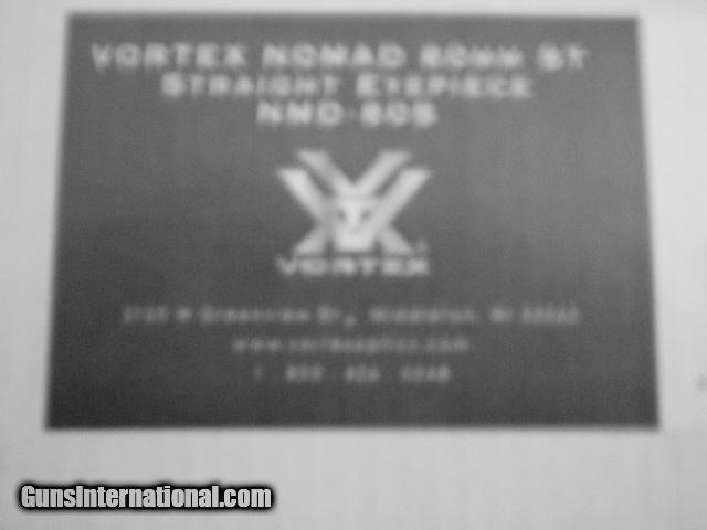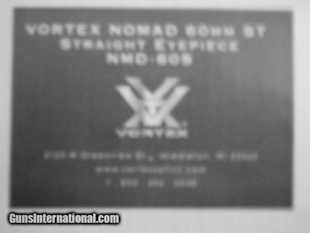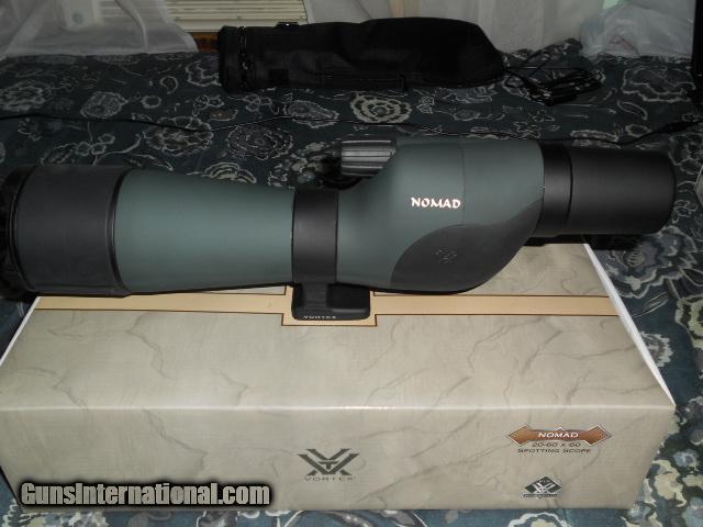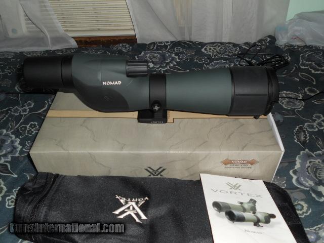 Description: Vortex nomad 60mm st straight eyepiece spotting scope. 20-60x power 60mm objective. box, owners manual, soft case, strap. Used couple of times. Scope is in excellent condition with no defect. Has transferable limited life time manufactures warrantee. (Paid $329.99) Purchaser pays actual shipping cost to there destination. SOLD |