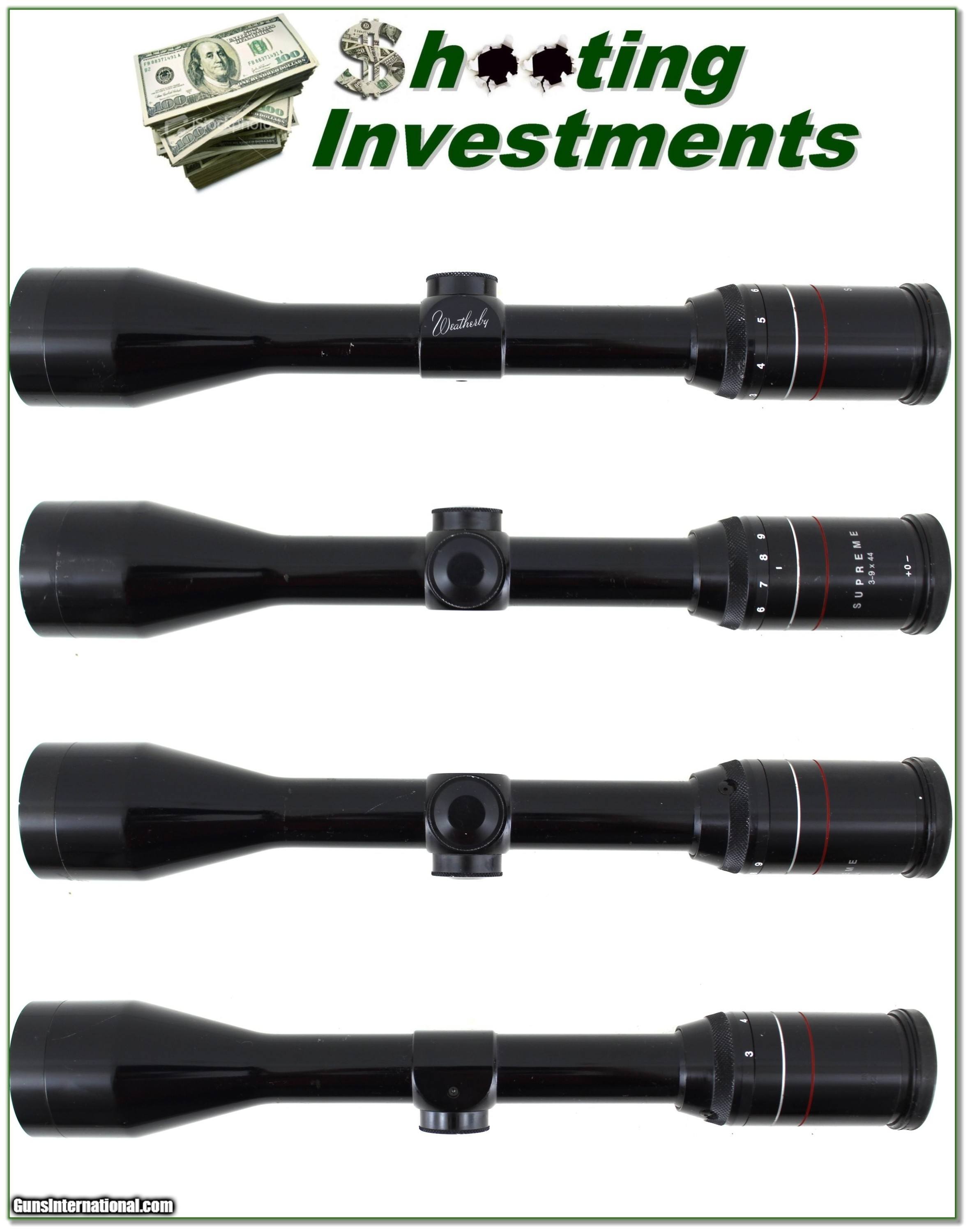 Description: This is a high-end Weatherby Supreme in 3-9 X 44mm. These are high quality scopes. This one is in very good condition with just a few marks from use. It crystal clear optics with duplex crosshairs. Shipping is $14.95. Please email me with any questions or larger pictures. (Consign your quality firearms with Shooting Investments for only 12%! Let me know if you have any you would like to sell!) 22-0056s Payment: Payment is by Money Order, Cashier’s Check or Personal Check. I can now also accept Credit Cards (MasterCard, Visa, Discover & American Express) with a 3% convenience fee. Shipping: The shipping charge will be listed in each description. It is $39 for most firearms. Some heavy guns or those insured for over $2000 will be higher. Shipments to Alaska and Hawaii are higher because air shipment is required. Most firearms are shipped on Tuesday and Thursday and usually in 5 days of receipt of payment. We package all shipments carefully and insure them. Optics are shipped Priority Mail and most other non-firearm shipments are shipped First Class. Returns: Our return policy is simple. If for any reason you are not pleased with your purchase, you may return your item for a full refund of purchase price. Ammunition cannot be returned. It is important to us that you are happy. Guns cannot be fired or dissembled before returning them and they must be returned in the same condition as received. Notification of a return must occur within 3 days of receipt at your dealer. Shipping, convenience and dealer fees are not refundable and are the responsibility of the buyer. Lay-a-way: If needed, we offer a 60 day lay-a-way option on most firearms. It is 1/3 now, 1/3 in 30 days and 1/3 in 60 days. Lay-a-way firearm sales are final and cannot be returned. If a lay-a-way is not completed the first payment cannot be refunded. Consigning your firearms with Shooting Investments: We will help you get top dollar for your firearms. While most local guns shops charge 20% or more, our fee is only 12% with a minimum of $75. At your local gun shop it might take months to sell. Selling on-line provides instant access to thousands of interested buyers. You won’t find any other on-line dealer willing to sell your firearms for only 12% or listing every gun on 3 separate s. Selling through an House typically costs the seller 15% and the buyer an addition 15% (so 30%) and you have to wait several months to sell and longer to receive funds. If properly priced, we will sell your firearms within a few weeks. Send us an email or give us a call and we’ll explain how easy it is for you to get top dollar. Trading: Trading for us is really just buying your gun to re-sell. If you have a gun you want to trade, please email a picture and we will let you know what we can give for it. You will always get more if we sell it for you on consignment. Help for California Buyers: We are happy to ship to California. It is the buyer’s responsibility to make sure any item you buy is legal in your state. We are also happy to help with your purchase of a firearm from someone other than us. If you see a gun you would like to buy but the seller can’t or won’t ship to California they can ship to use and we’ll then ship it to your California dealer. The cost for this service is only $30 + shipping. Let us know if we can help! SOLD |