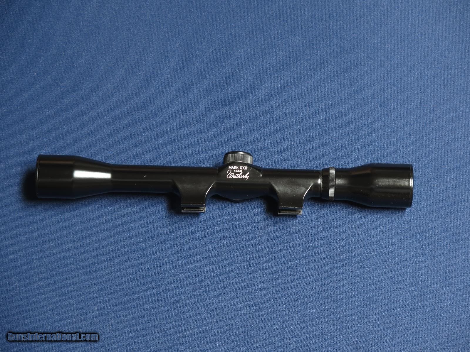 Description: Weatherby XXII 4x50 scope. Duplex reticle. Made in Japan. Excellent condition. SOLD |