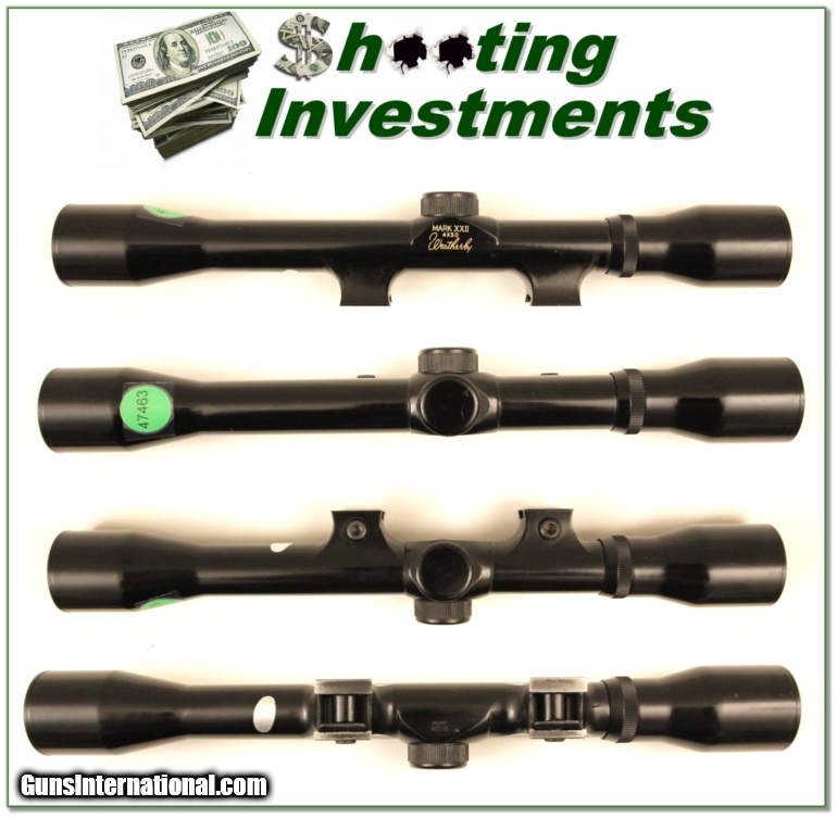 Description: This is an original Weatherby 4X XXII scope for the 22 rifle. This scope is in excellent collector condition. The optics are crystal clear with Duplex crosshairs. It will look nice on your vintage Weatherby XXII 22. Or it is high quality optics for any rimfire. It will fit the new German made Weatherby XXII. Shipping is $9.95 and please email me with any questions or larger pictures. (I now consign quality firearms only 10%! Let me know if you have any you would like to sell!) [13-199s] Payment: Payment is by Money Order, Cashiers Check or Personal Check. I can now also accept MasterCard and Visa with a 3% convenience fee. PayPal can be used for some items but never firearms. Please let us know if you would like to pay via PayPal. Shipping: The shipping charge will be listed in each description. It is $30 for most guns. Some heavy guns or those insured for over $2000 may be higher. Shipments to Alaska and Hawaii are higher because air shipment is required. Most firearms are shipped within 5 days of receipt of payment. We prefer shipping at the beginning of the week to avoid firearms in transit over weekends. We package all shipments carefully and insure them for the full purchase price, rounded up to the next $100. In the unlikely event that damage occurs, it is important that you save all packaging material for the claims process. Optics are shipped Priority Mail and most other non-firearm shipments are shipped First Class. Returns: Our return policy is simple. If for any reason you are not pleased with your purchase, you may return your item for a refund. The only exception is ammunition, it cannot be returned. It is important to us that you are happy. Guns cannot be fired or dissembled before returning them and must be returned in the same condition as received. Notification of a return must occur with-in 3 days of receipt at your dealer. Shipping, convenience and dealer fees are not refundable and are the responsibility of the buyer. Lay-a-way: If needed, we offer a 60 day lay-a-way option on most firearms. It is 1/3 now, 1/3 in 30 days and 1/3 in 60 days. Lay-a-way firearm sales are final. Consigning your firearms with Shooting Investments: We will help you get top dollar for your firearms. While most local guns shops charge 20% or more, our fee is only 10% with a minimum of $50. At your local gun shop it might take months to sell. Selling on-line provides instant access to thousands of interested buyers. You won’t find any other on-line dealer willing to sell your firearms for only 10% or listing every gun on 4 separate s. Selling through an House typically costs the seller 15% and the buyer an addition 15% (so 30%) and you have to wait several months to sell and longer to receive funds. If properly priced, we will sell your firearms in a week or two. Send us an email or give us a call and we’ll explain how easy it is for you to get top dollar. Trading: We collect guns and usually just trade for guns we want to add to our collections. We often sell guns for others wanting to purchase one of ours. We find this the most fair to both of us. Our Commission is only 10% and we hold the gun you want until yours sells. Please contact us if you want to sell one of yours to buy one of ours. Help for California Buyers: We are happy to ship to California. It is the buyer’s responsibility to make sure any item you buy is legal in your state. We are also happy to help with your purchase of a firearm from someone other than us. If you see a gun you would like to buy but the seller can’t or won’t ship to California we can help. You buy the gun and have it shipped to us. We’ll then ship it to your California dealer. The cost for this service is only $30 + shipping. Let me know if we can help! SOLD |