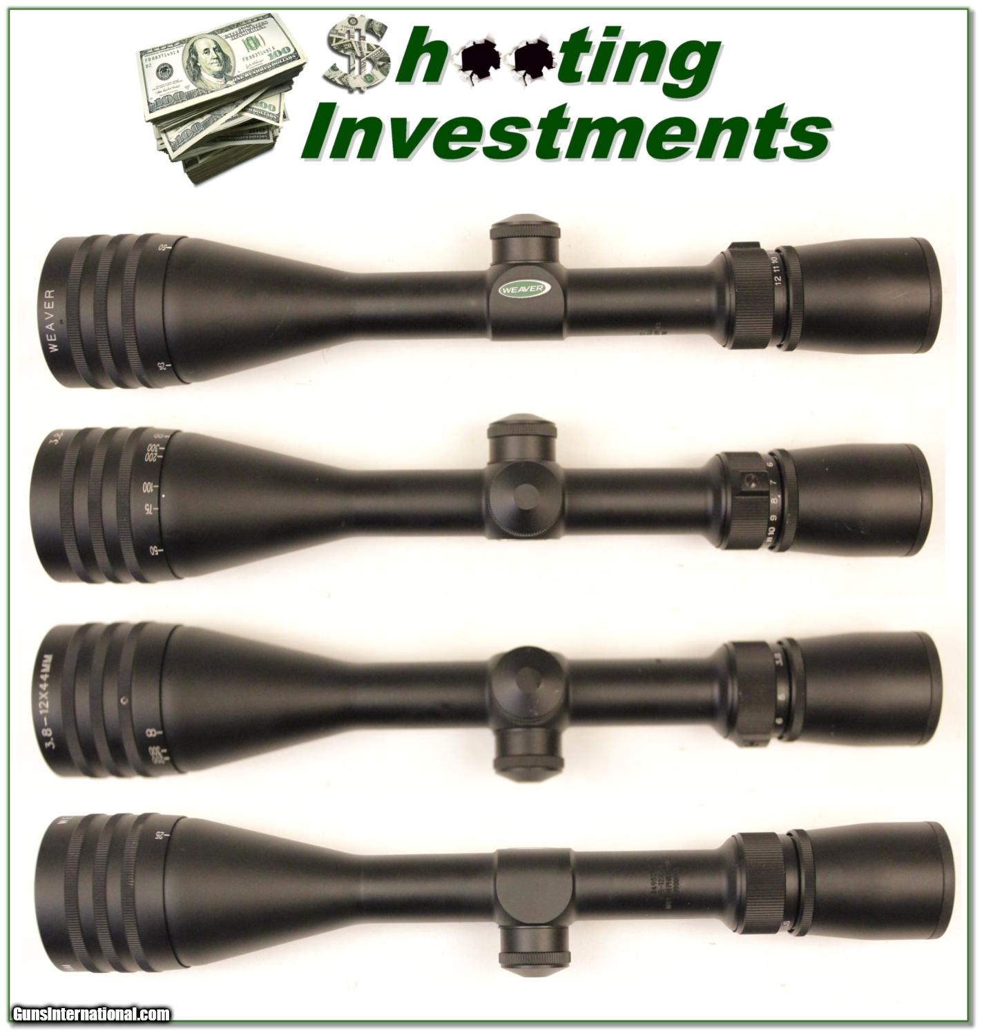Description: This is a like new condition Weaver 3.8x12 Power. It is matt with a 44mm AO objective. The scope looks new with no marks or signs of use. It has crystal clear optics and a Duplex crosshair. Shipping is $9.95 and please email me with any questions or larger pictures. (I now consign quality firearms only 10%! Let me know if you have any you would like to sell!) [15-1269s] Payment: Payment is by Money Order, Cashiers Check or Personal Check. I can now also accept MasterCard and Visa with a 3% convenience fee. PayPal can be used for some items but never firearms. Please let us know if you would like to pay via PayPal. Shipping: The shipping charge will be listed in each description. It is $30 for most guns. Some heavy guns or those insured for over $2000 may be higher. Shipments to Alaska and Hawaii are higher because air shipment is required. Most firearms are shipped within 5 days of receipt of payment. We prefer shipping at the beginning of the week to avoid firearms in transit over weekends. We package all shipments carefully and insure them for the full purchase price, rounded up to the next $100. In the unlikely event that damage occurs, it is important that you save all packaging material for the claims process. Optics are shipped Priority Mail and most other non-firearm shipments are shipped First Class. Returns: Our return policy is simple. If for any reason you are not pleased with your purchase, you may return your item for a refund. The only exception is ammunition, it cannot be returned. It is important to us that you are happy. Guns cannot be fired or dissembled before returning them and must be returned in the same condition as received. Notification of a return must occur with-in 3 days of receipt at your dealer. Shipping, convenience and dealer fees are not refundable and are the responsibility of the buyer. Lay-a-way: If needed, we offer a 60 day lay-a-way option on most firearms. It is 1/3 now, 1/3 in 30 days and 1/3 in 60 days. Lay-a-way firearm sales are final. Consigning your firearms with Shooting Investments: We will help you get top dollar for your firearms. While most local guns shops charge 20% or more, our fee is only 10% with a minimum of $50. At your local gun shop it might take months to sell. Selling on-line provides instant access to thousands of interested buyers. You won’t find any other on-line dealer willing to sell your firearms for only 10% or listing every gun on 4 separate s. Selling through an House typically costs the seller 15% and the buyer an addition 15% (so 30%) and you have to wait several months to sell and longer to receive funds. If properly priced, we will sell your firearms in a week or two. Send us an email or give us a call and we’ll explain how easy it is for you to get top dollar. Trading: We collect guns and usually just trade for guns we want to add to our collections. We often sell guns for others wanting to purchase one of ours. We find this the most fair to both of us. Our Commission is only 10% and we hold the gun you want until yours sells. Please contact us if you want to sell one of yours to buy one of ours. Help for California Buyers: We are happy to ship to California. It is the buyer’s responsibility to make sure any item you buy is legal in your state. We are also happy to help with your purchase of a firearm from someone other than us. If you see a gun you would like to buy but the seller can’t or won’t ship to California we can help. You buy the gun and have it shipped to us. We’ll then ship it to your California dealer. The cost for this service is only $30 + shipping. Let me know if we can help! SOLD |