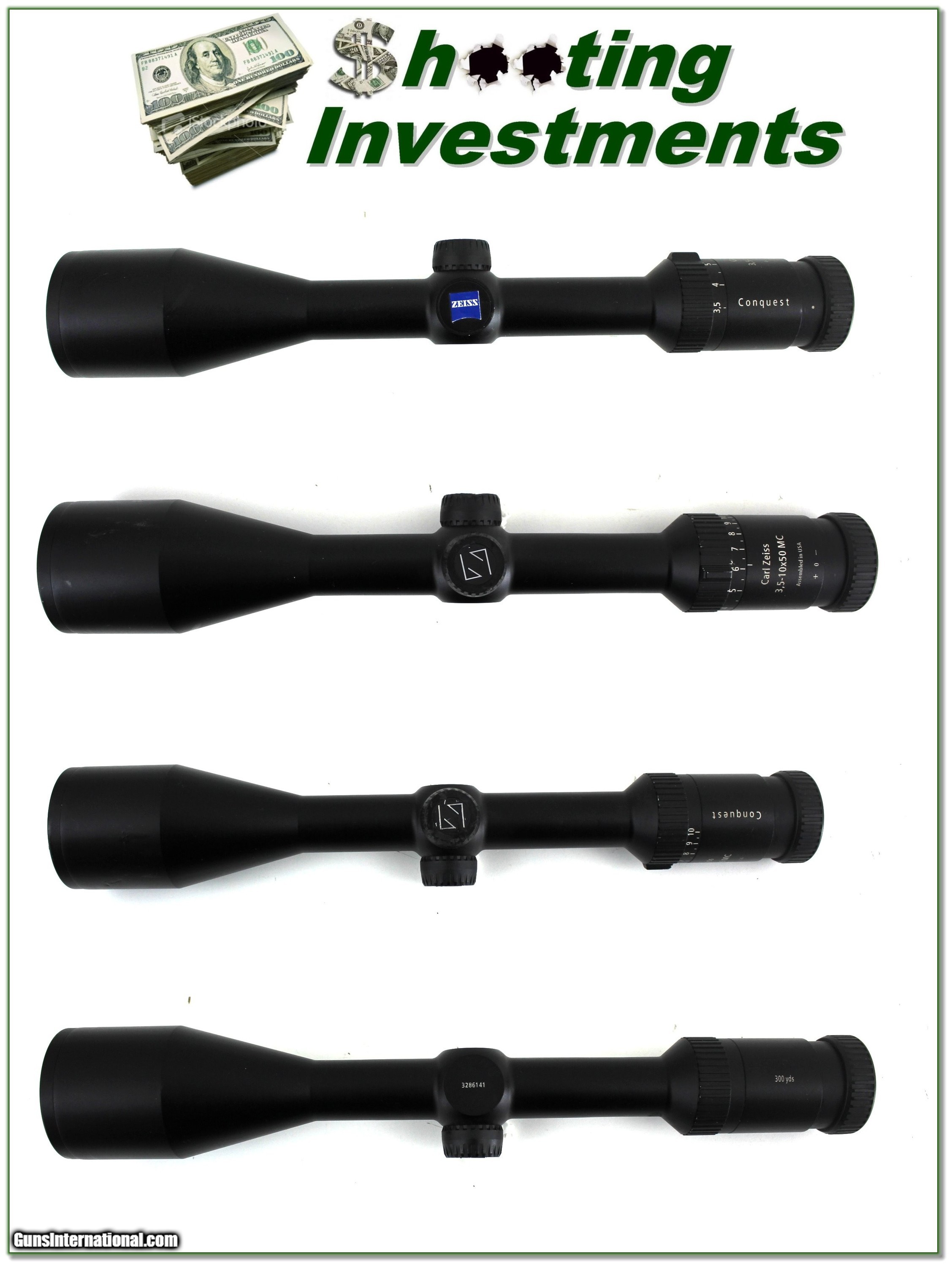 Description: This is a like new Zeiss Conquest 3.5-10x40 MC. It has crystal clear class with the Rapid Z 600 crosshair. It has just a couple marks on the front bell. Shipping is $14.95. Please email me with any questions or larger pictures. (Consign your quality firearms with Shooting Investments for only 12%! Let me know if you have any you would like to sell!) 24-1051s Payment: Payment is by Money Order, Cashier’s Check or Personal Check. I can now also accept Credit Cards (MasterCard, Visa, Discover & American Express) with a 3% convenience fee. Shipping: The shipping charge will be listed in each description. It is $49 for most firearms. Some heavy guns or those insured for over $2000 will be higher. Shipments to Alaska and Hawaii are higher because air shipment is required. Most firearms are shipped on Tuesday and Thursday and usually in 5 days of receipt of payment. We package all shipments carefully and insure them. Optics are shipped Priority Mail and most other non-firearm shipments are shipped First Class. Returns: Our return policy is simple. If for any reason you are not pleased with your purchase, you may return your item for a full refund of purchase price. Ammunition cannot be returned. It is important to us that you are happy. Guns cannot be fired or dissembled before returning them and they must be returned in the same condition as received. Notification of a return must occur within 3 days of receipt at your dealer. Shipping, convenience and dealer fees are not refundable and are the responsibility of the buyer. Lay-a-way: If needed, we offer a 60 day lay-a-way option on most firearms. It is 1/3 now, 1/3 in 30 days and 1/3 in 60 days. Lay-a-way firearm sales are final and cannot be returned. If a lay-a-way is not completed the first payment cannot be refunded. Consigning your firearms with Shooting Investments: We will help you get top dollar for your firearms. While most local guns shops charge 20% or more, our fee is only 12% with a minimum of $75. At your local gun shop it might take months to sell. Selling on-line provides instant access to thousands of interested buyers. You won’t find any other on-line dealer willing to sell your firearms for only 12% or listing every gun on 3 separate s. Selling through an House typically costs the seller 15% and the buyer an addition 15% (so 30%) and you have to wait several months to sell and longer to receive funds. If properly priced, we will sell your firearms within a few weeks. Send us an email or give us a call and we’ll explain how easy it is for you to get top dollar. Trading: Trading for us is really just buying your gun to re-sell. If you have a gun you want to trade, please email a picture and we will let you know what we can give for it. You will always get more if we sell it for you on consignment. SOLD |
