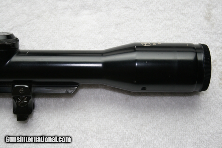 Description: Zeiss Diatal 6x42 Rifle Scope No.784266 Standard #1 Sharp Picket Post Reticle Magnification 6x Field of view - 21’ 100 yds Length - 12.7 inches Weight - 14.8 ounces Tube diameter - 1 inch (25.4 mm) Condition: Excellent, showing minor wear and tear. Scratch near adjustment dial, lenses good with no scratches. Includes front and rear claw mounts SOLD |