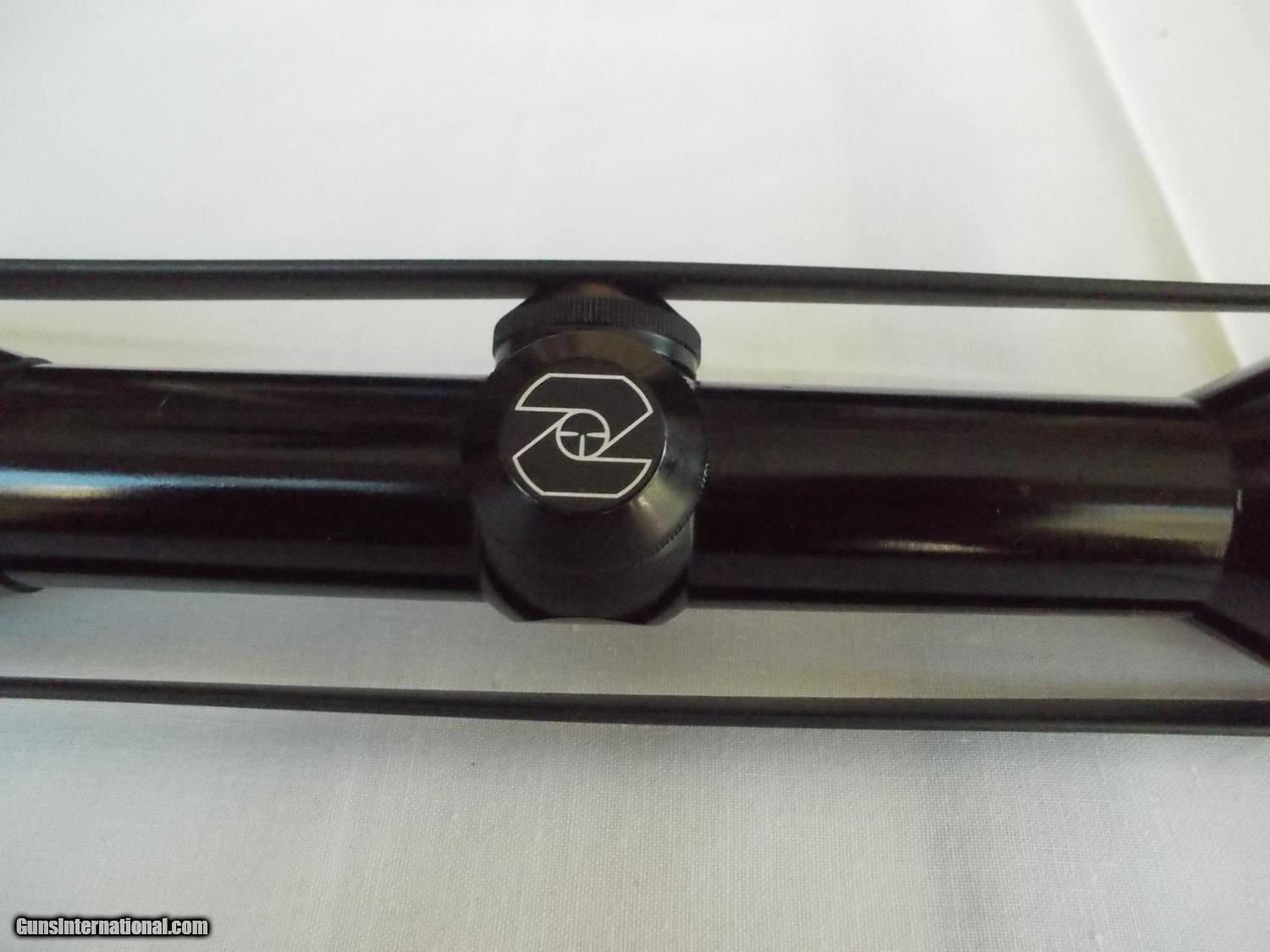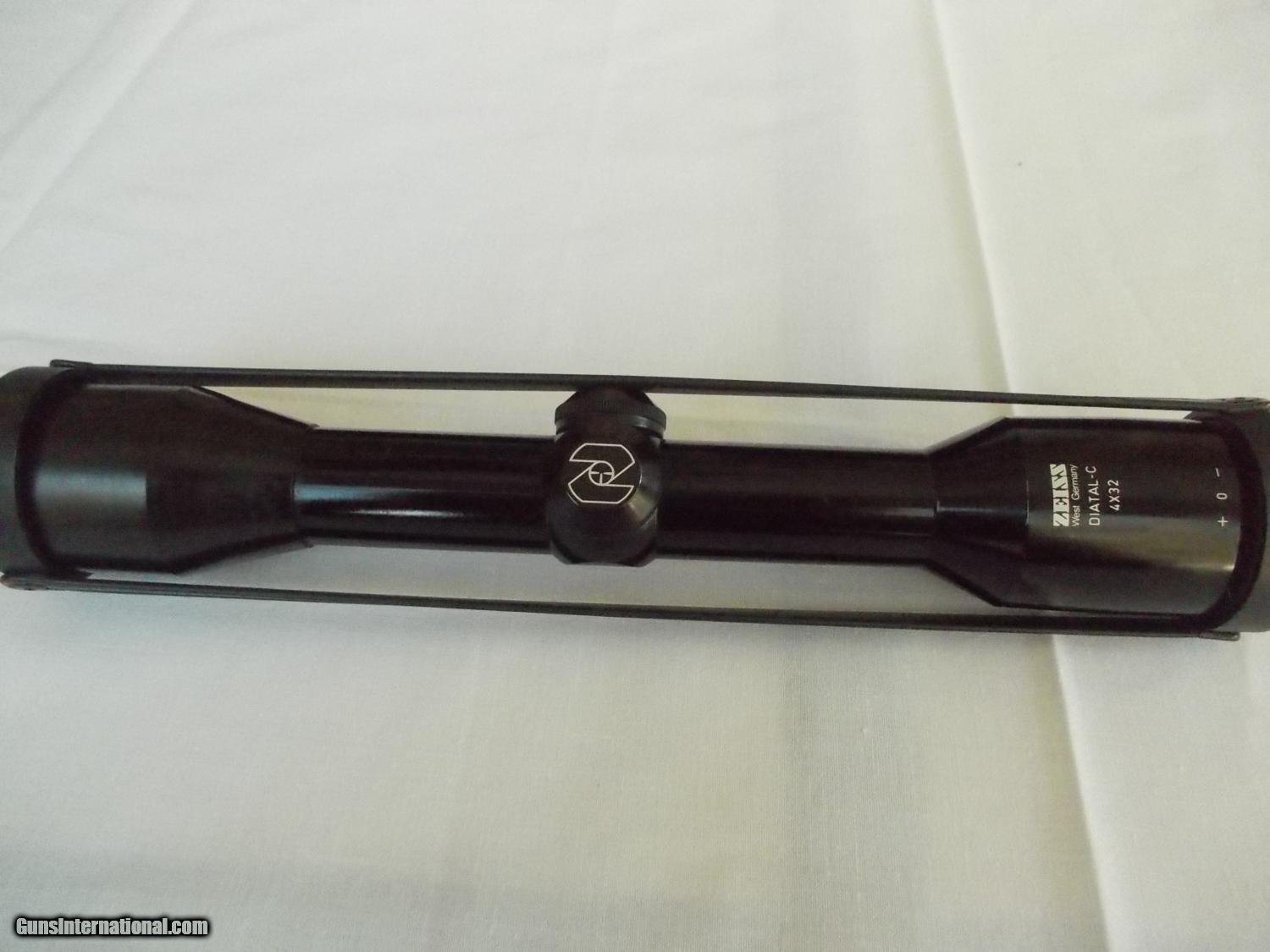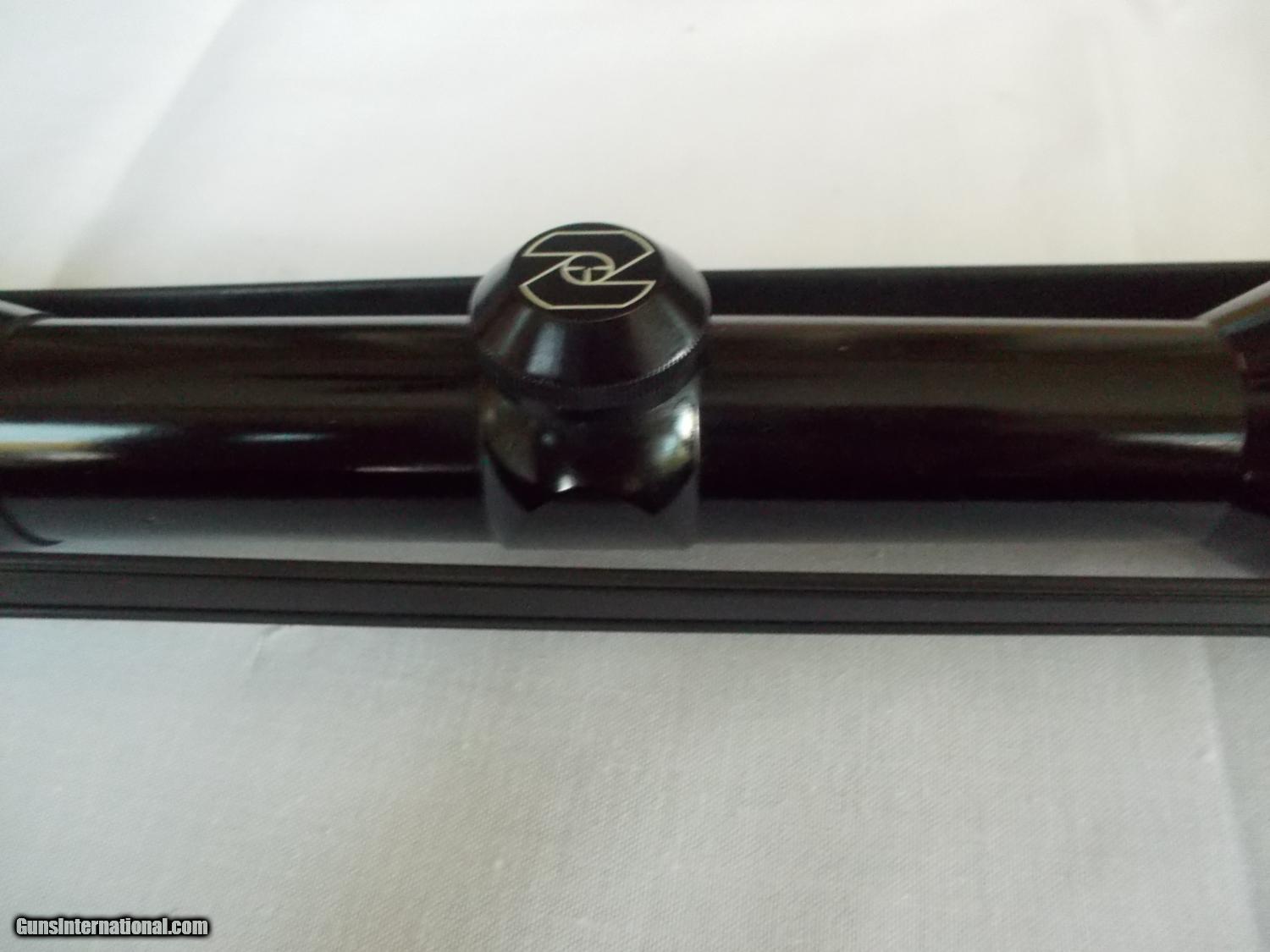 Description: Zeiss Diatal - C 4 Power West German Scope The scope is 99% overall with the ocular bell having the factory rubber coating. The original factory lens covers are as new. The reticle is Zeiss duplex. SOLD |