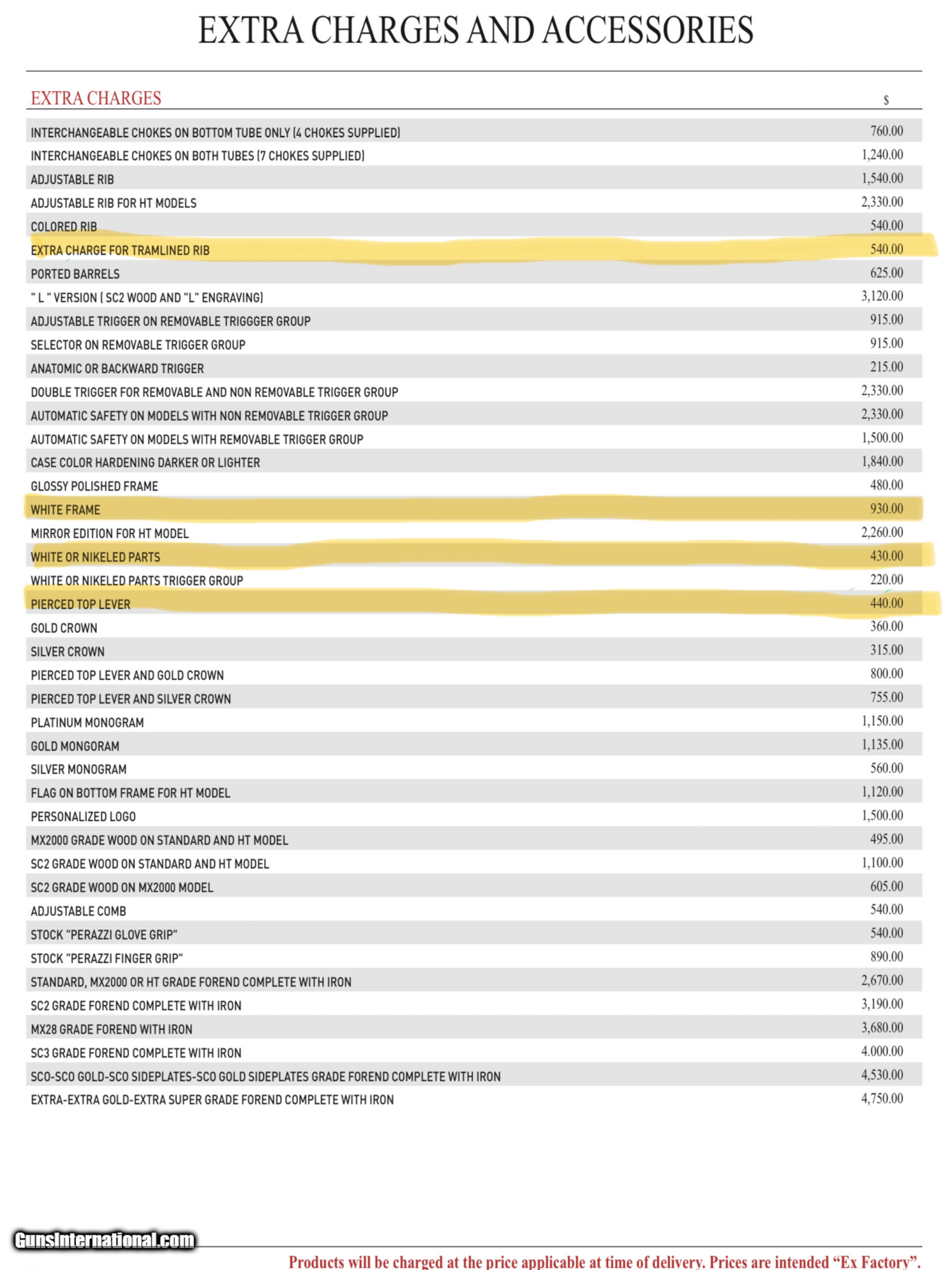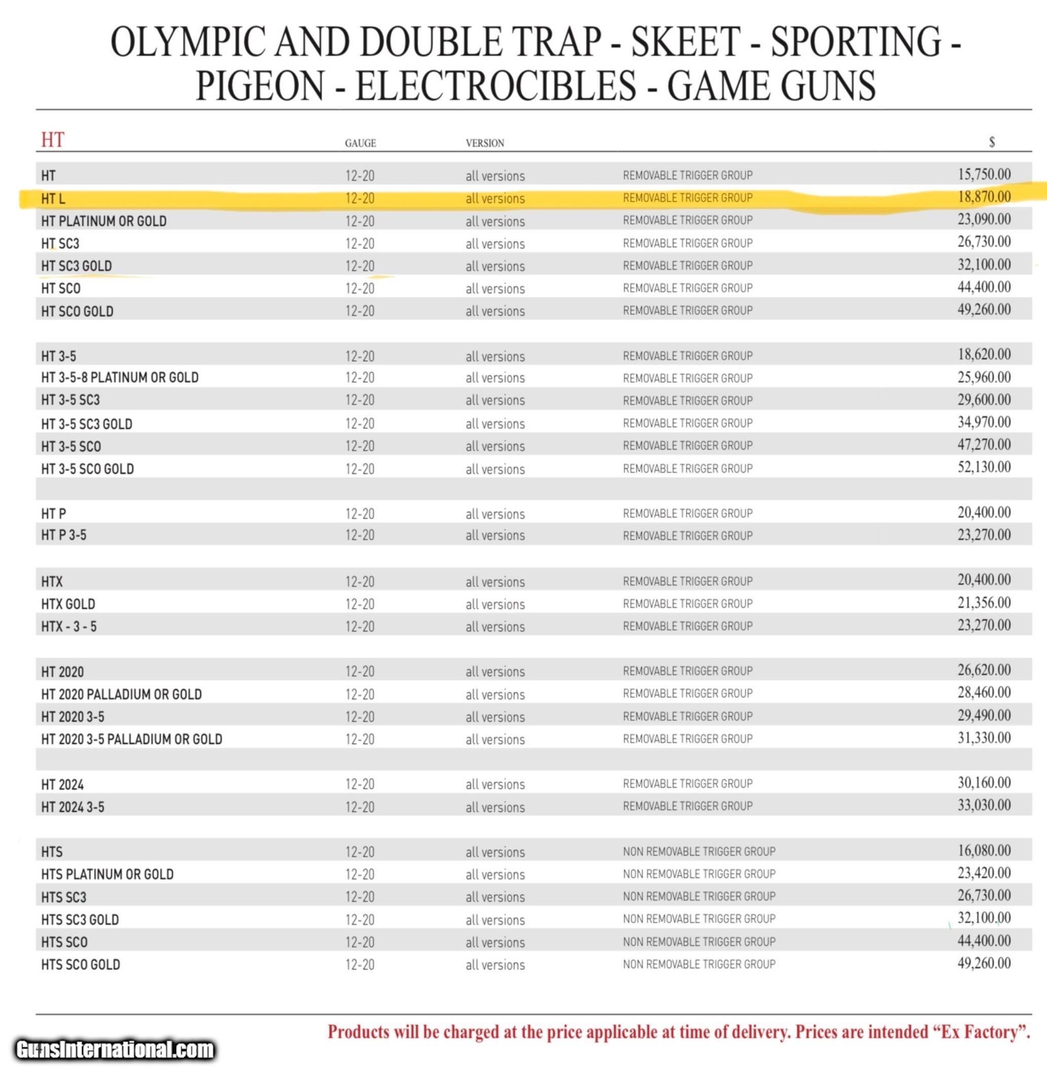 Description: I am selling off some of my nice guns that have been sitting in my safe because I do not have time to shoot them all. This one is my Perazzi High Tech S Lusso Grade Sporting 12ga 34” barrel, Briley flush thin wall removable choke tubes. Factory Lusso engraved. Fixed trigger with selector on top tang. Highly figured SC2 grade wood with adjustable comb LOP 14 3/4" Weight 8lb 7oz. Includes factory case. A gorgeous gun at a great value (Replacement price over $21,000). On top of that there is a supposed 10% price increase coming January 2026.Call or text with any questions 508-561-9949. Add 3% for Credit Card. $125 Shipping. Shotgun Gauge: 12 Gauge Manufacturer: Perazzi Model: High Tech S Barrel Length: 34 Price: $11,995.00 Contact Seller |