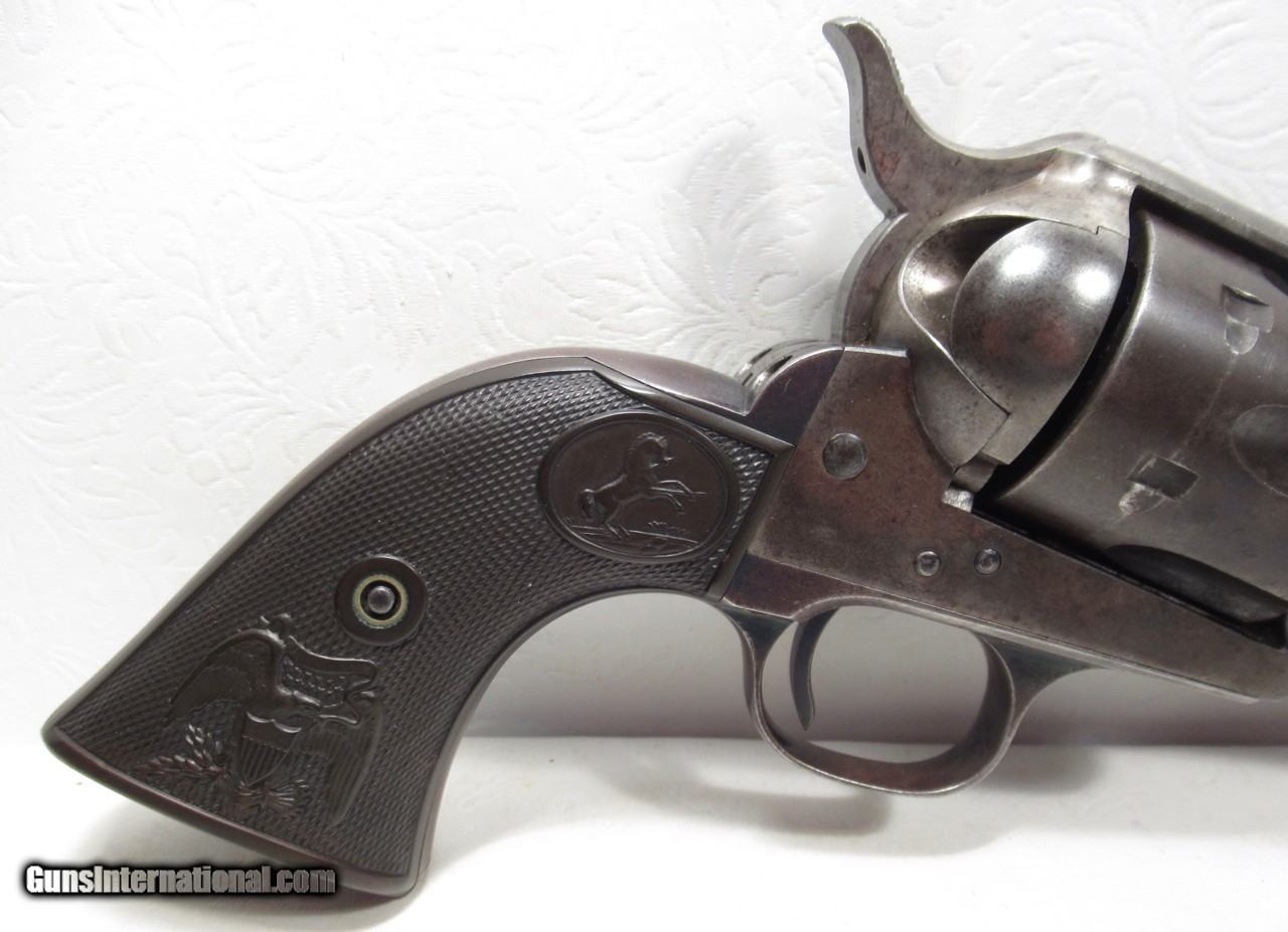 Description: Colt Single Action Army Revolver; Serial No. 123079 (on Backstrap); Many Documents and Factory Letter Included; Shipped to Steves Arms Company of San Antonio, Texas on August 22, 1887; .44/40 Caliber with 4 ¾” Barrel and Blue Finish; Part of a 4 Gun Shipment; “COLT FRONTIER SIX SHOOTER” Etch Panel; Frame and Trigger Guard #123070; Many Research Documents by John Kopec in 1974; Also Ron Graham in 1974; Colt Eagle Hard Rubber Grips; Many Many Documents and Articles in True Tales of American Frontier – Sept. 1976 and True West Magazine in July, 1995 Included; 100% Original Lawman/Outlaw History Colt Revolver; I Personally have No Doubt About This; See All Photos for Condition; No Texts; Call (254)541-5765 or Email Only; PERSONAL PROPERTY of Harold Wieser; Price: $24,975 + $45 S&H Via USPS PRIORITY MAIL; Payment Address: Harold Wieser - 1466 U.S. Hwy 77 - Rosebud, TX 76570; SEND PAYMENTS VIA USPS PRIORITY MAIL; BEWARE of SCAMS!!! – DO NOT SEND MONEY or CORRESPONDENTS ELECTRONICALLY UNLESS YOU HAVE SPOKEN to HAROLD WIESER FIRST! 254-541-5765 SOLD |