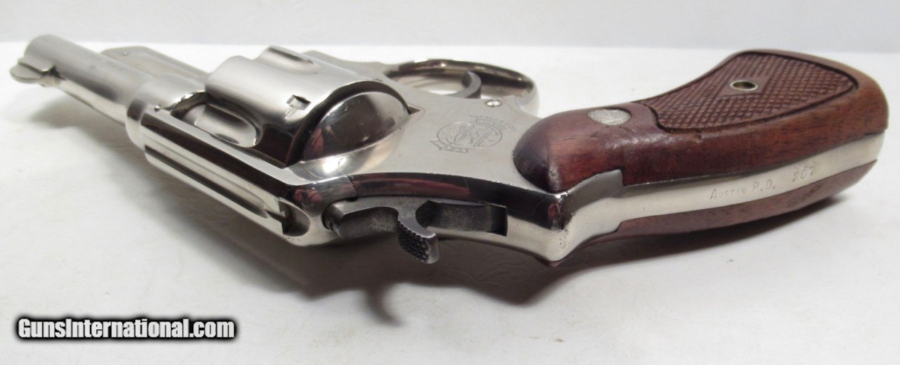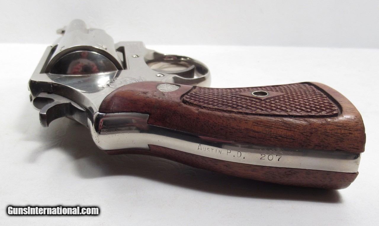 Description: Smith & Wesson Model 20-2 Revolver; Serial No. S255888; Made 1965; Nickel Finish; .38 Special Caliber with 4” Barrel; Backstrap Marked “AUSTIN P.D. 207”; Re-nickeled as All Austin P.D. Revolvers by Smith & Wesson; Grips mismatched as All Austin P.D. Revolvers; Approximately 50 Total Made; Page 220 of Gun Digest Reads “To Rare to Estimate Value”; Rare 57 Year-Old Austin Police Department Issued Smith & Wesson Revolver; See All Photos for Condition; No Texts; Call (254)541-5765 or Email Only; PERSONAL PROPERTY of Harold Wieser; Price: $3,975 + $45 S&H Via USPS PRIORITY MAIL; Payment Address: Harold Wieser - 1466 U.S. Hwy 77 - Rosebud, TX 76570; SEND PAYMENTS VIA USPS PRIORITY MAIL; BEWARE of SCAMS!!! – DO NOT SEND MONEY or CORRESPONDENTS ELECTRONICALLY UNLESS YOU HAVE SPOKEN to HAROLD WIESER FIRST! 254-541-5765 SOLD |