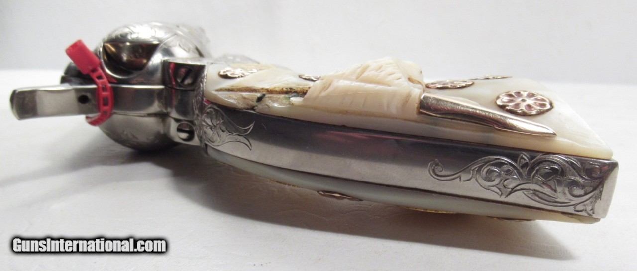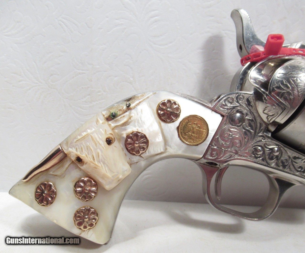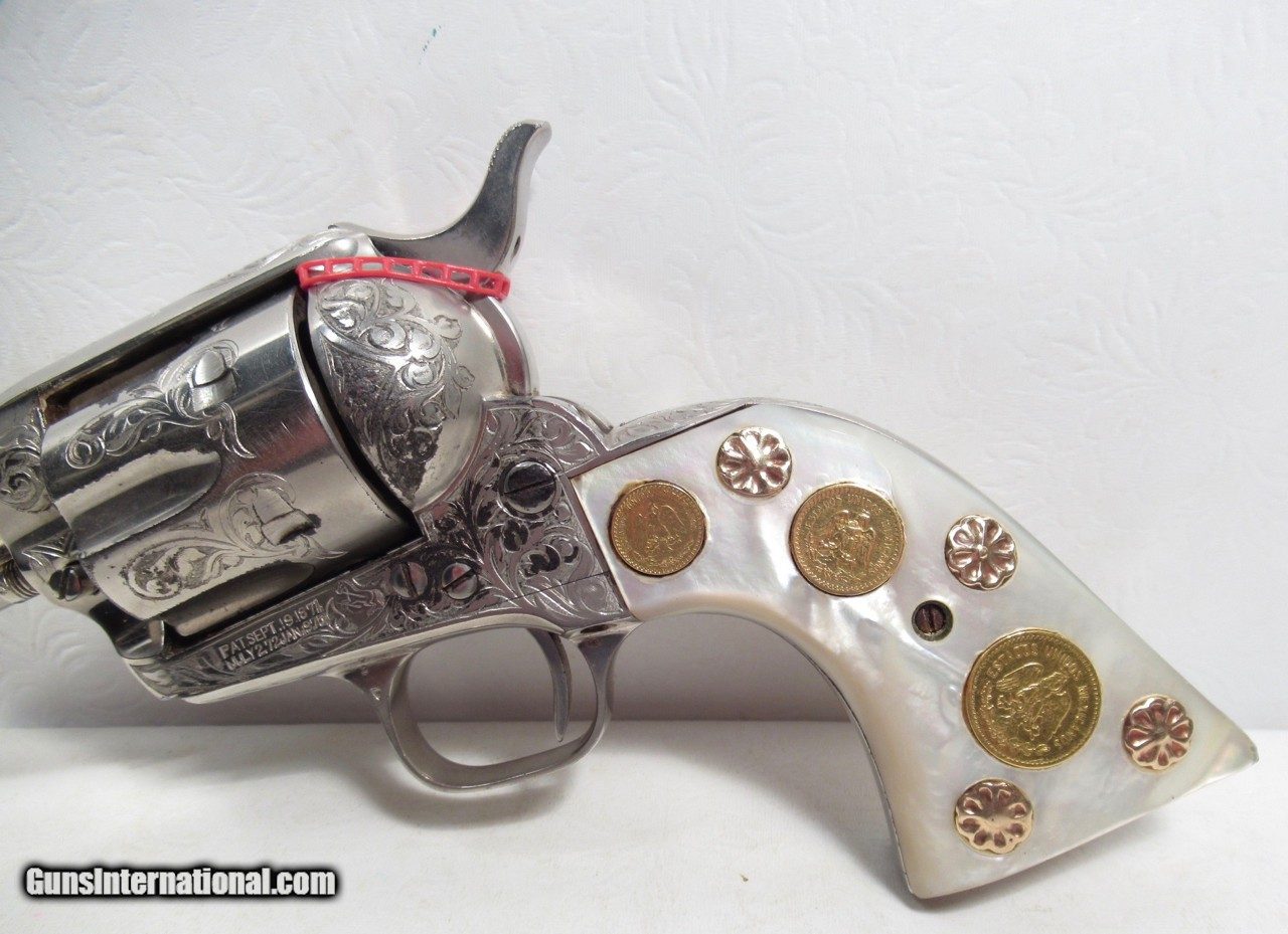 Description: Colt Single Action Army Revolver; Serial No. 346458; .45 Caliber with 5 ½” Barrel; Factory Engraved with Pearl Grips Adorned with Gold; Really Nice Holster Rig Included; Colt was in Texas Ranger Hall of Fame and Museum in Waco, Texas until Joyce Bone Retrieved it; Look at Photos for Condition and Documents for History; Family Still Owns Original Ranch Near Gatesville, Texas (Est. 1856); See All Photos for Condition; No Texts; Call (254)541-5765 or Email Only; PERSONAL PROPERTY of Harold Wieser; Price: Upon Request; Payment Address: Harold Wieser - 1466 U.S. Hwy 77 - Rosebud, TX 76570; SEND PAYMENTS VIA USPS PRIORITY MAIL; BEWARE of SCAMS!!! – DO NOT SEND MONEY or CORRESPONDENTS ELECTRONICALLY UNLESS YOU HAVE SPOKEN to HAROLD WIESER FIRST! 254-541-5765 SOLD |