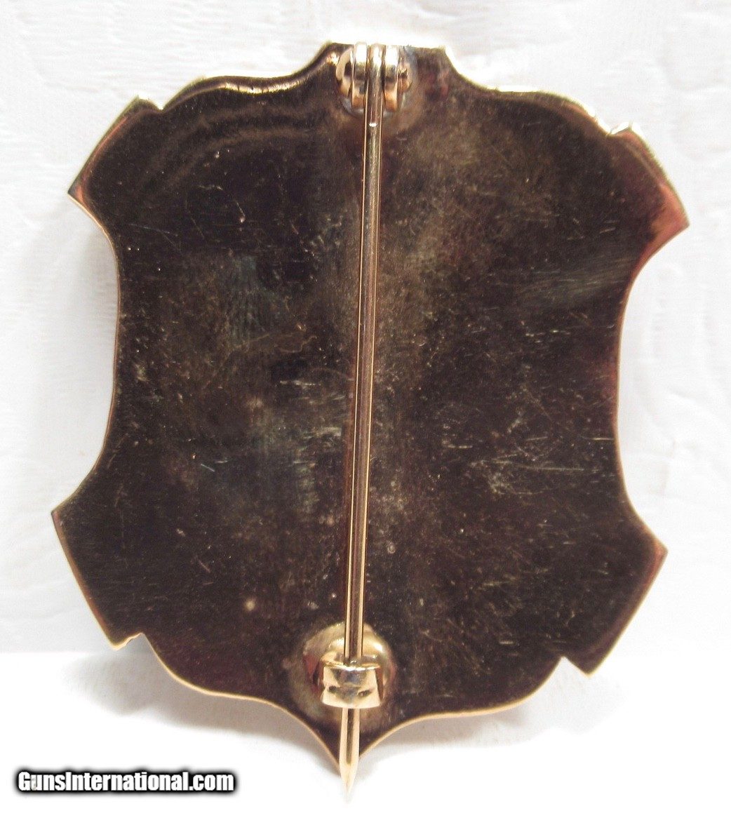 Description: Gold Plated Deputy U.S. Marshall – Southern District of Texas Shield Badge; Measures 2 ¼” Tall and 2” Wide; Believed to Have Belonged to U.S. Marshall – Southern District of Texas Basil S. Baker; from the Mike Heskett Collection; See All Photos for Condition; No Texts; Call (254)541-5765 or Email Only; PERSONAL PROPERTY of Harold Wieser; Price: $2,475 + $45 S&H Via USPS PRIORITY MAIL; Payment Address: Harold Wieser - 1466 U.S. Hwy 77 - Rosebud, TX 76570; SEND PAYMENTS VIA USPS PRIORITY MAIL; BEWARE of SCAMS!!! – DO NOT SEND MONEY or CORRESPONDENTS ELECTRONICALLY UNLESS YOU HAVE SPOKEN to HAROLD WIESER FIRST! 254-541-5765 SOLD |