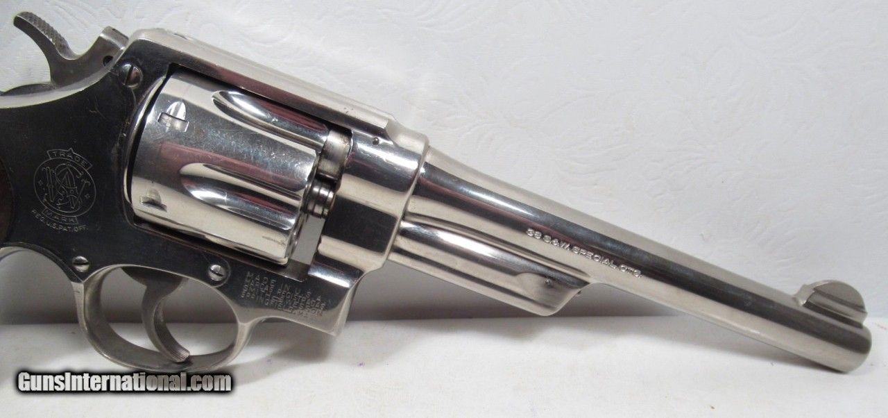 Description: Smith & Wesson 38/44 Revolver; Serial No. S 89644; Made About 1952; 6 ½” Barrel; This Revolver is Illustrated by Serial Number on Page 8 of SWCA Journal – Summer 2011 Issue; Very Few 38/44 H.D. Austin Police Department Revolvers were Returned to Factory Refinished and 6 ½” Barrel Installed; Barrel Numbered to Gun; Perfect Action and Bore; Mismatched Grips; Very Rare Austin PD Issued Revolver; Rare 78 Year-Old S&W 38/44; See All Photos for Condition; No Texts; Call (254)541-5765 or Email Only; PERSONAL PROPERTY of Harold Wieser; Price: $1,875 + $45 S&H Via USPS PRIORITY MAIL; Payment Address: Harold Wieser - 1466 U.S. Hwy 77 - Rosebud, TX 76570; SEND PAYMENTS VIA USPS PRIORITY MAIL; BEWARE of SCAMS!!! – DO NOT SEND MONEY or CORRESPONDENTS ELECTRONICALLY UNLESS YOU HAVE SPOKEN to HAROLD WIESER FIRST! 254-541-5765 SOLD |