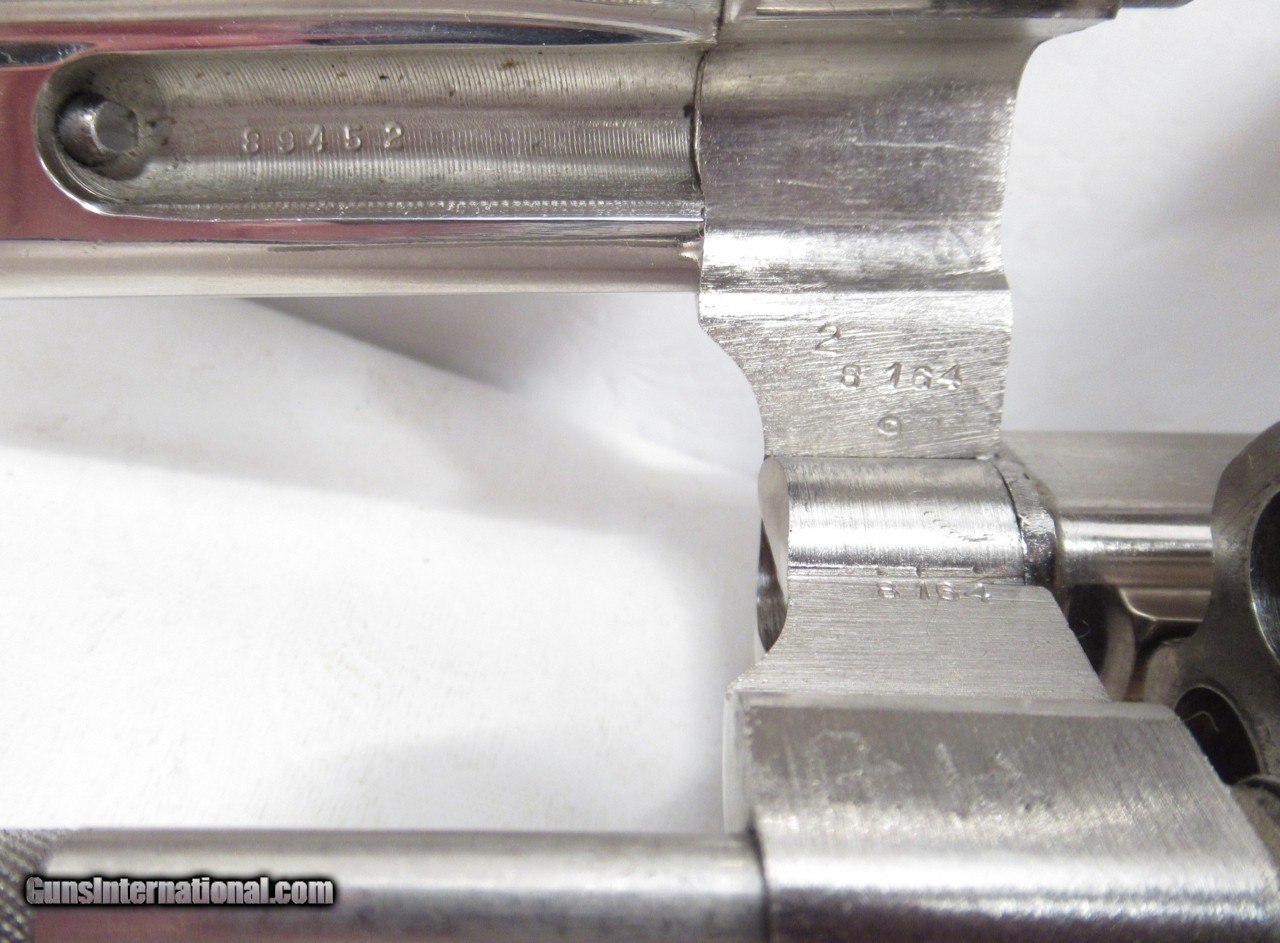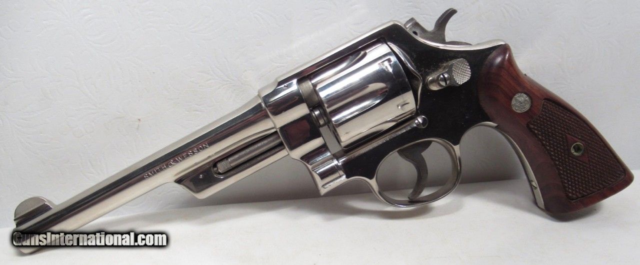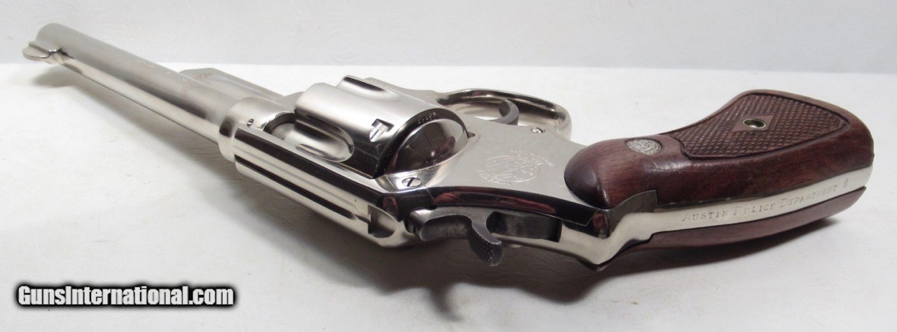 Description: Smith & Wesson 38/44 Revolver; Serial No. S 89452; .38 Special Caliber; Nickel Finish; 6 ½” Barrel; This was Originally Factory Nickel with 4” Barrel; Refinished by Smith & Wesson and Re-barreled by Smith & Wesson; All of these Austin P.D. 38/44’s were refinished and Very Few were Converted to 6 ½” Barrels; All Numbers Match Including Barrel but grips mismatched on All 38/44 Austin P.D. Revolvers; Backstrap Marked “AUSTIN POLICE DEPARTMENT 6”; See Photos of Writeups in Smith & Wesson Collectors Association Journal Volume 45, Number 2 – Summer 2011; See All Photos for Condition; No Texts; Call (254)541-5765 or Email Only; PERSONAL PROPERTY of Harold Wieser; Price: $2,975 + $45 S&H Via USPS PRIORITY MAIL; Payment Address: Harold Wieser - 1466 U.S. Hwy 77 - Rosebud, TX 76570; SEND PAYMENTS VIA USPS PRIORITY MAIL; BEWARE of SCAMS!!! – DO NOT SEND MONEY or CORRESPONDENTS ELECTRONICALLY UNLESS YOU HAVE SPOKEN to HAROLD WIESER FIRST! 254-541-5765 SOLD |