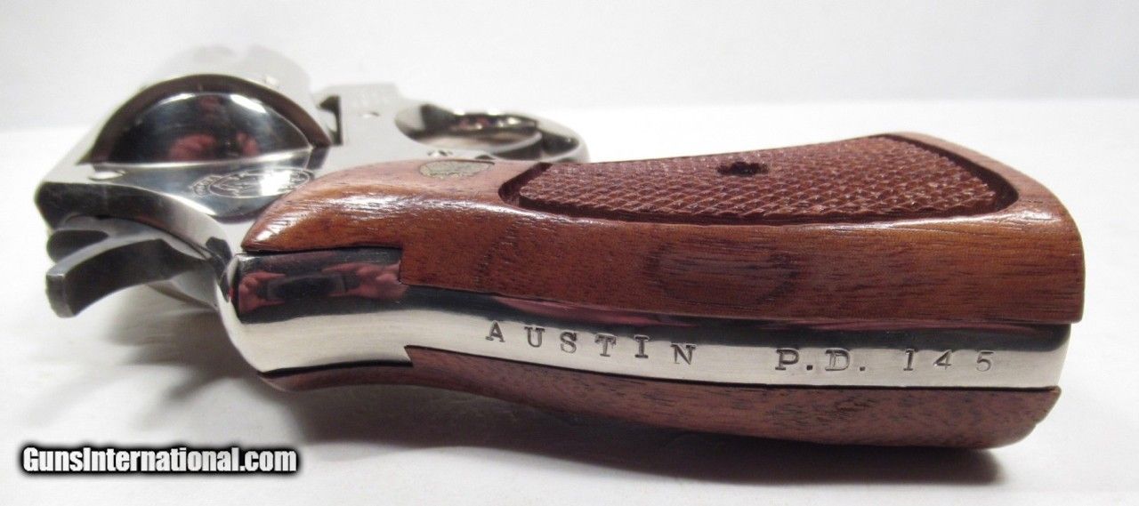 Description: Smith & Wesson 38/44 Heavy Duty Revolver; Serial No. S147961; Per Included Factory Letter: .38 Special Caliber with 4” Barrel and Shipped to Walter Tips Co. of Austin, Texas in 1956 and Refinished in 1966; Nearly All Large Frame Austin PD S&W’s were Refinished by Smith & Wesson and Grips Mismatched; Backstrap Marked “Austin PD 145”; Perfect Action and Bore; Formerly in the Collection of Noted S&W Collector Dr. Robert A. Bettis; Very Scarce and Fully Documented 66 Year-Old S&W Revolver; See All Photos for Condition; No Texts; Call (254)541-5765 or Email Only; PERSONAL PROPERTY of Harold Wieser; Price: $2,975 + $45 S&H Via USPS PRIORITY MAIL; Payment Address: Harold Wieser - 1466 U.S. Hwy 77 - Rosebud, TX 76570; SEND PAYMENTS VIA USPS PRIORITY MAIL; BEWARE of SCAMS!!! – DO NOT SEND MONEY or CORRESPONDENTS ELECTRONICALLY UNLESS YOU HAVE SPOKEN to HAROLD WIESER FIRST! 254-541-5765 SOLD |
