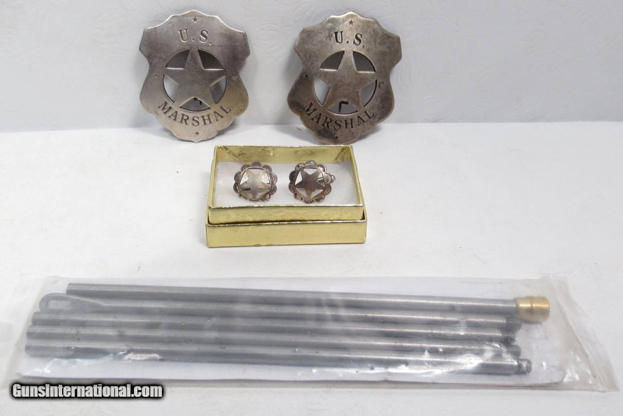 STERLING CUFFLINKS, 2 REPO U.S. MARSHAL BADGES, and 5 PIECE REPO WINCHESTER CLEANING RODS from COLLECTING TEXAS