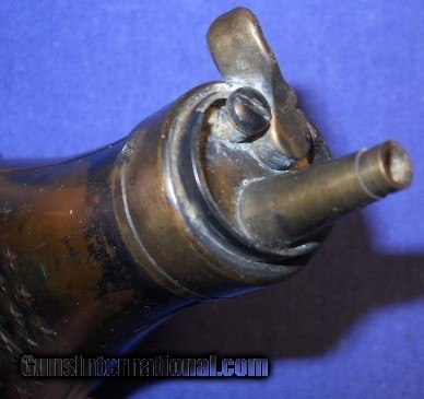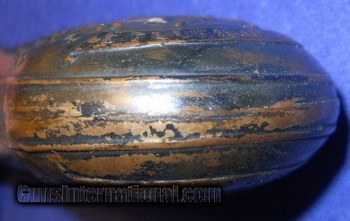 Description: SCARCE "E.PLURIBUS UNUM" FLASK # 756 IN RAY RILINGS FLASK BOOK. OFTEN SEEN WITH CASED REMINGTON NEW MODEL POCKET PISTOLS, BEALS & OTHER REVOLVERS AND PISTOLS OF THE ERA. 4 1/2" OVERALL. DESIGN REPEATS ON BOTH SIDES. FINE CONDITION WITH TIGHT SEAMS, NO DENTS, UNCLEANED SURFACES, EXCELLENT WORKING ORDER, AS PICTURED. SEE OTHERS AND ALL "ESTATE ANTIQUES" LISTINGS FOR MORE ITEMS AT SENSIBLE PRICES FROM OLD COLLECTIONS & ESTATES. $10.00 S&H U.S. BUYERS. INTERNATIONAL S&H COSTS MORE. COMBINE PURCHASES & SAVE $$ SOLD |