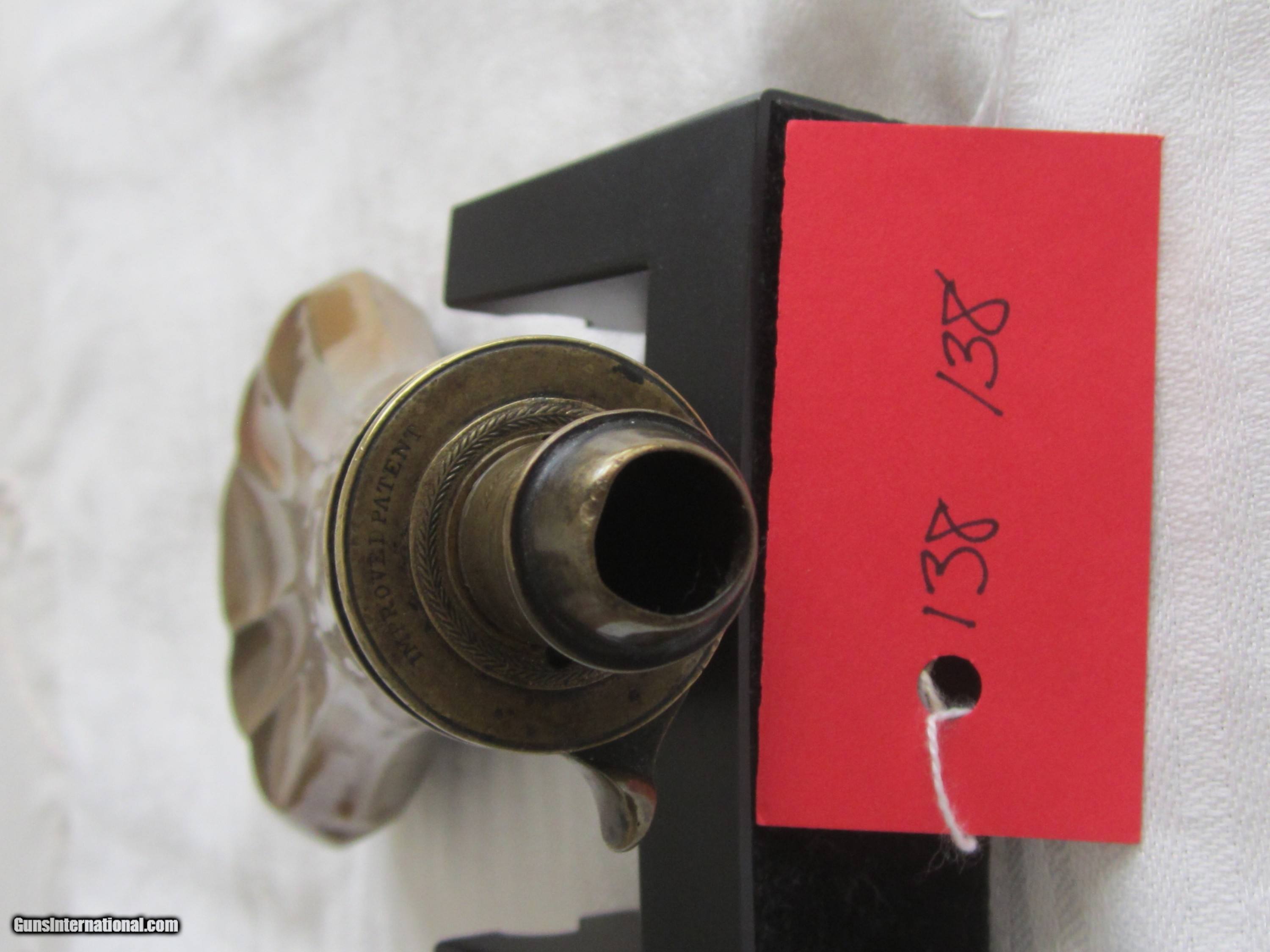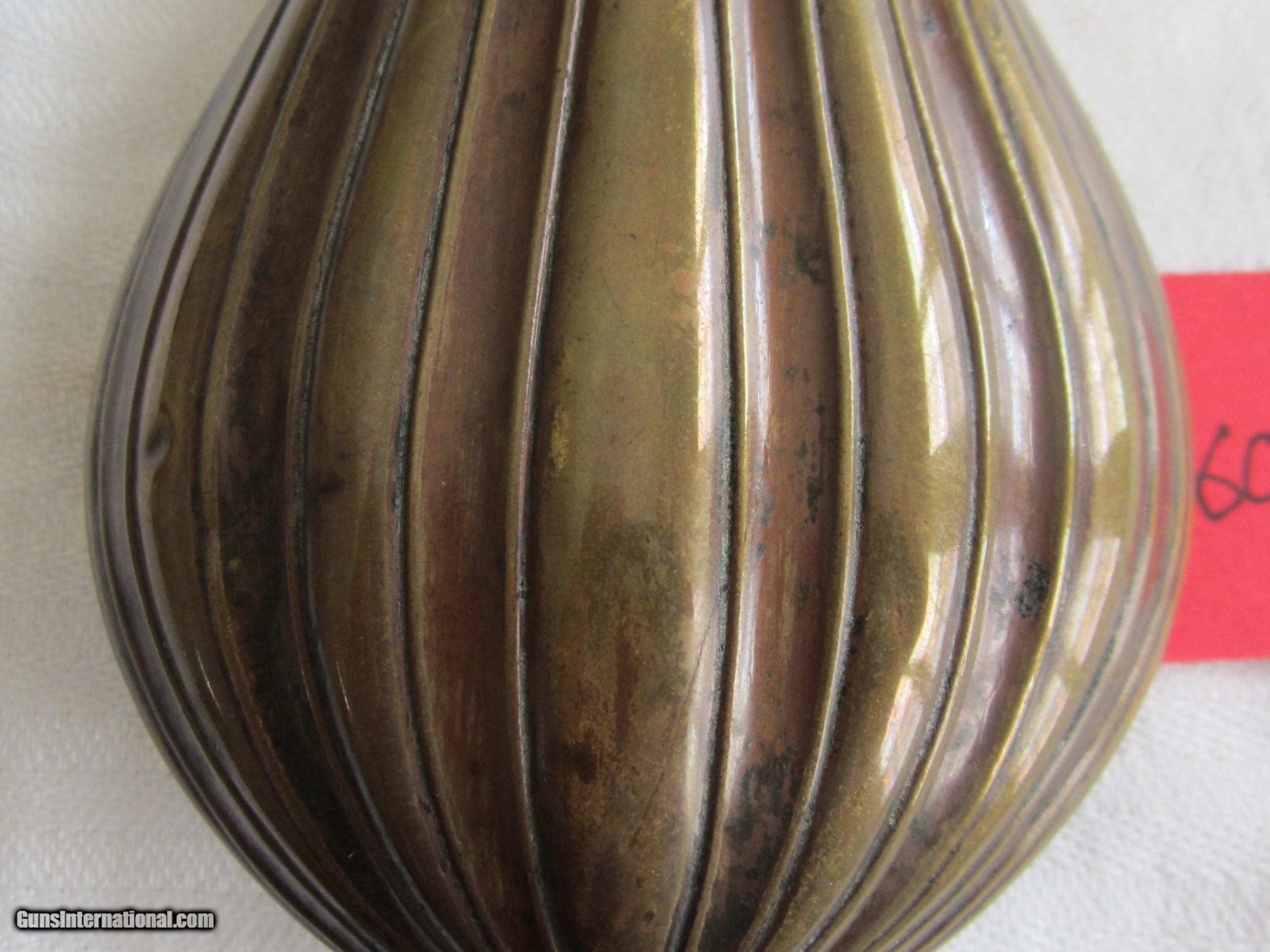 Description: # 60 $225--. MAKER - AM. FLASK & CAP CO. . DESIGN - FLUTED . SIZE - 8 X 3 1/4", RILING FLASK BOOK REFERENCE - # 276 page 283, CONDITION- Excellent, MADE OF- Copper, SHAPE- Bag type, 2 rings. Really Nice. # 77 $225-- . MAKER - G & JW HAWKSLEY Sheffield,. DESIGN- Fluted. SIZE- 8 X 3 1/4",RILING FLASK BOOK REFERENCE- # 277 page 283, CONDITION - Excellent. MADE OF - Copper, Brass top. SHAPE - Modified bag type- , DESIGN - a Fluted variation. SIZE -8 X 3 1/2". RILING FLASK BOOK REFERENCE - # 259 page 282. CONDITION- Excellent, spring works manually, so it should be replaced. MADE OF- Copper , a very heavy guage. SHAPE -Modified bag with 4 rings. # 138 $ 300- MAKER - JAMES BARLOW & CO. of Birmingham, England. DESIGN -Fluted. SIZE- 88 X 3 1/2". RILING FLASK BOOK REFERENCE- N259 page 282. CONDITION -Excellent, Might need new spring. It opens and closes manually...MADE OF- Copper-heavy guage. SHAPE - Similar to Riling N 1345 page 418. NOTE: Barlow is not a common maker which makes this fkask very collectable. A RARE FLASK. This is the only one from this maker I have seen in 40 years of collecting. ALL REASONABLE OFFERS CONSIDERED Flasks are sold separately. Add $15-- to each price for shipping cost. Seams are fine and springs work unless otherwise stated. See photos for condition as to dents, etc. NO INTEREST PAYMENT PLAN AVAILABLE - flexible payments UNIQUE BIRTHDAY----XMAS GIFTS & good investments CLICK ON PHOTO TO ENLARGE SEE 100 more flasks under "ROMSEY" SOLD |