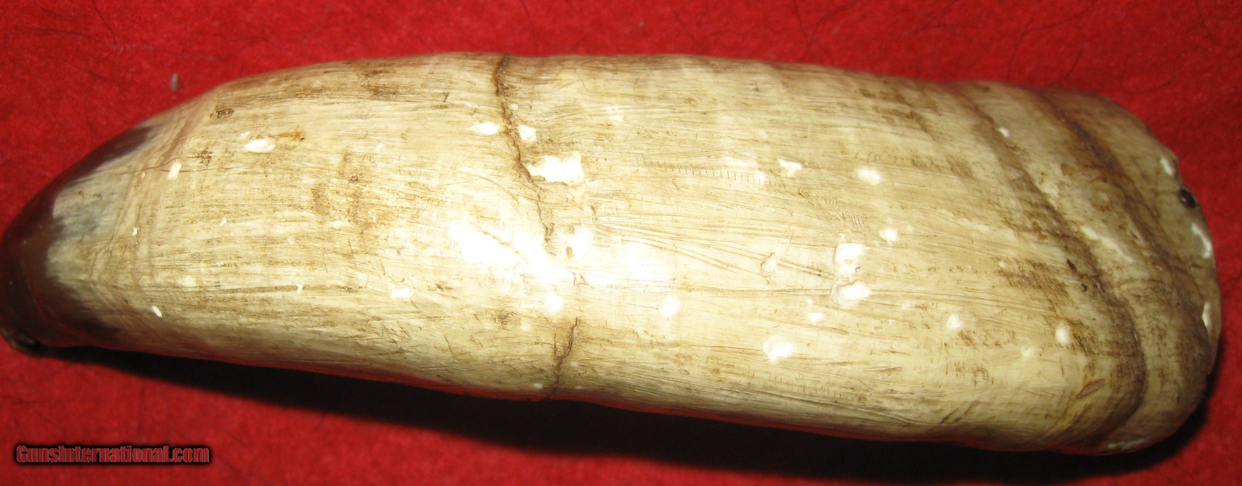 Description: THIS ANTIQUE POWDER HORN IS 7" LONG AND 1 1/2 TO 2" ACROSS AT THE BIG END. IT COMES WITH THE SPOUT PLUG. IT HAS CHIPS ON THE BODY AND EDGE OF THE LARGE END CAP FROM AGE AND USE ( SEE PICTURES). A NICE OF EXAMPLE OF 1750'S TO 1850'S STYLE POWDER HORN. FREE SHIPPING USPS PRIORITY MAIL DIRECT SOLD |