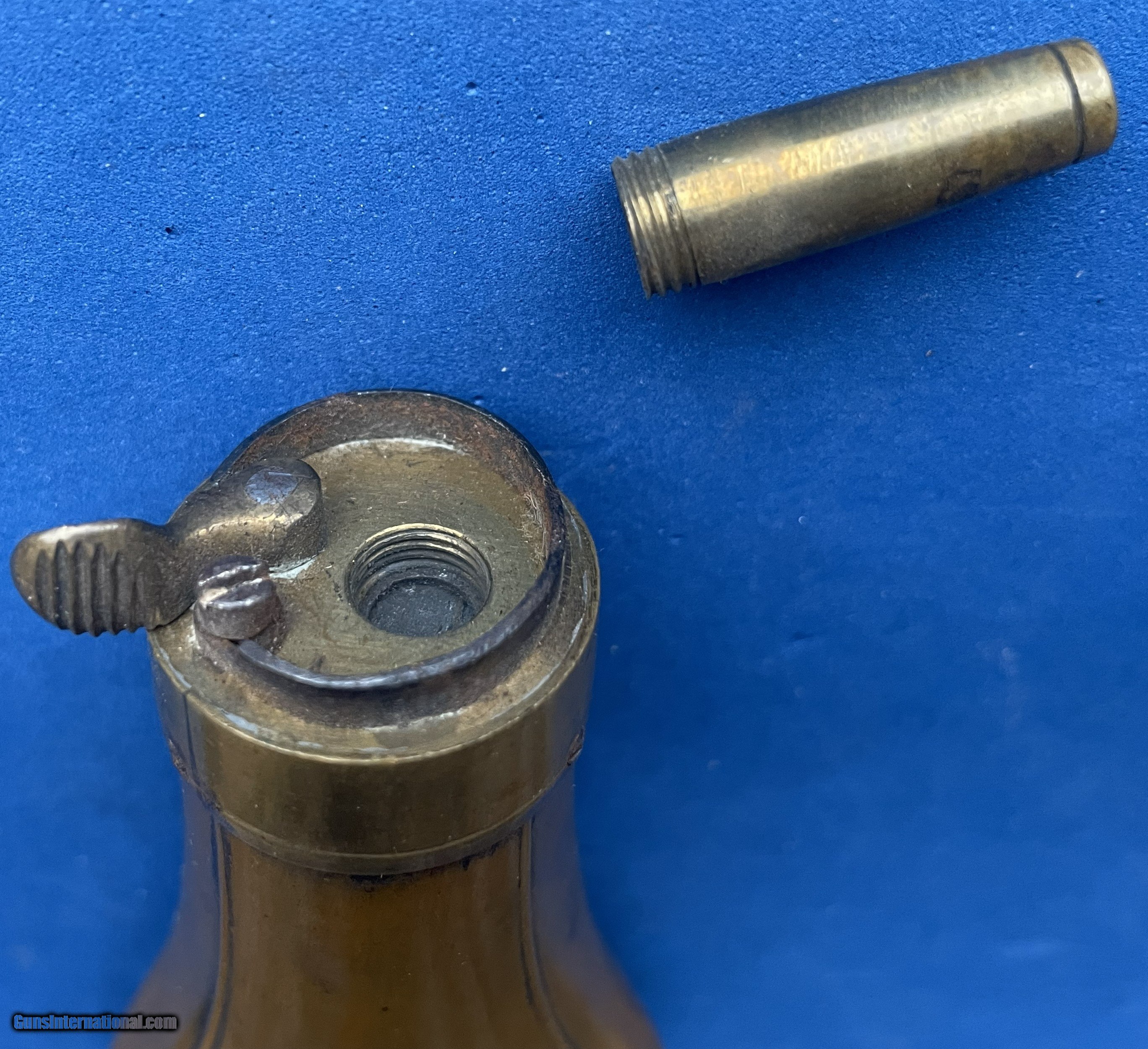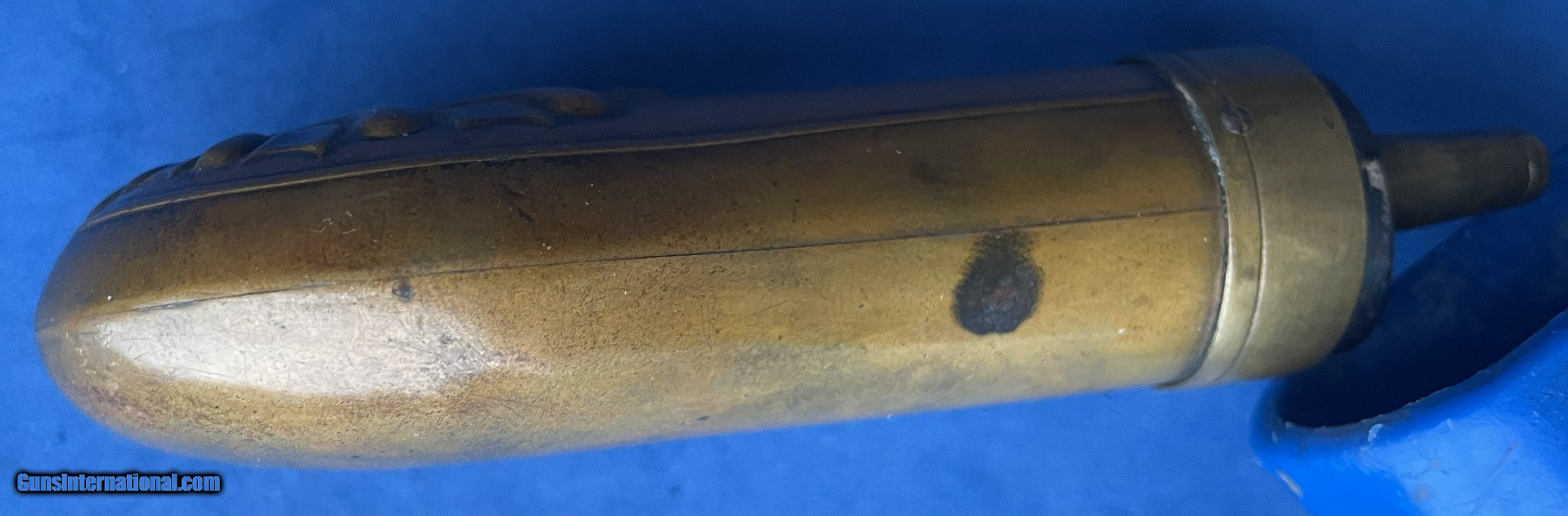 Antique CIVIL WAR ERA SINGLE SHELL POCKET CASED PISTOL POWDER FLASK