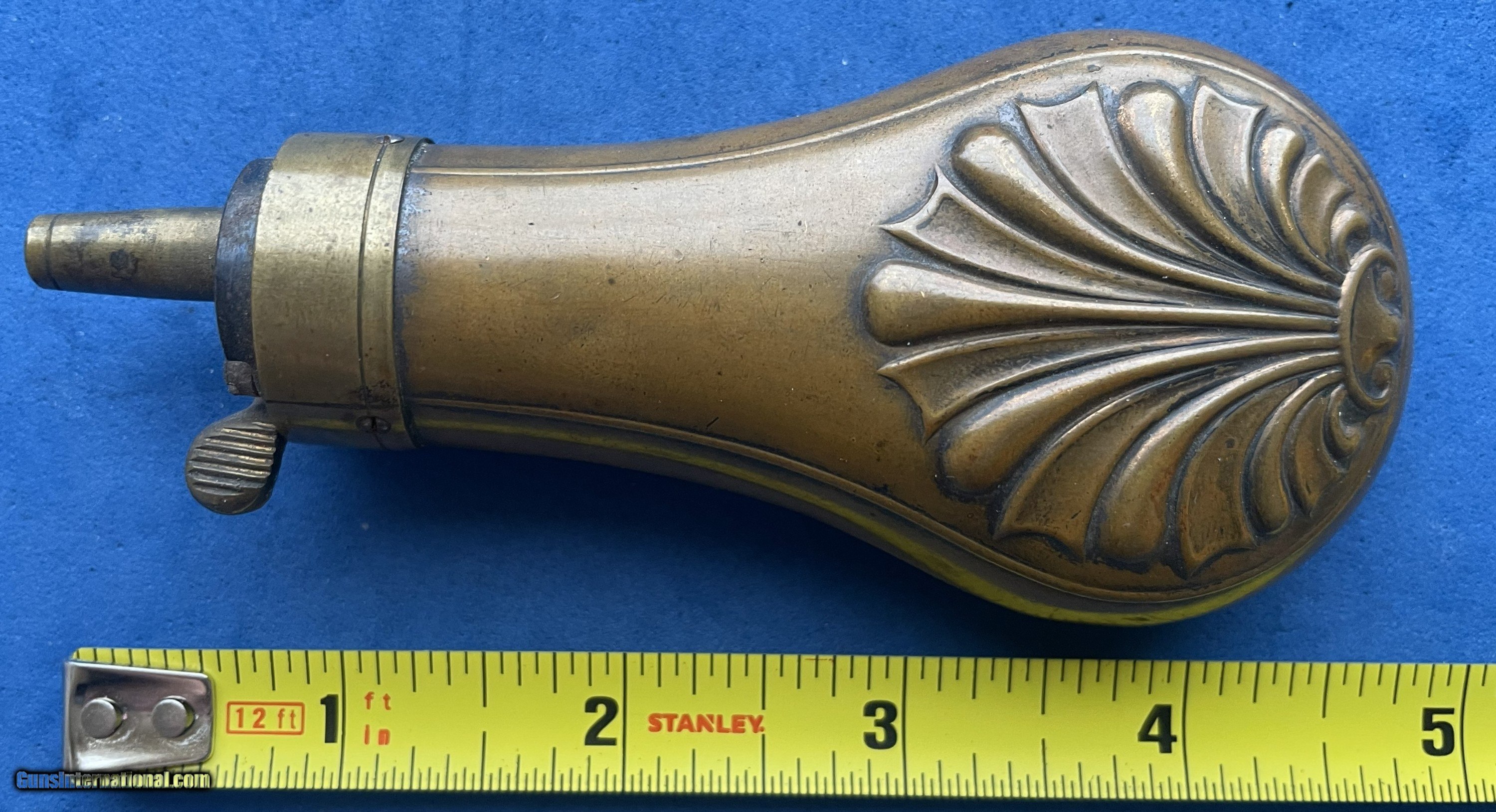 Description: NICE UNMARKED ORIGINAL ANTIQUE CIVIL WAR ERA SINGLE SHELL DESIGN POCKET or CASED PISTOL POWDER FLASK. TIGHT SEAMS, GOOD PATINA, WORKS PROPERLY, AS PICTURED. SEE MY OTHER LISTINGS FOR MORE AND COMBINE SHIPPING. $12.00 S&H Price: $150.00 Buy Now Contact Seller |