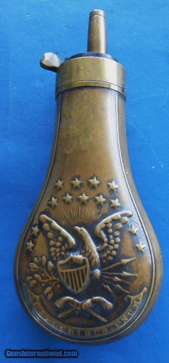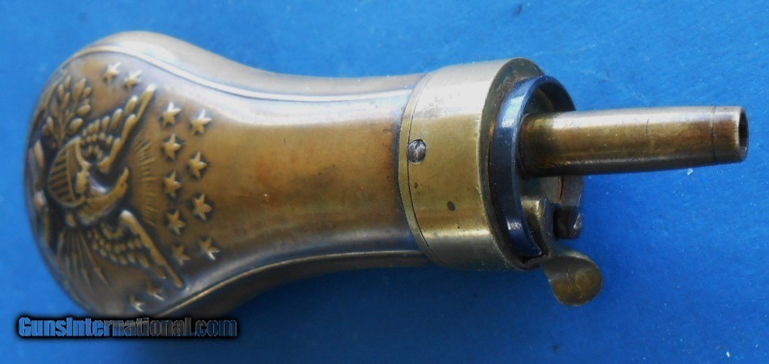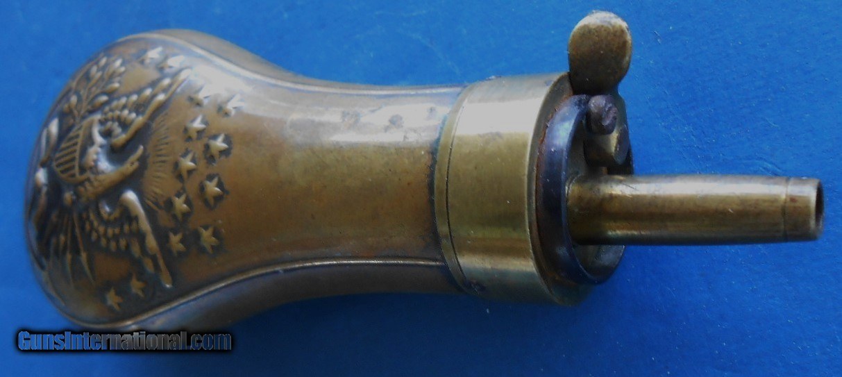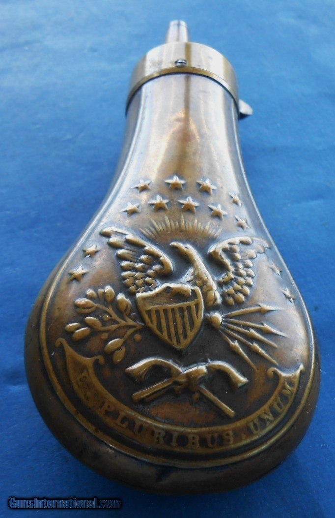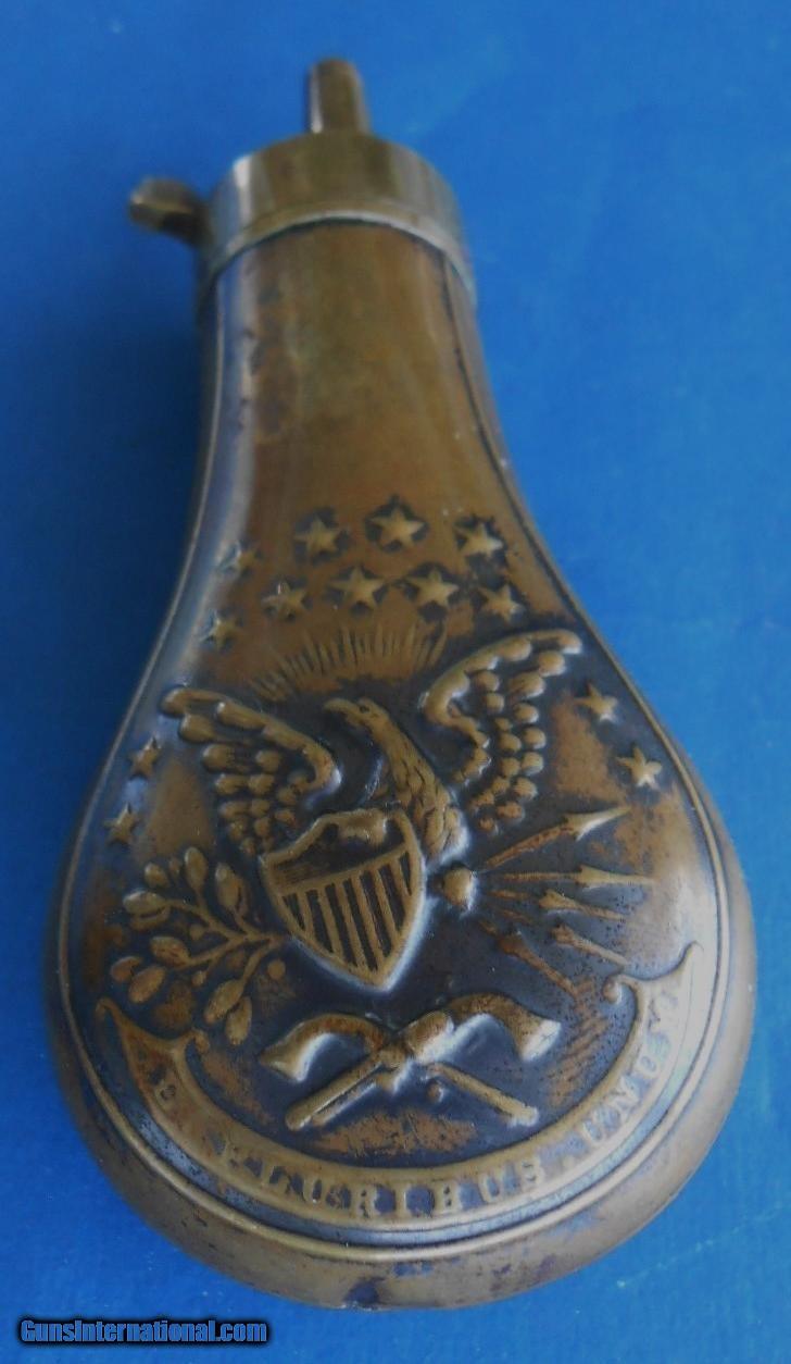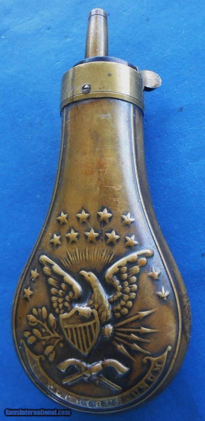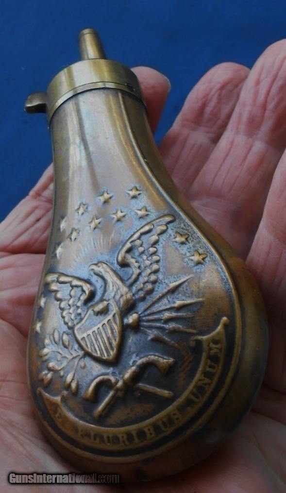 Antique ORIGINAL CIVIL WAR ERA DOUBLE EAGLE POWDER FLASK FOR CASED COLT & OTHERS