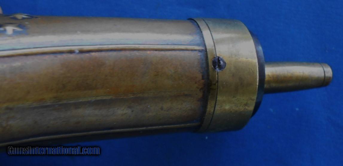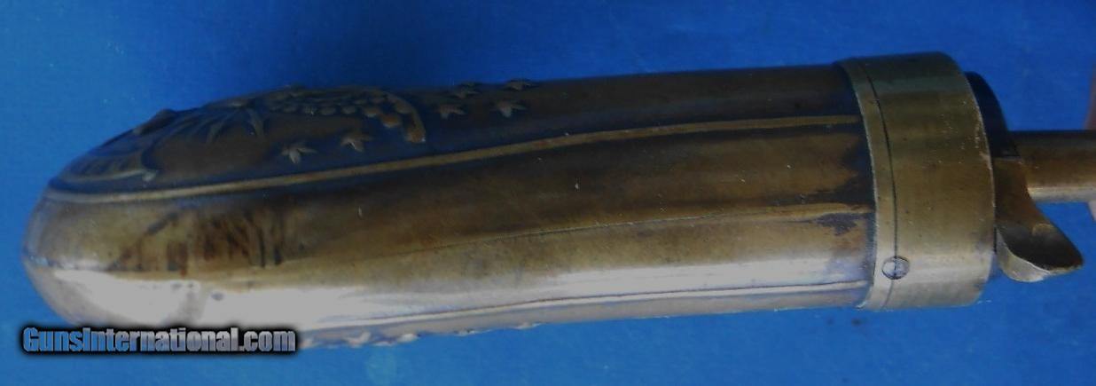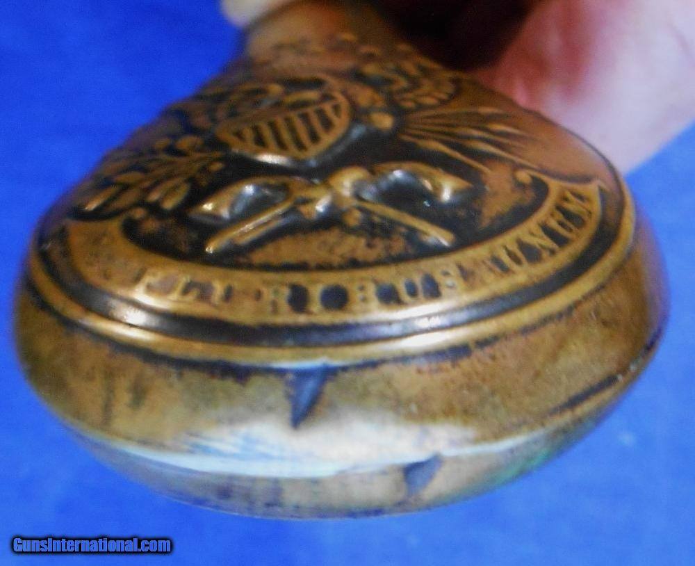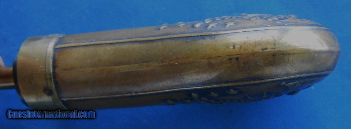 Description: ORIGINAL PERIOD FLASK (NOT A REPRODUCTION) TYPE USED IN CASED PERCUSSION REVOLVERS EXCELLENT PATINA AND CONDITION, TIGHT SEAMS, LOTS OF FIRE BLUE ON SPRING & SCREWS. MINOR SCRATCHES AND COUPLE OF OLD SMALL DENTS ON BOTTOM, SEE LAST 2 PICS. NICE FLASK AT A SENSIBLE PRICE, AS PICTURED & FOUND IN ESTATE COLLECTION. $12.00 PRIORITY MAIL. C, CARD ADD 4% QUESTIONS JUST ASK. SOLD |