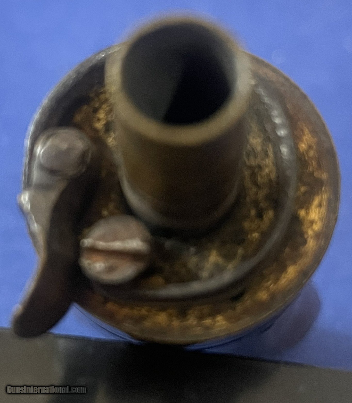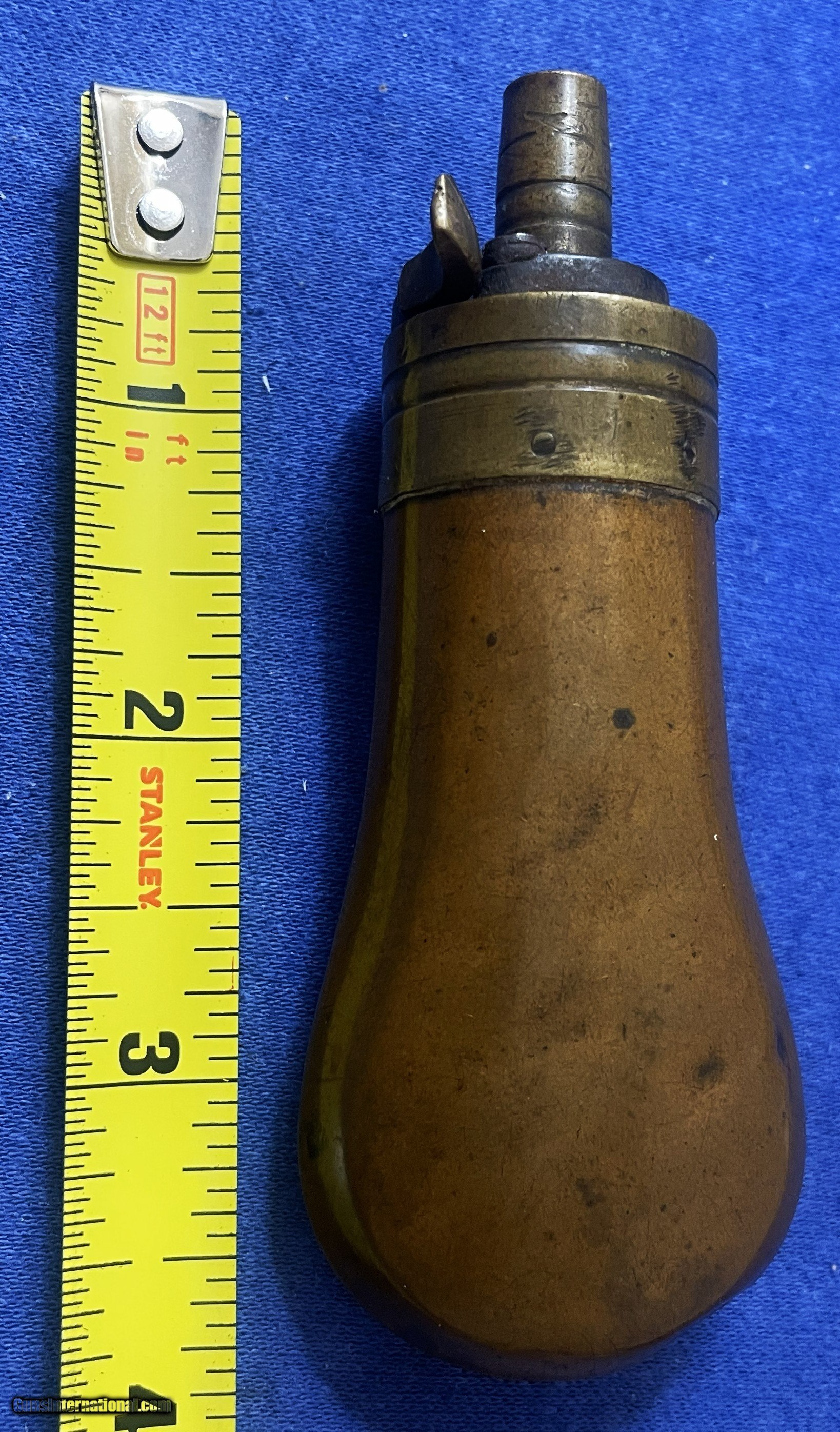 Description: SCARCE TINY 3 3/4" UNMARKED COPPER & BRASS FLASK, AS PICTURED & RECENTLY FOUND IN AN OLD COLLECTION. VERY GOOD CONDITION OVERALL, TIGHT SEAMS, WORKS PROPERLY, SHOWS SOME USE WITH MINOR IMPRESSIONS. $15.00 S&H SEE OTHERS FROM COLLECTION AND COMBINE SHIPPING. Price: $175.00 Buy Now Contact Seller |