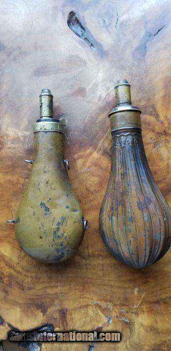 Description: 2 powder flasks, 1 plain , 1 fancy. Both in good shapes. powder lever works fine. I know nothing about powder flasks. $ 35 for the plain, $45 for the Fanci one. OBO. $9 shipping. SOLD |