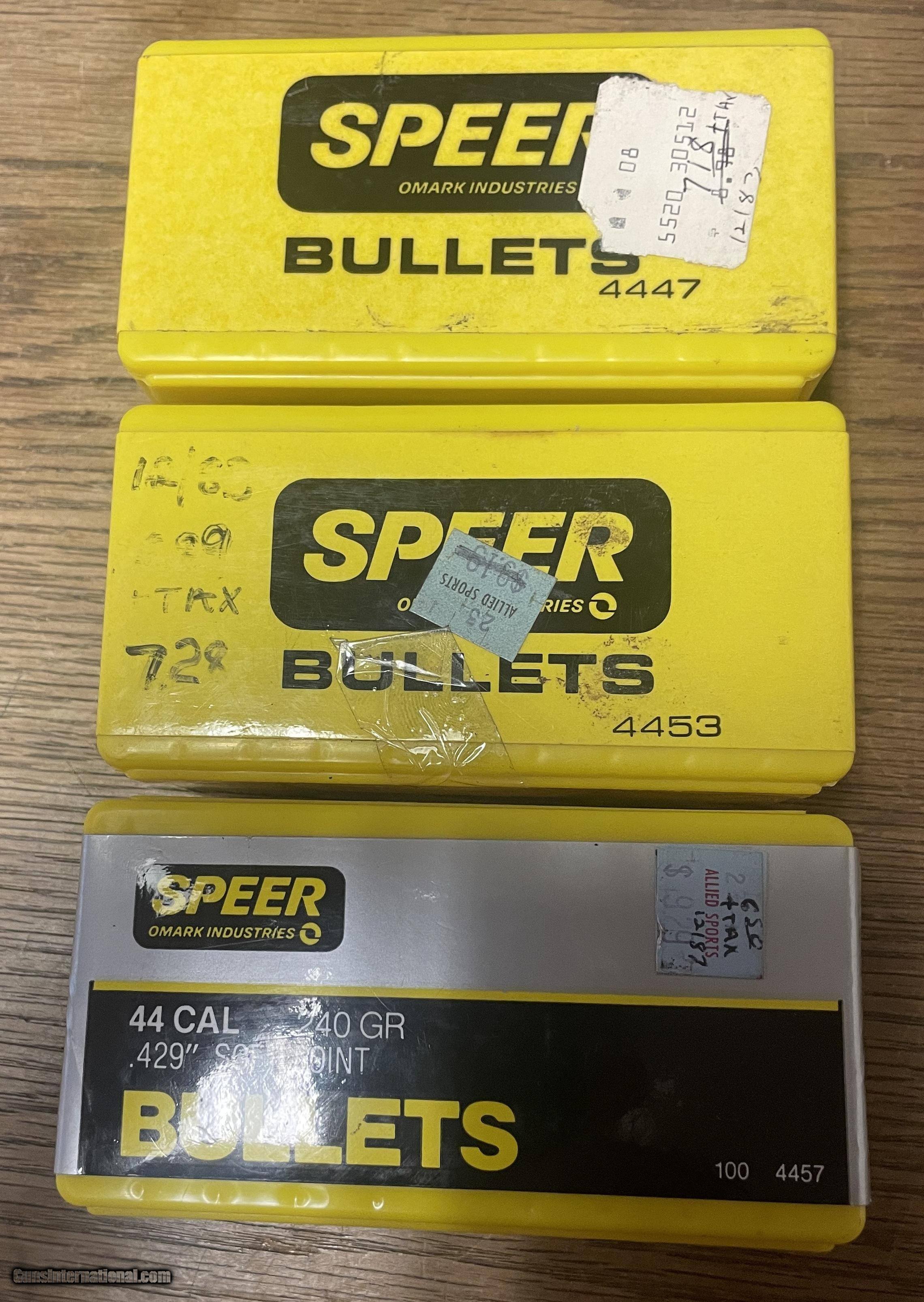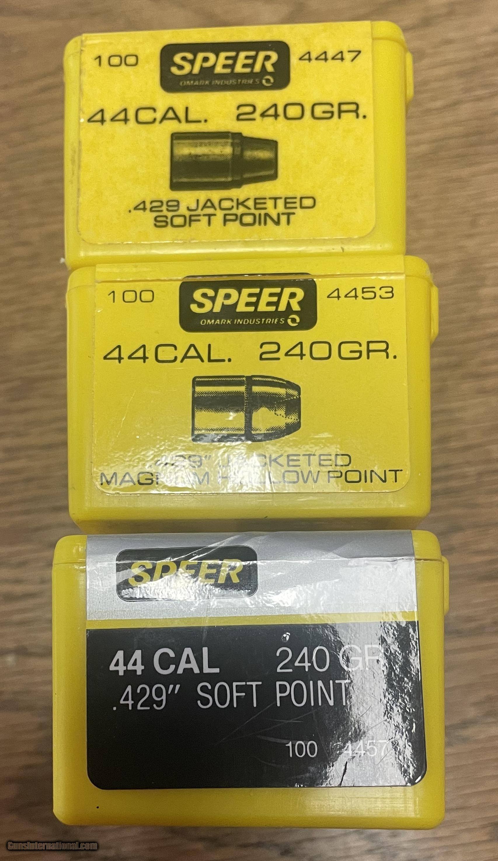 3 boxes of Speer 44 Caliber 240 grain bullets 1 of the boxes is partial total count is 220