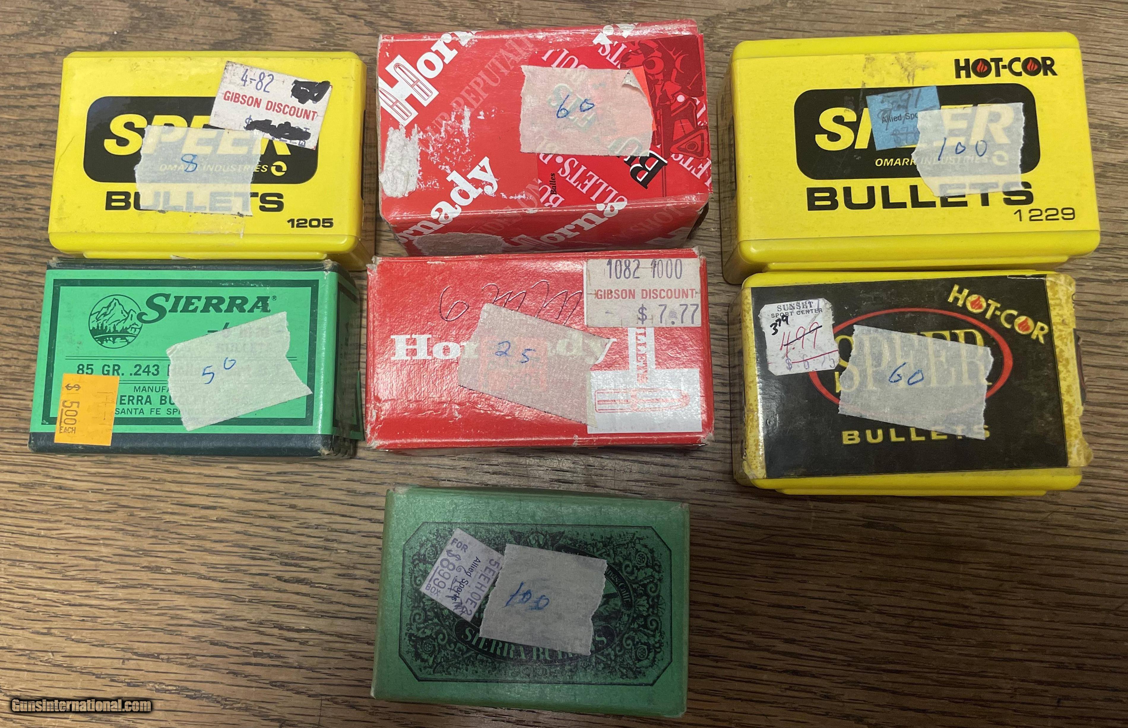 Description: 1 unopened box of 100 Speer 6 MM 105 grain bullets. 1 full box of 100 Sierra 6 MM 100 grain bullets. ! partial box of 50 Sierra 6 MM 85 grain bullets. 1 partial box of 60 Hornady 6 MM 100 grain bullets. 1 partial box of 60 Speer 6 MM 105 grain bullets. 1 partial box of 25 Hornady 6 MM 100 grain bullets. 1 partial box of 8 Speer 6MM 75 grain bullets. Price: $30.00 Buy Now Contact Seller |