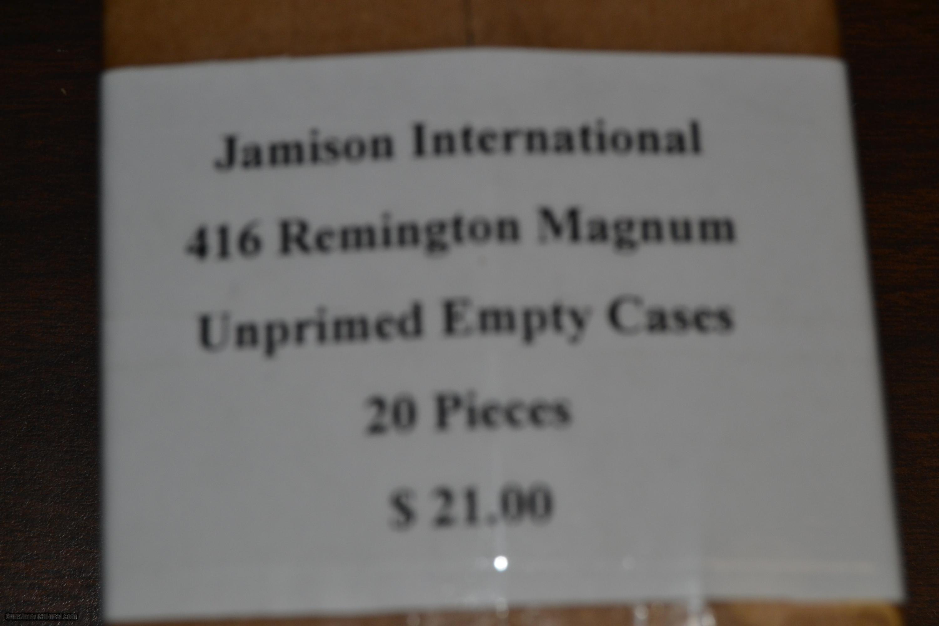 Description: JAMISON 416 REMINGTON BRASS NEW UNPRIMED ONE BOX 20 PCS I DO COMBINE ITEMS TO SAVE ON SHIPPING THERE ARE THREE DIFFERENT SIZED FLAT RATE BOXES SMALL RATE BOCX WILL HOLD ABOUT 75 TO 100 PIECES OF BRASS.(DEPENDS ON CALIBER) $8.00 SMALL FLAT BOX 11 X 5 X 2 MEDIUM RATE BOX SIZE 12 X8 X6 HOLDS 15 LBS LARGE RATE BOX SIZE 12 X 10 X5 HOLDS 15 LBS SOLD |