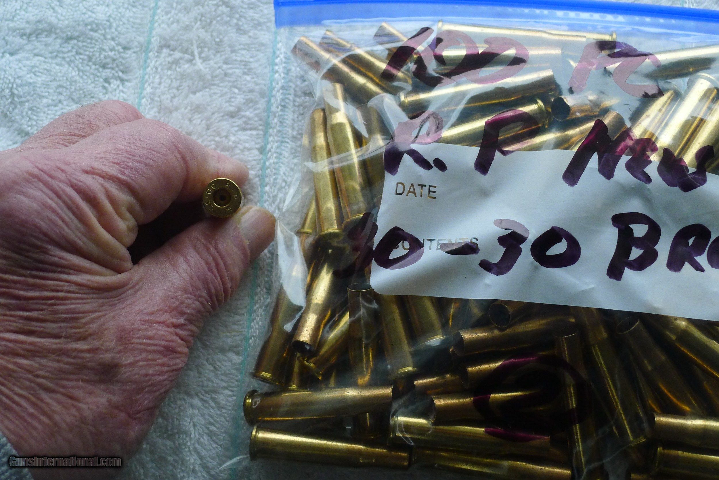 Description: SOLD DONALD KOONS 1LOT NUMBER 2 100 PIECES OF REMINGTON-PETERS 30-30 BRASS BRASS WAS ORININALLY PURCHASED TO BE ABLE TO LOAD POINTED BULLETS for single shot and clip fed firearms. Buyer pays shipping $14.00 USPS PRIORITY MAIL INSURED. NO INTERNATIONAL SALES NOTE IF ALL THREE LOTS ARE PURCHASED I'LL SHIP ALL FOR 20.00 SOLD Rifle Caliber: .30-30 Winchester |