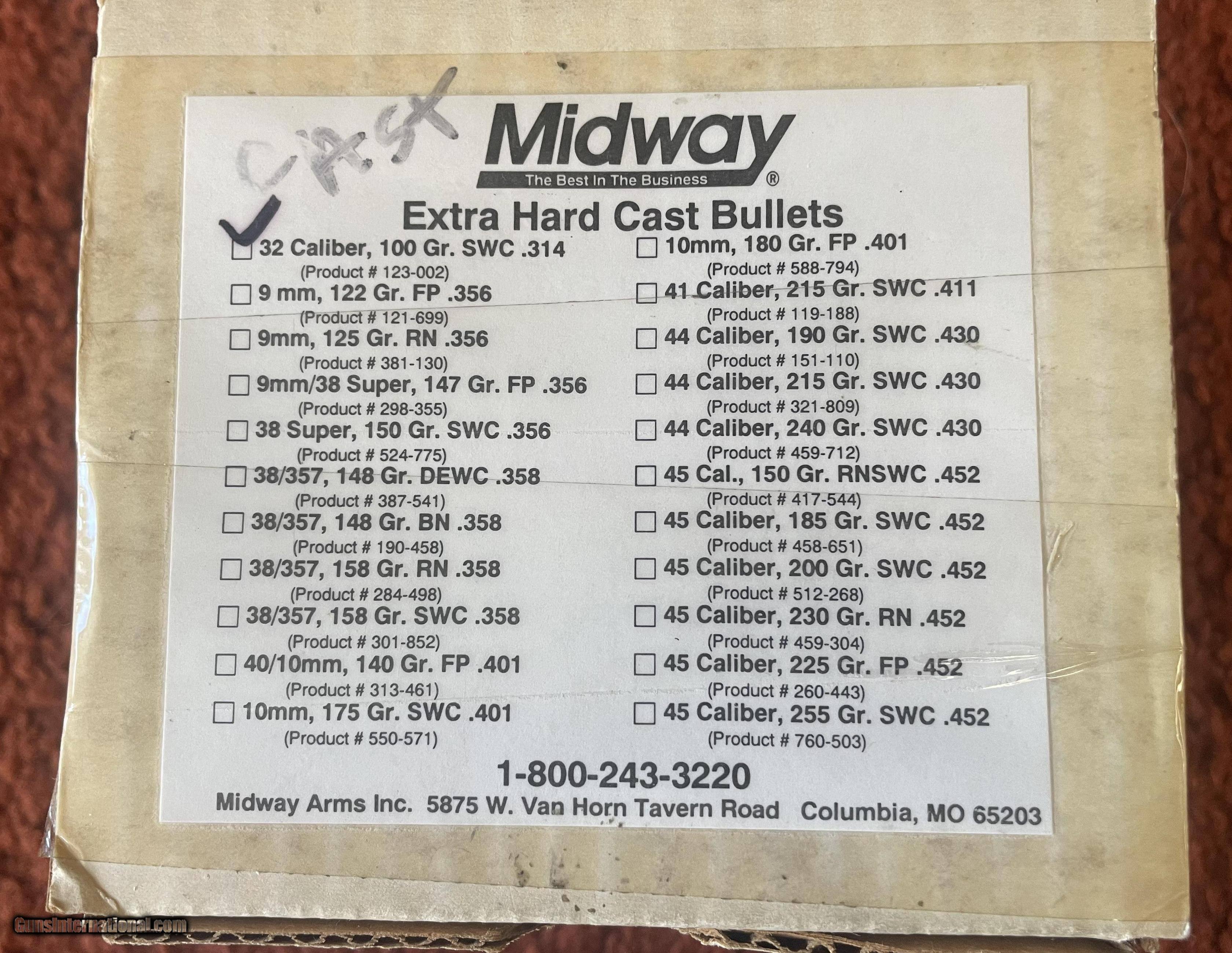Midway .32 caliber 100 grain extra hard cast bullets partial box approx.350 count