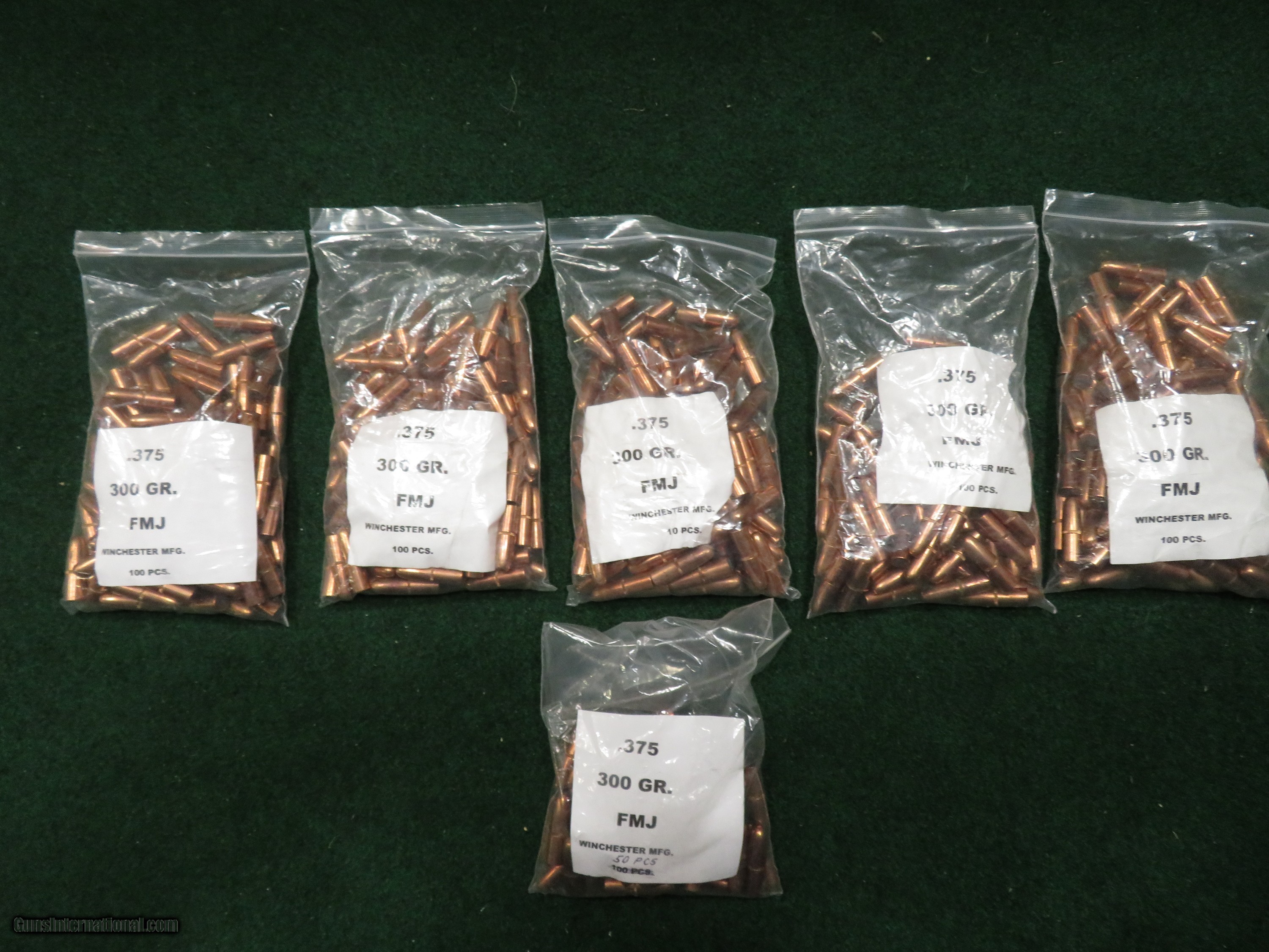 Description: 550 Winchester Mfg., .375, 300gr, FMJ bullets. These make great practice ammo. SOLD |